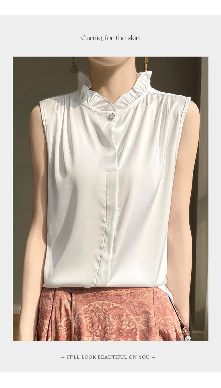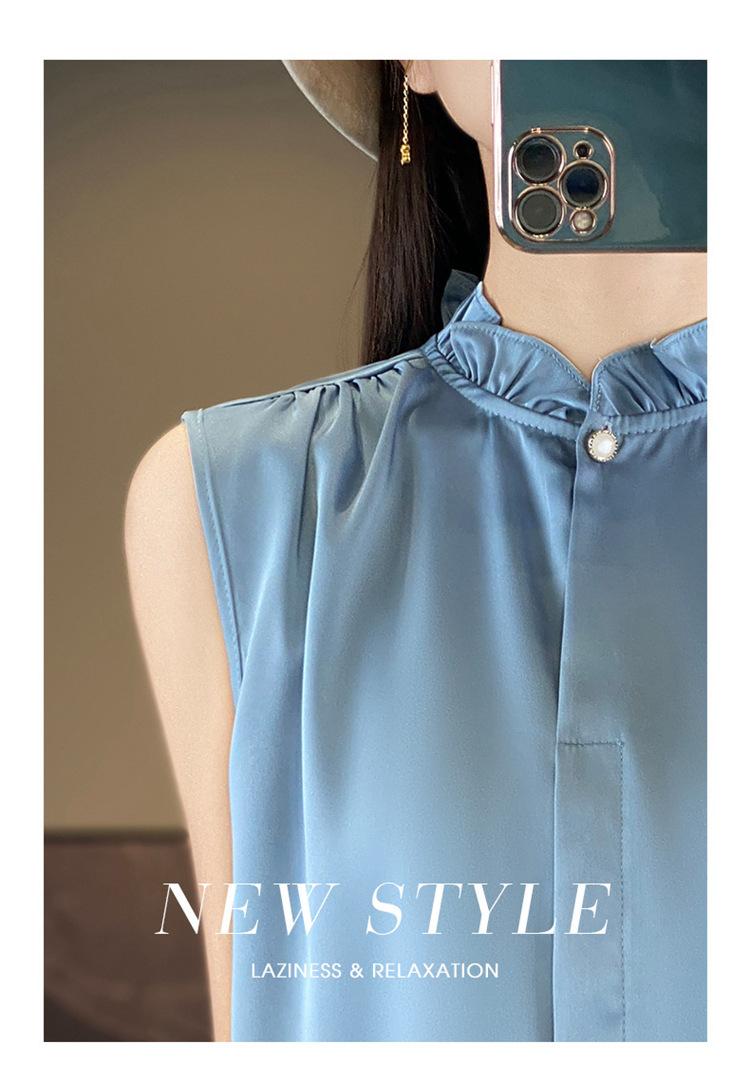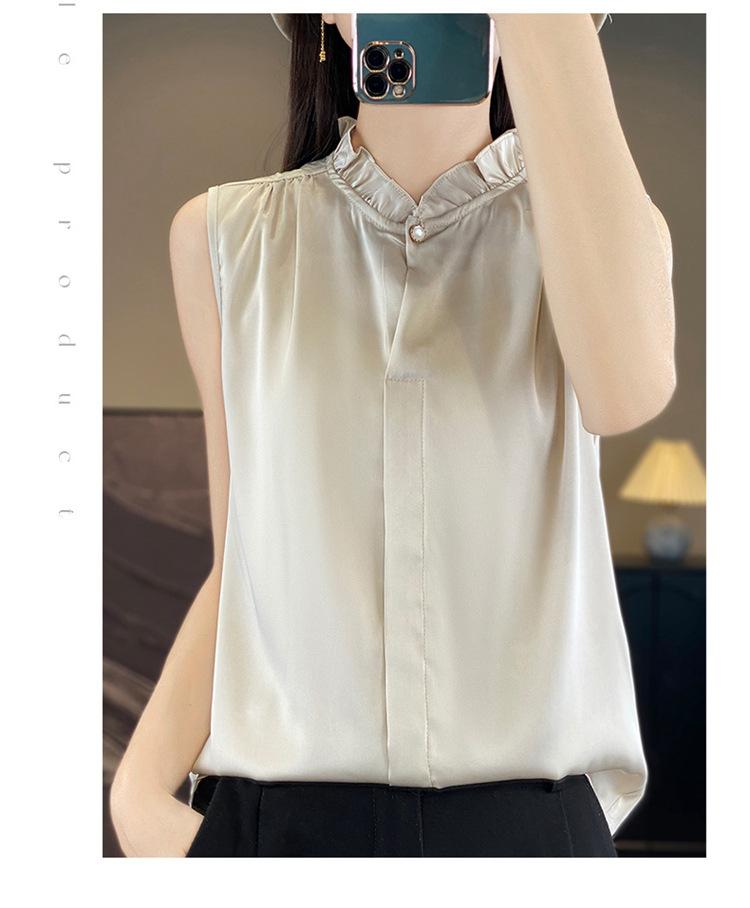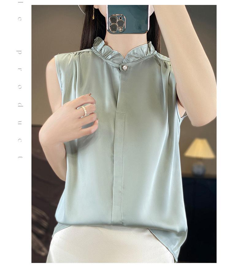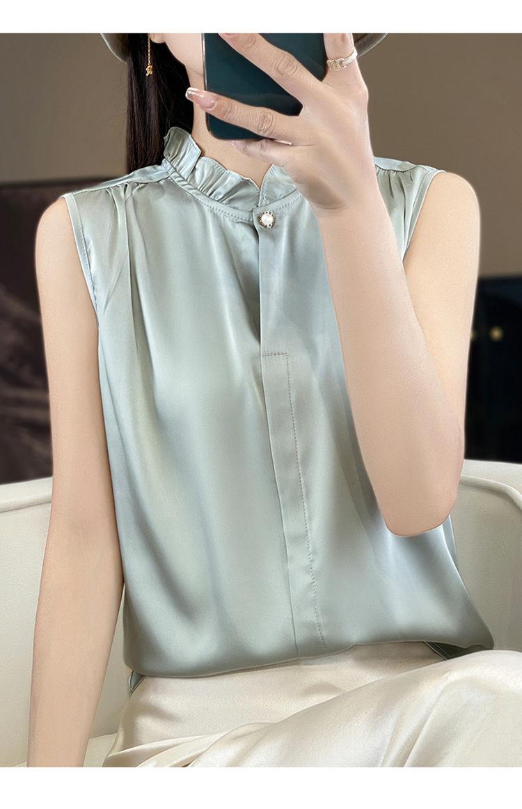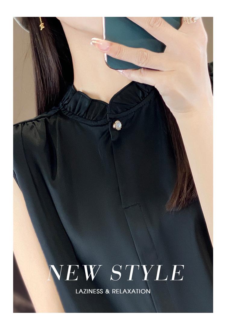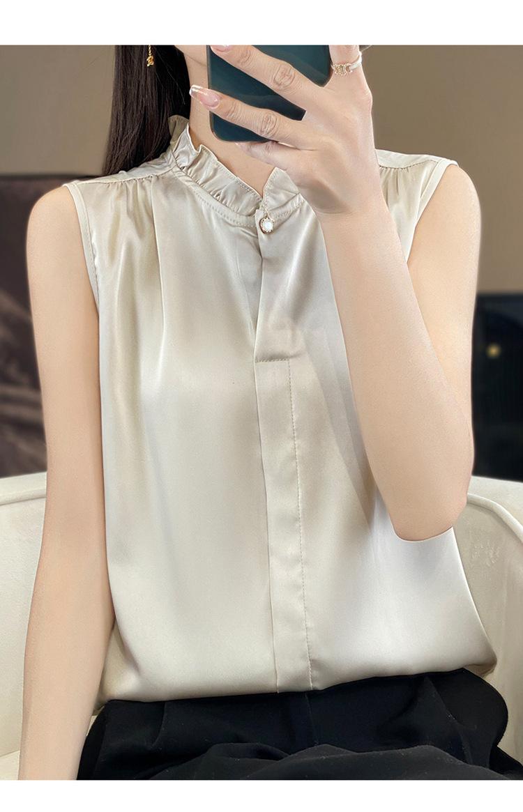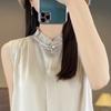 Blusa sin mangas para mujer con tirantes en la espalda, de satén, con cuello alto, elegante camisa francesa para uso exterior.