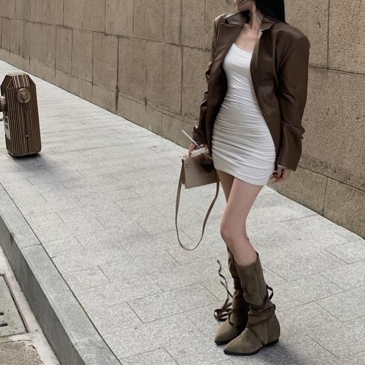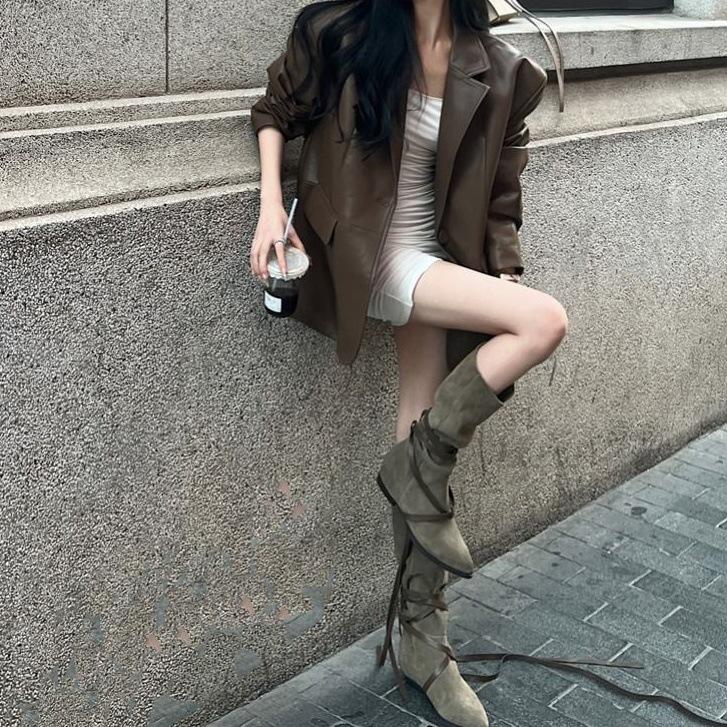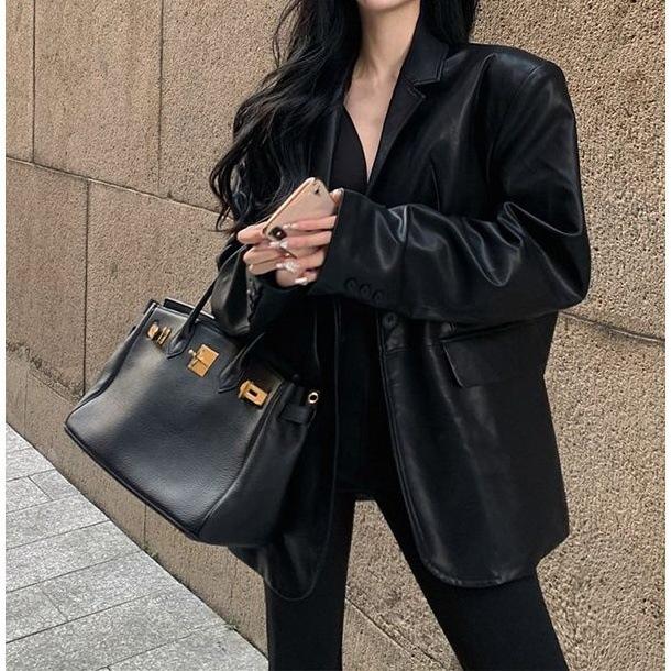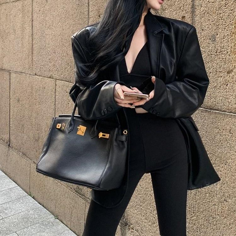 Chaqueta de cuero negra retro americana para mujer, primavera y otoño 2025, elegante chaqueta de motociclista de manga larga.