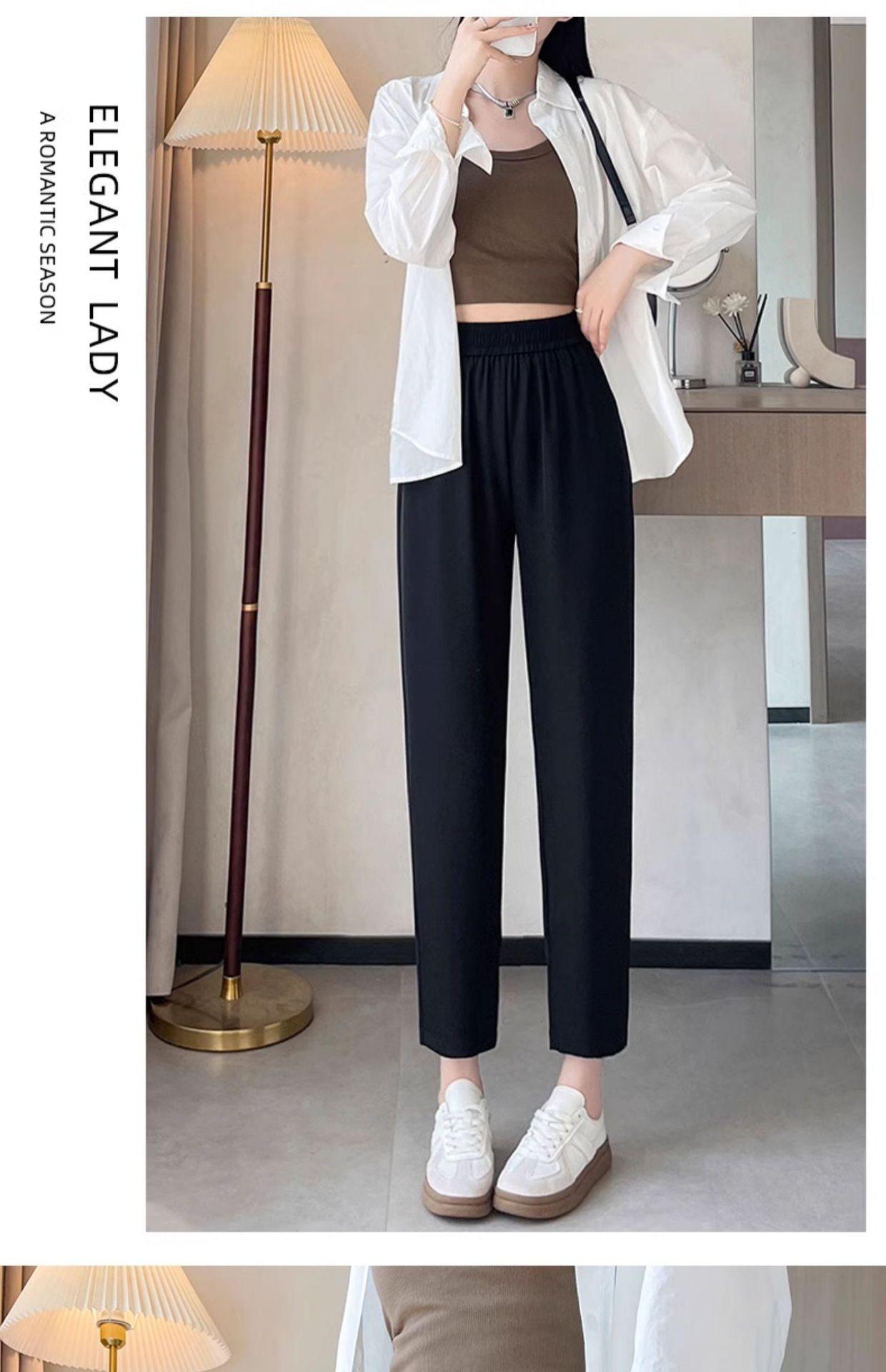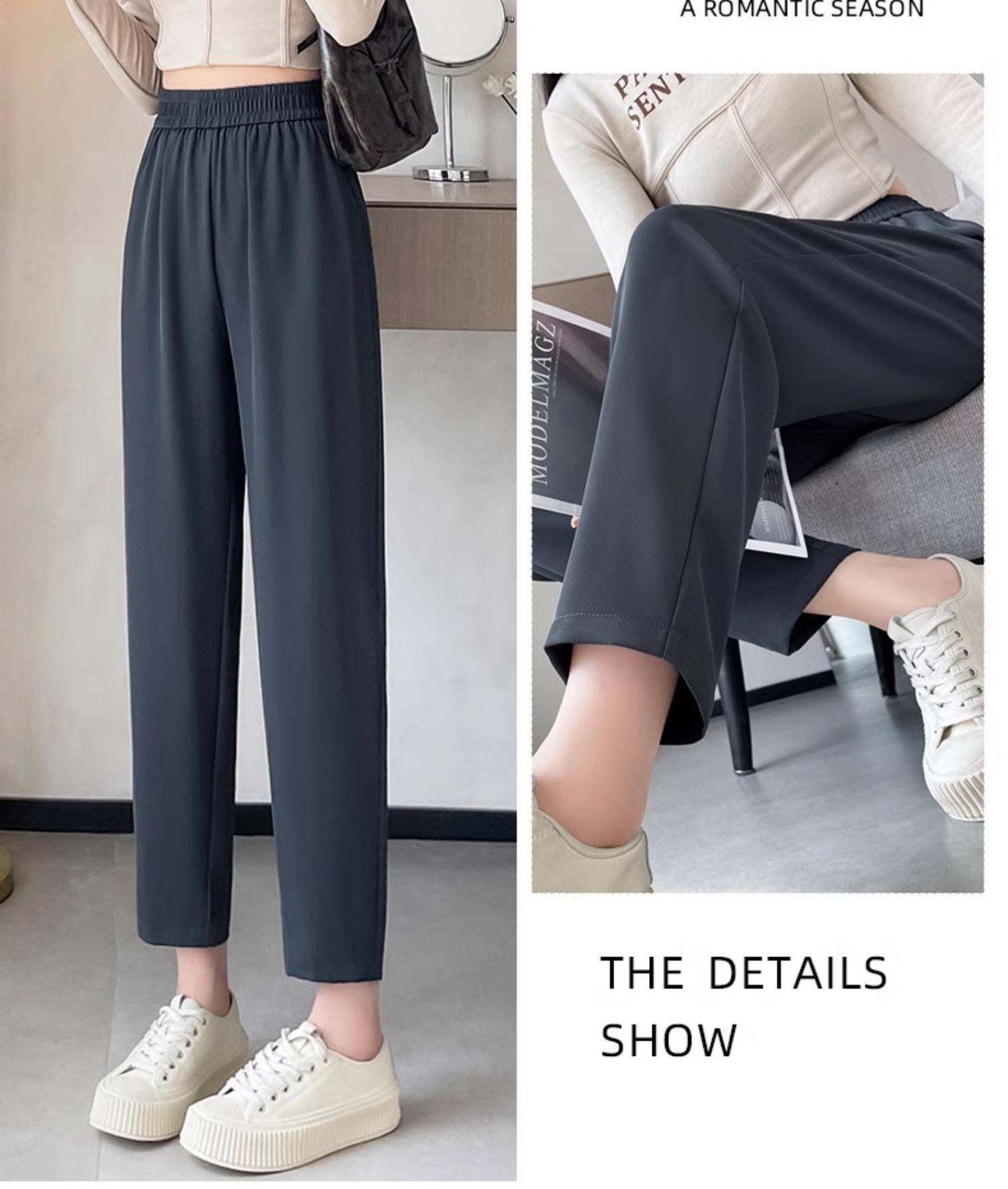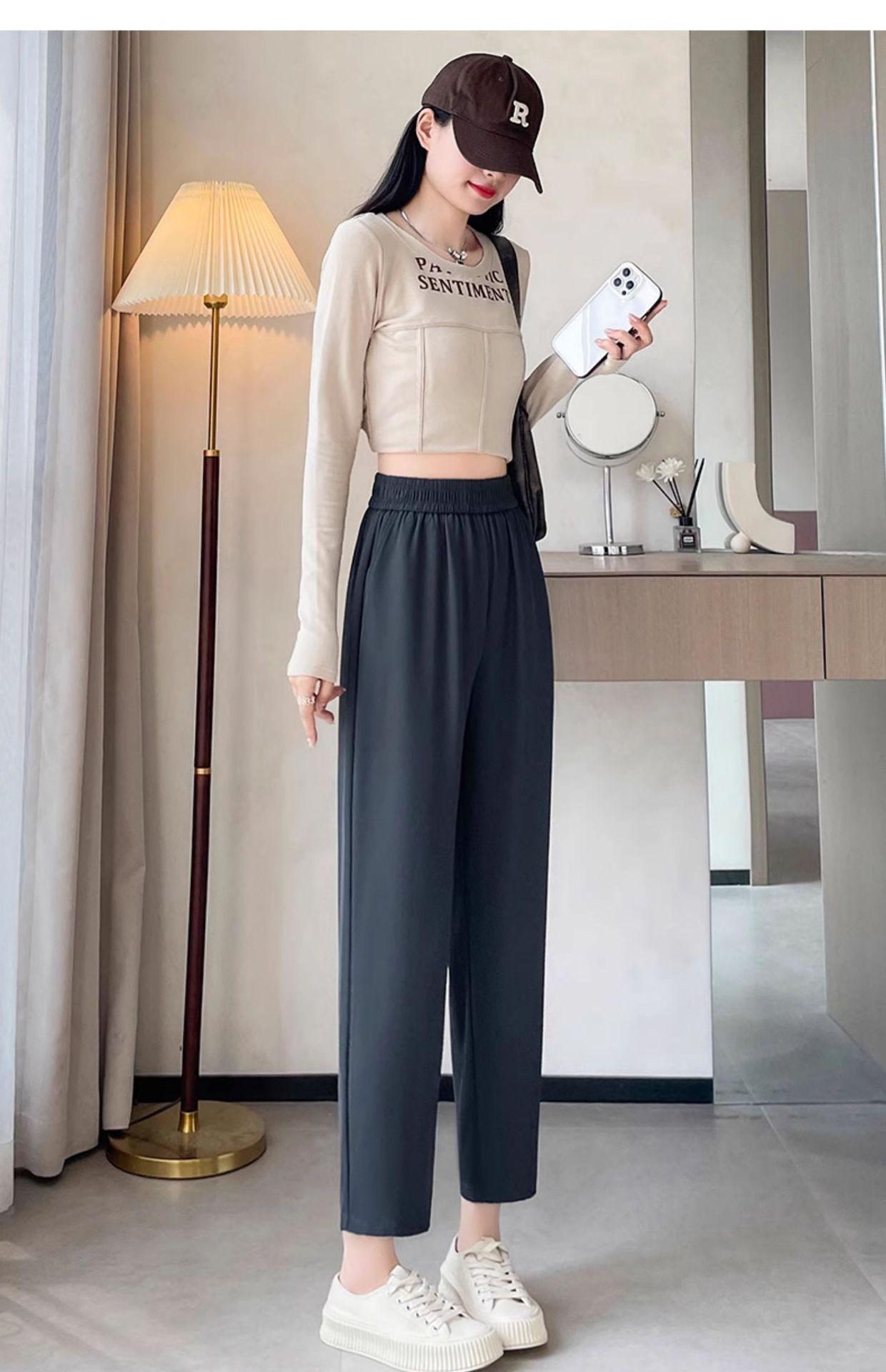 Talla grande Pantalones de rábano de nueve puntos para mujer Primavera y otoño Nuevo Adelgazantes Pantalones Hallen Cintura alta Sueltos Delgados Casuales Pantalones de traje