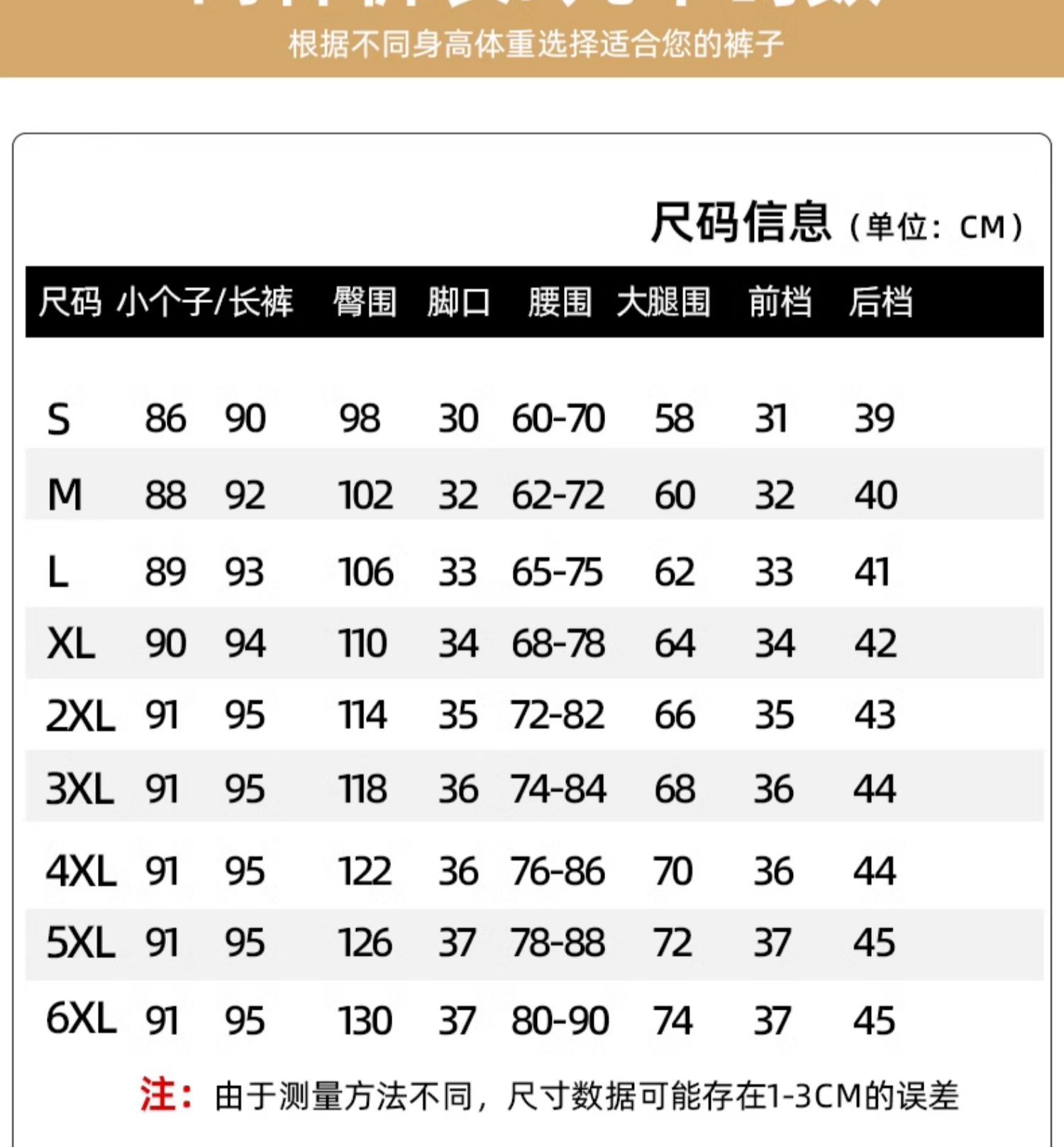 S, M, L, XL, 2XL, 3XL, 4XL, 5XL, 6XL