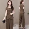Traje de moda para mujer 2025 Verano Nuevo Traje de pantalones de pierna ancha a rayas talla grande Suelto Adelgazante Cubre vientre Reductor de edad Conjunto de dos piezas