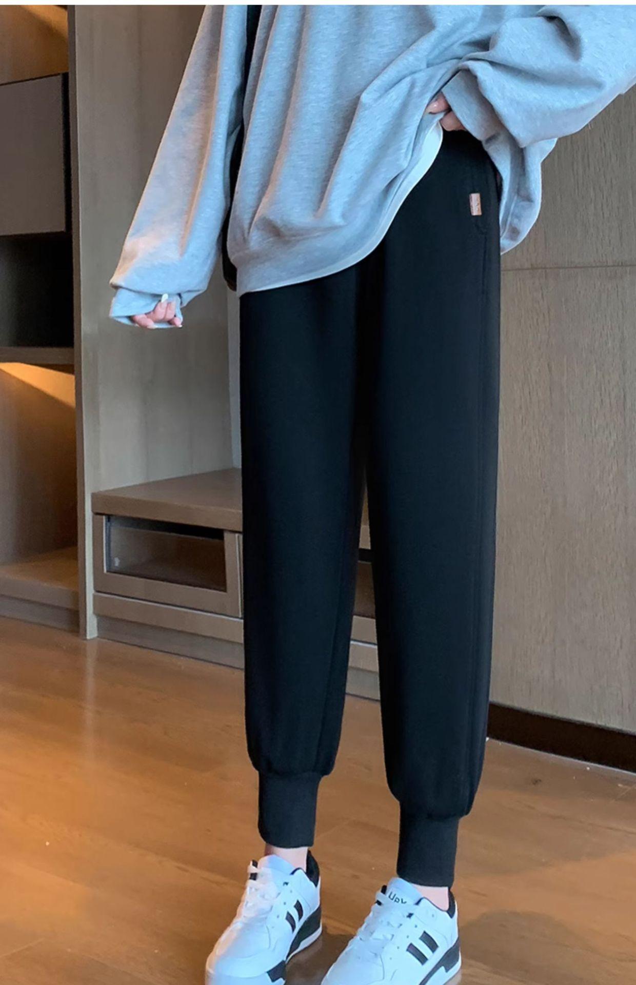 Pantalones deportivos holgados de talla grande para mujer Primavera y Otoño 2024 Nuevo Casual Cintura Alta Rectos Delgados con Pie Acampanado