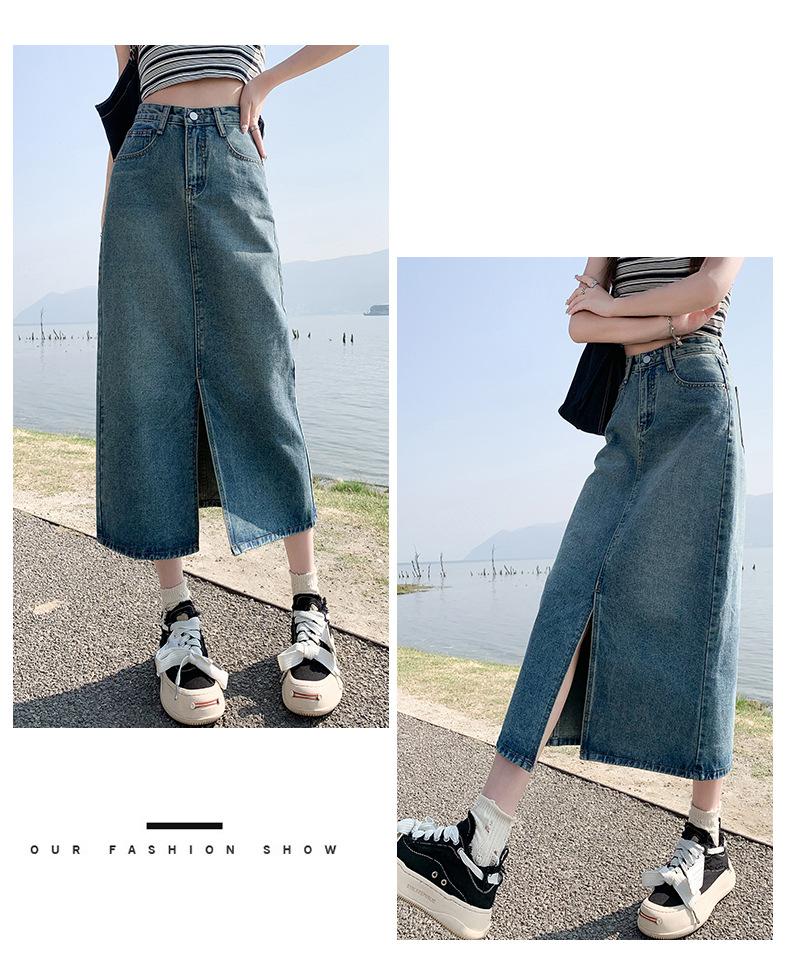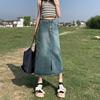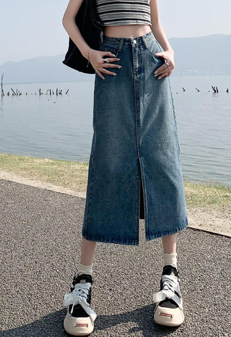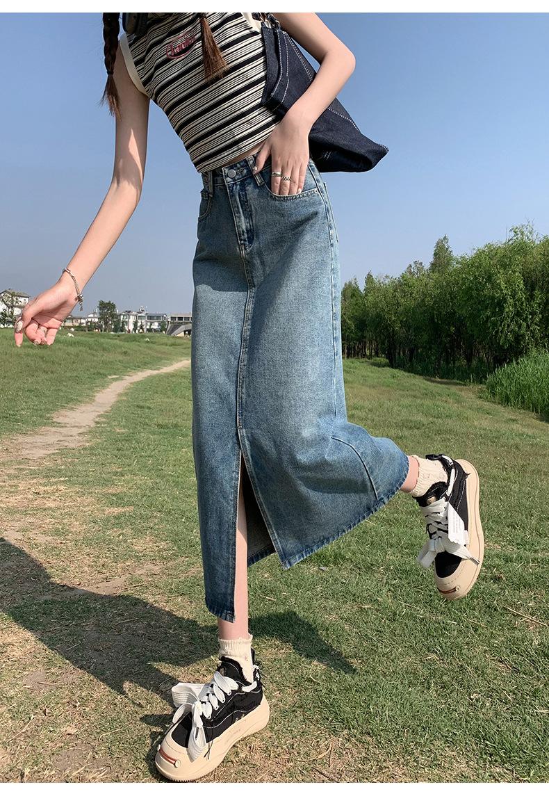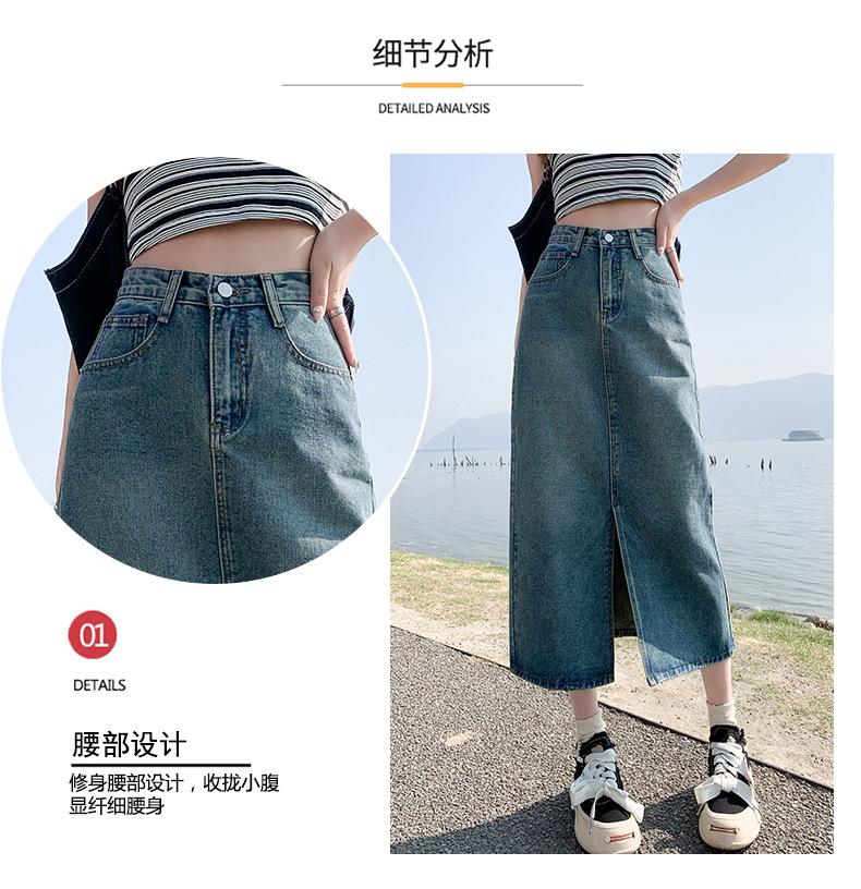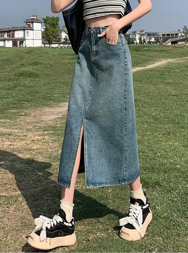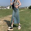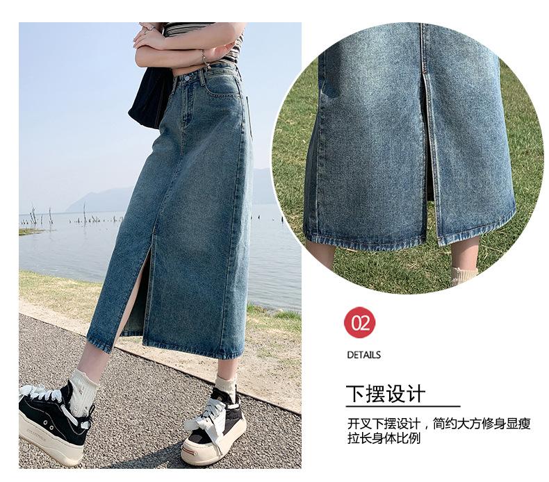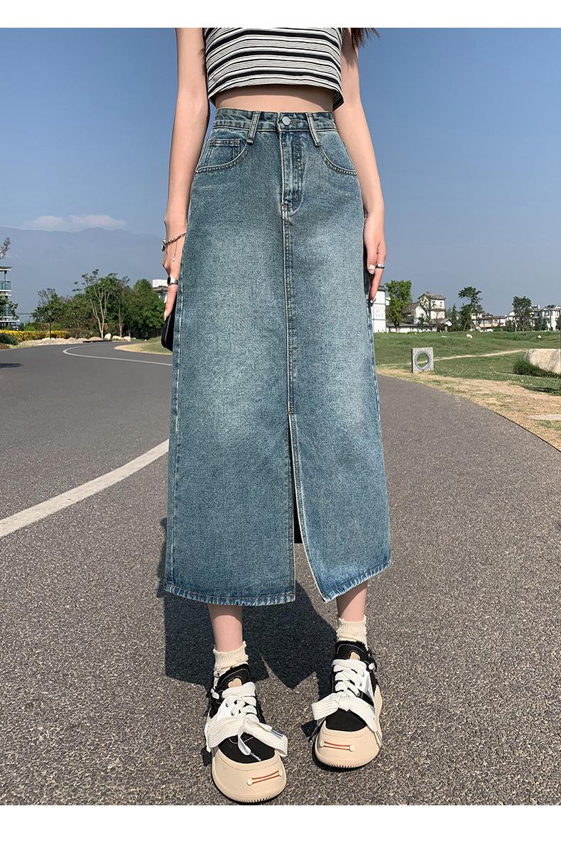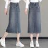 Falda vaquera de cintura alta, estilo retro, adelgazante, de longitud media, para mujer, primavera y verano, ajustada y con abertura en la cadera.