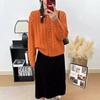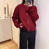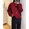 Suéter estilo coreano retro con giro, cárdigan de punto suave para mujer, suéter con botones dorados, diseño suelto rojo para mujer