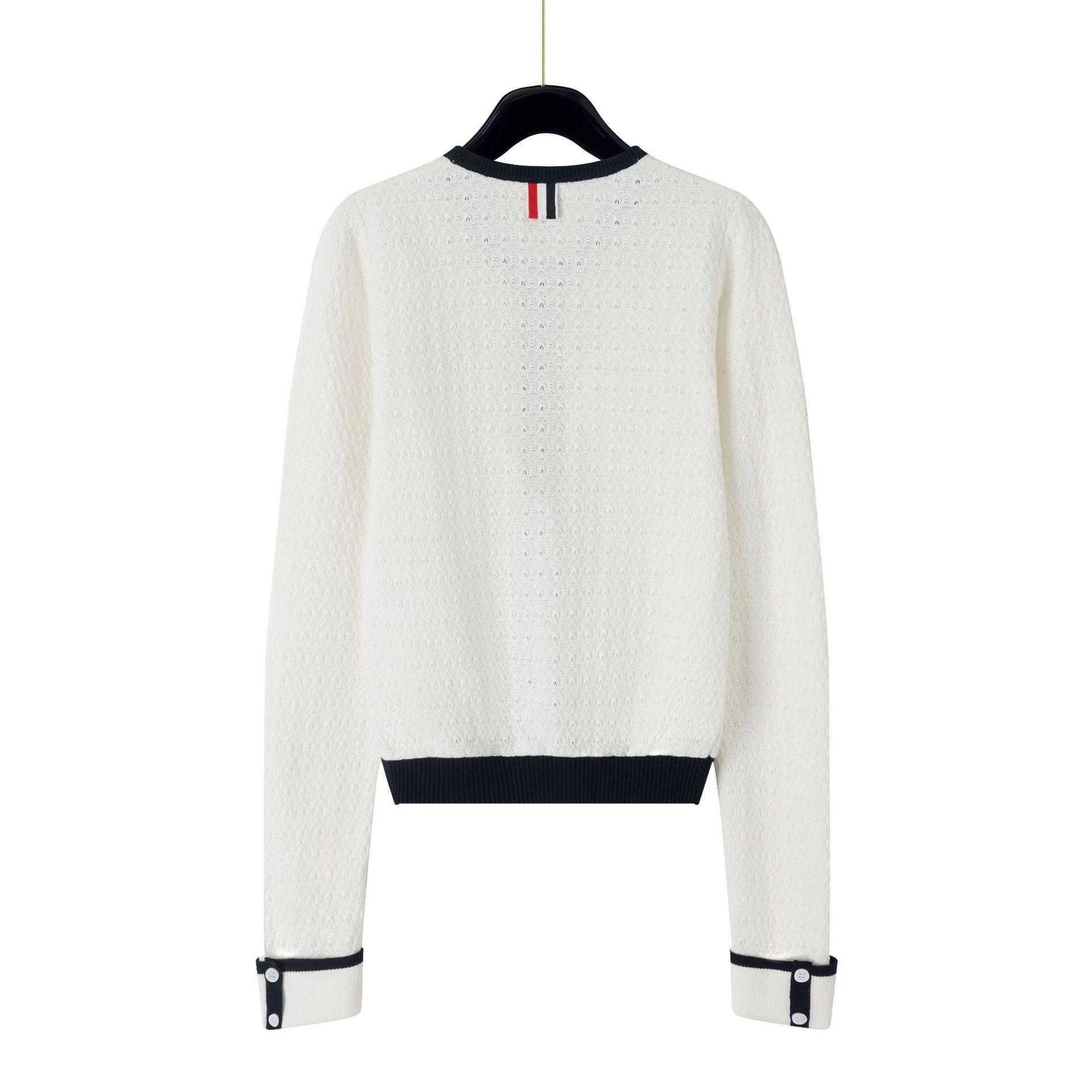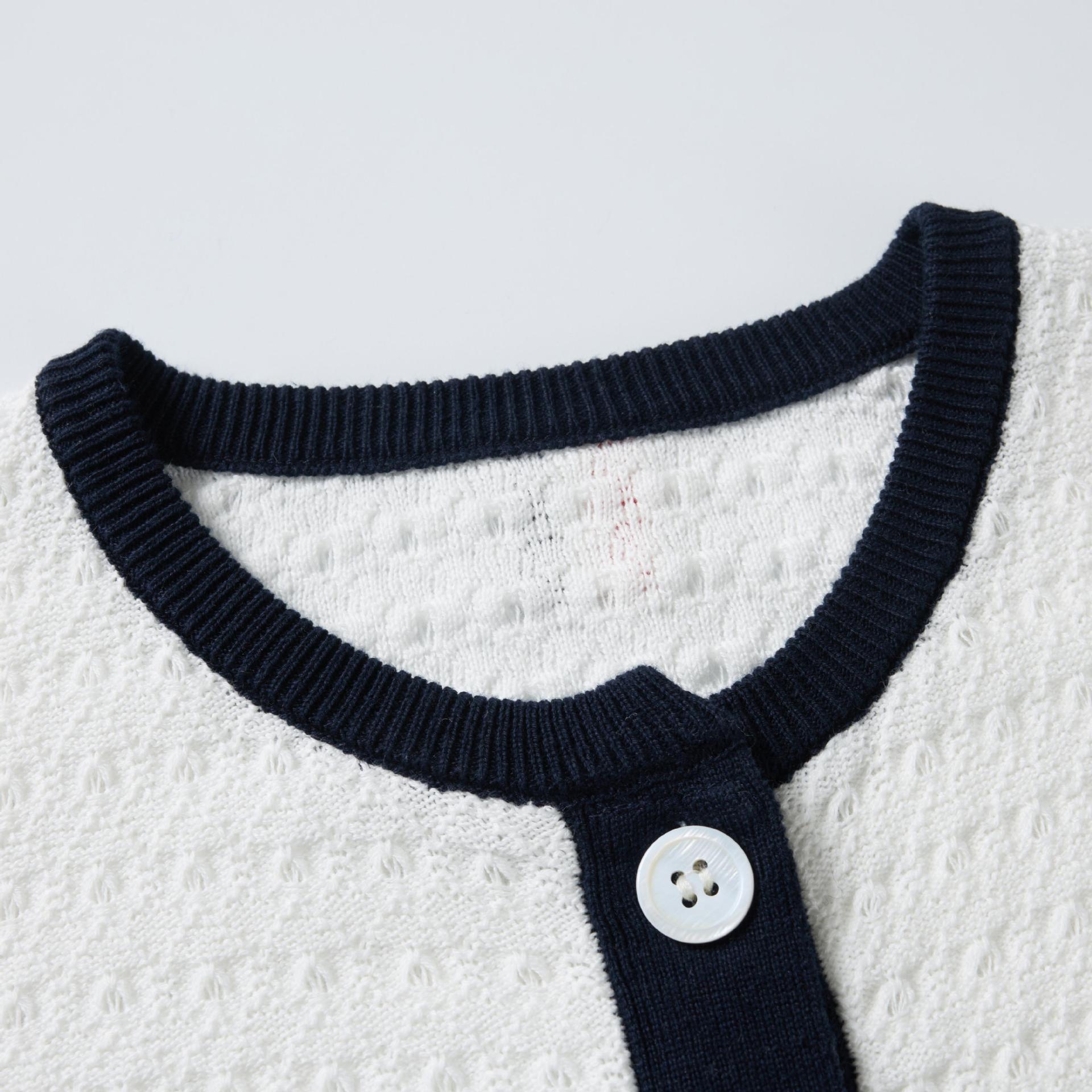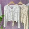 Cárdigan de Algodón con Agujeros de Punto Calado de Cuello Redondo Casual Nuevo de Primavera y Otoño para Mujer, el Más Fácil de Combinar, Estilo de Mujer con Pequeño Aroma