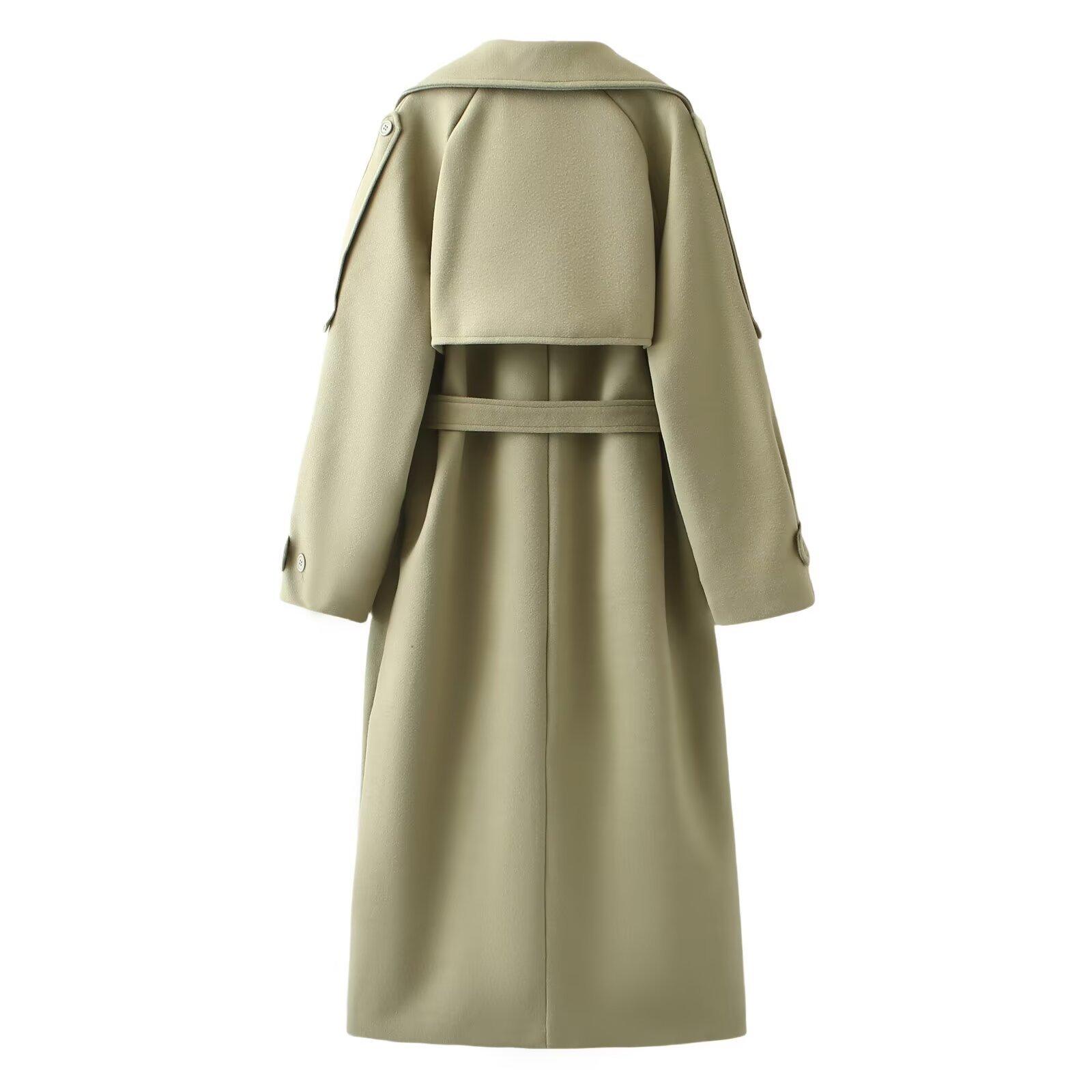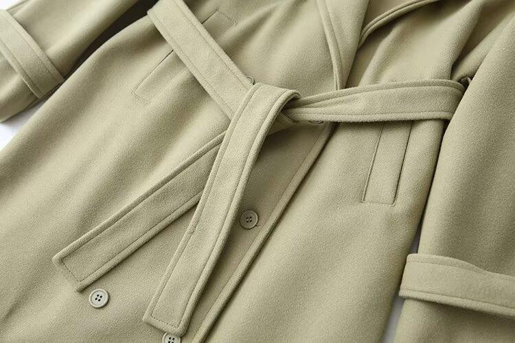 Abrigo de lana de manga larga con cordones, estilo europeo y americano, primavera y otoño 2025, nuevo M6B299