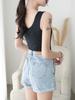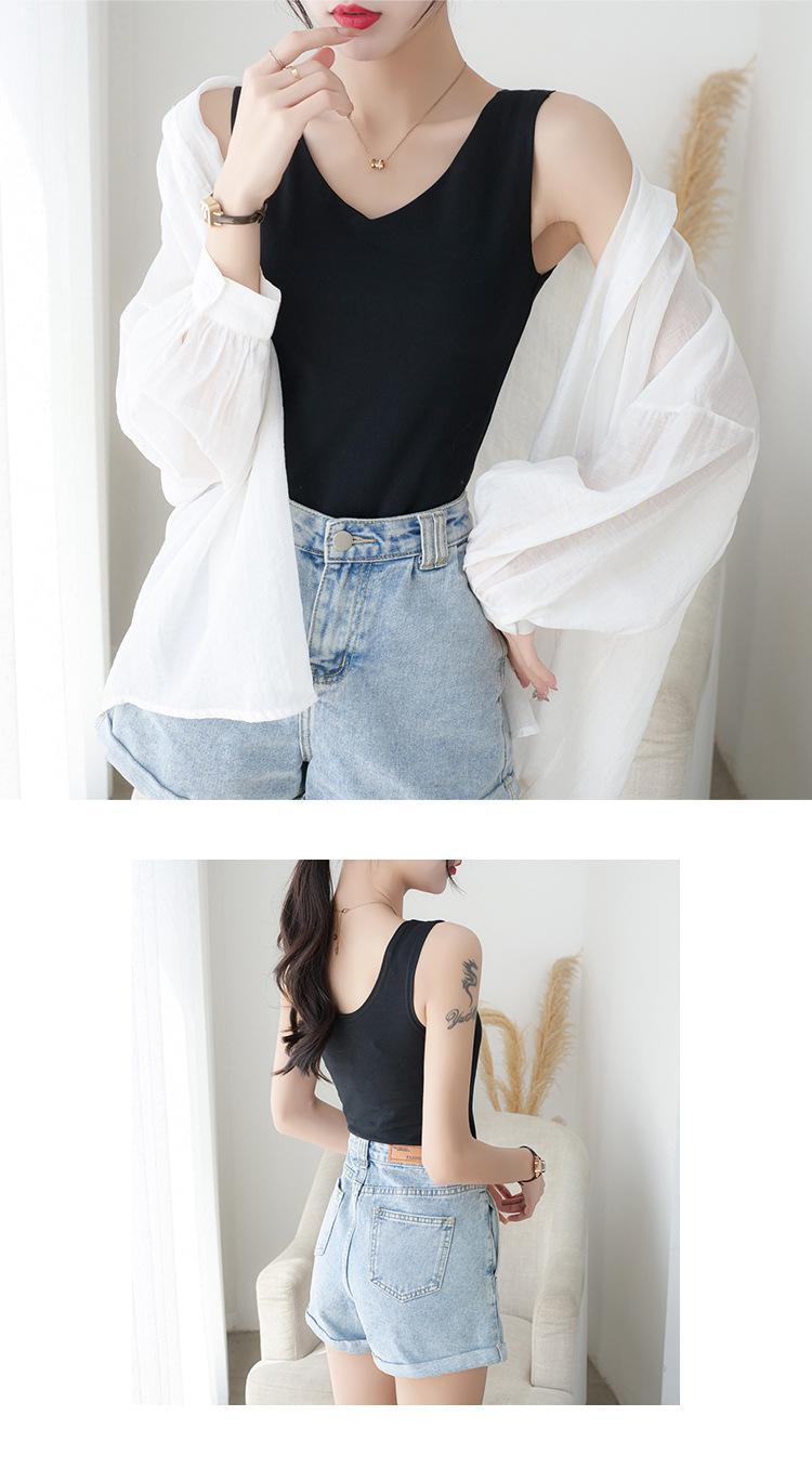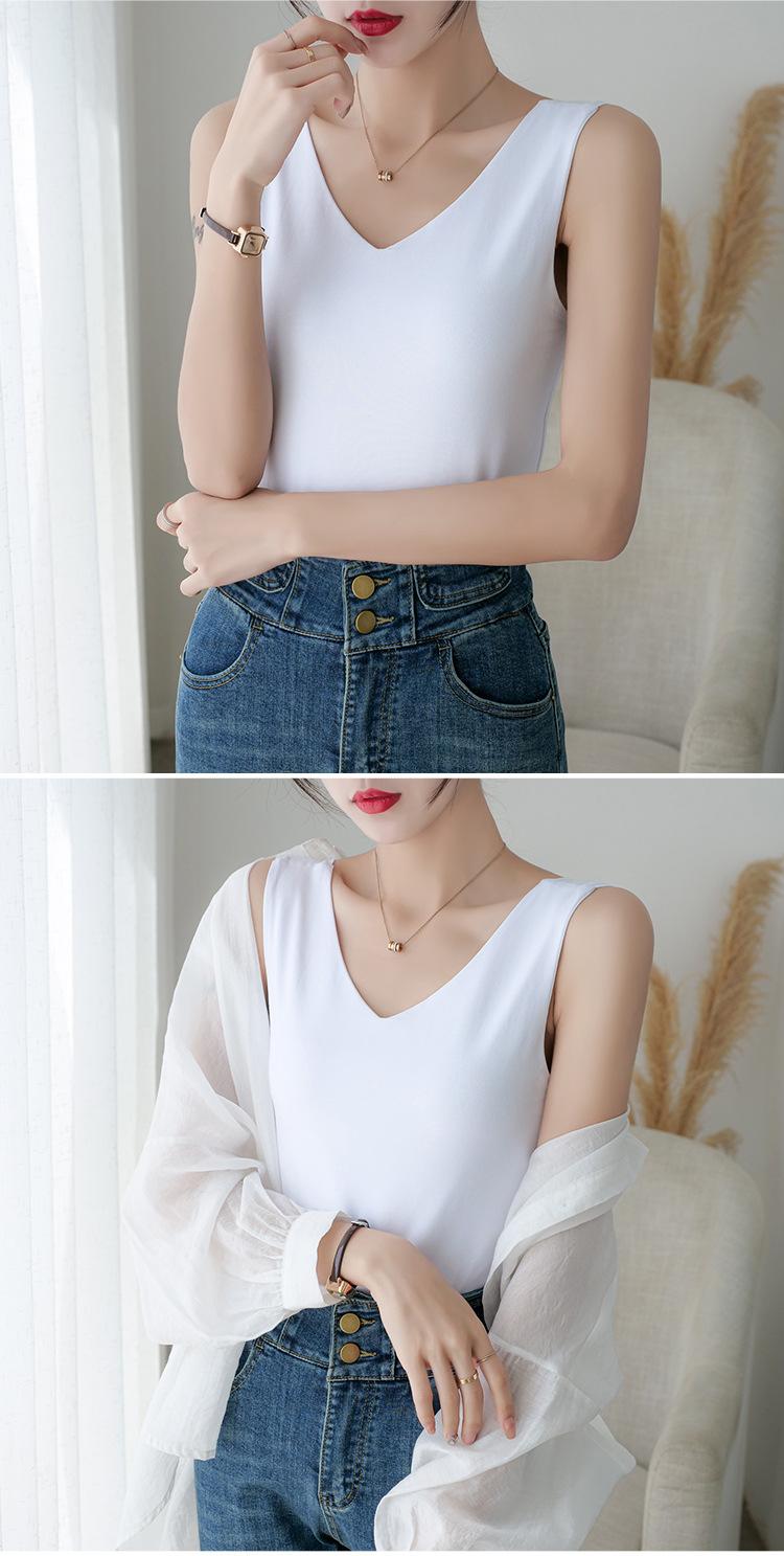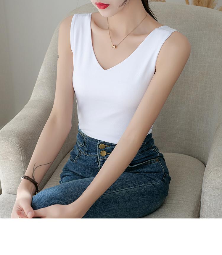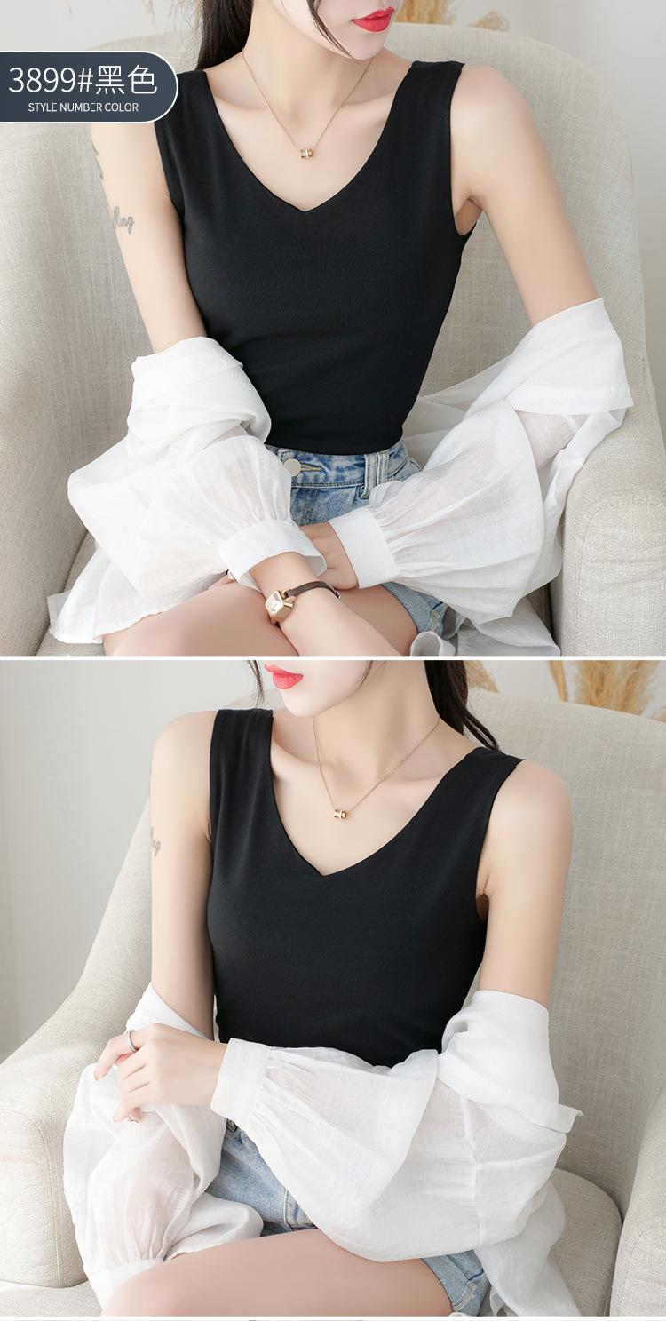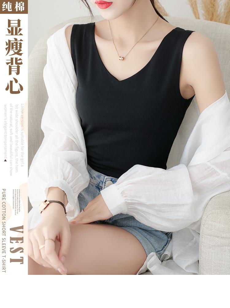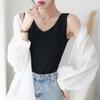 Camisola Negra de Algodón Puro para Mujer, Ropa Exterior de Verano o Ropa Interior, Top Moderno sin Espalda, sin Mangas y con Cuello en V, Camiseta de Capa Base