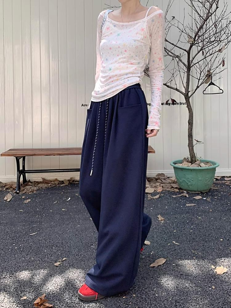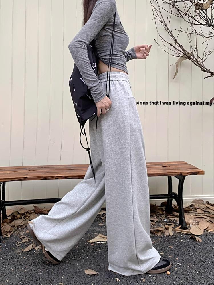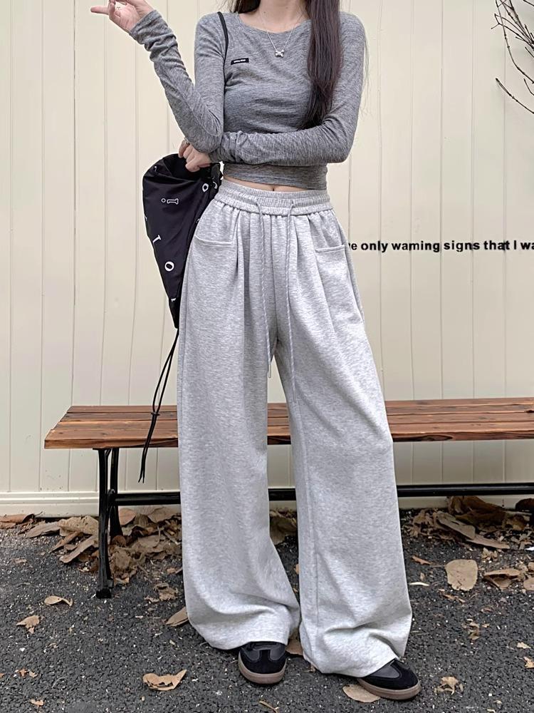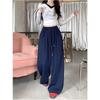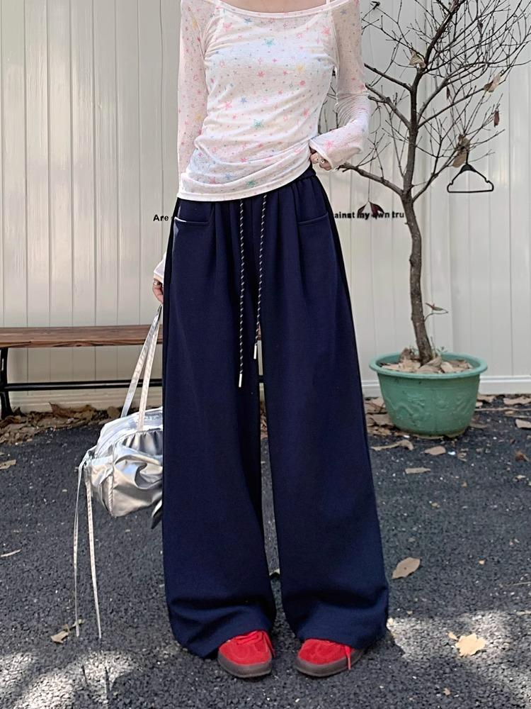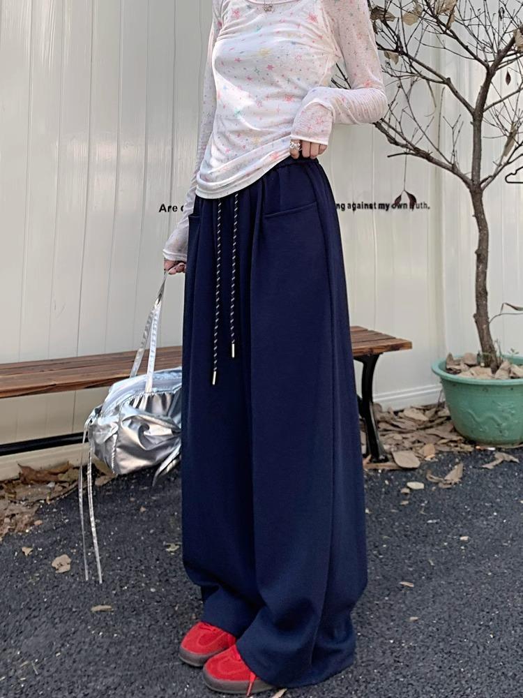 Pantalones Casuales para Mujer Cintura Elafite Cordón Pierna Ancha Pantalones Invierno Sueltos Adelgazantes Pantalones Rectos Pantalones Mop Pantalones de Chándal