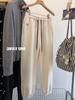Pantalones casuales con cordón y forro polar grueso para otoño e invierno 2024, pantalones bordados sueltos de cintura alta para mujer.