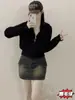 Cárdigan de punto con capucha y doble cremallera para mujer en otoño, estilo coreano, estilo holgazán, diseño de nicho, chaqueta corta chic en capas