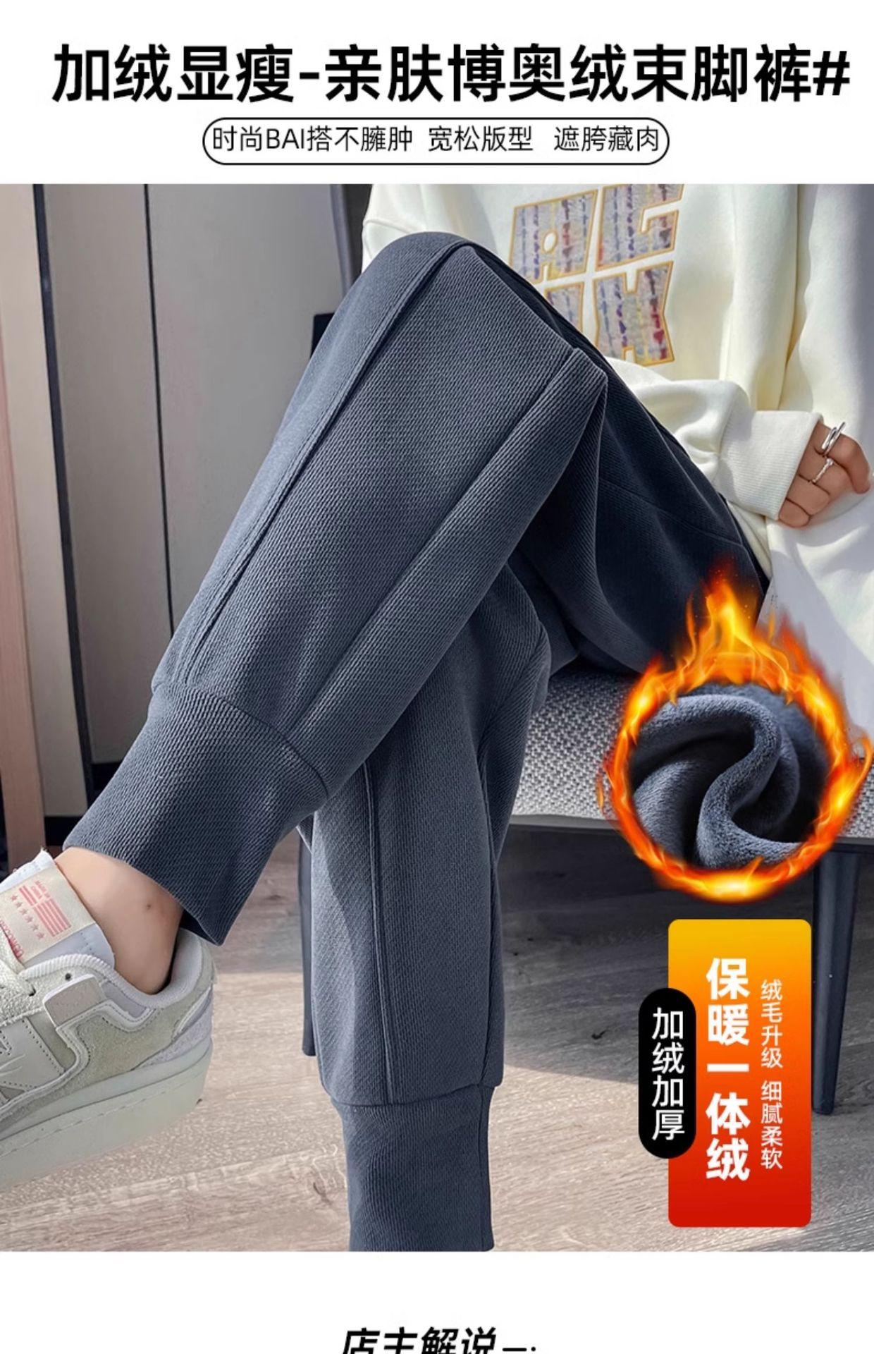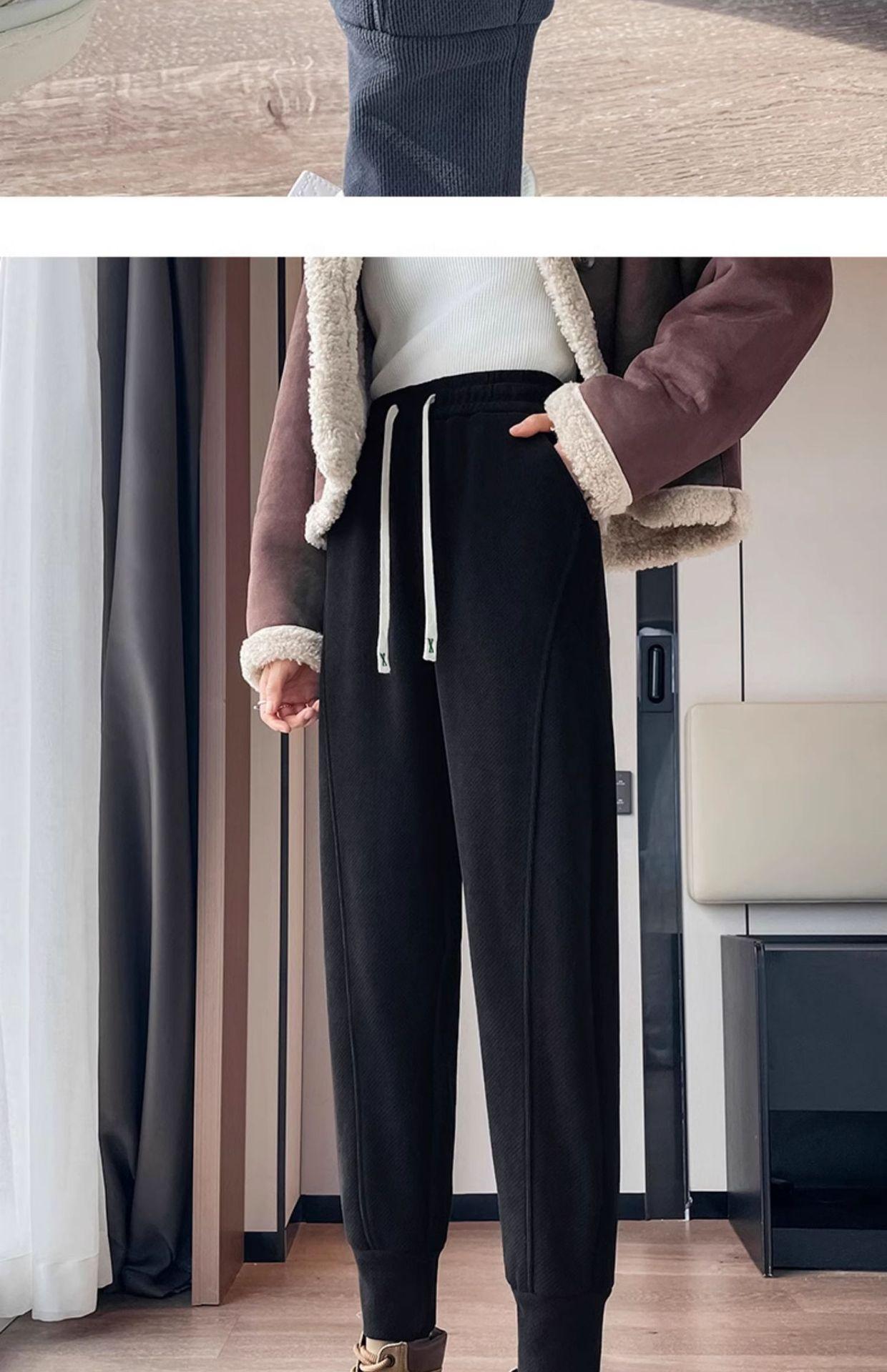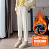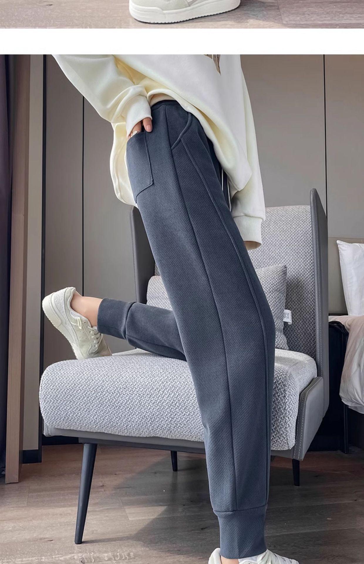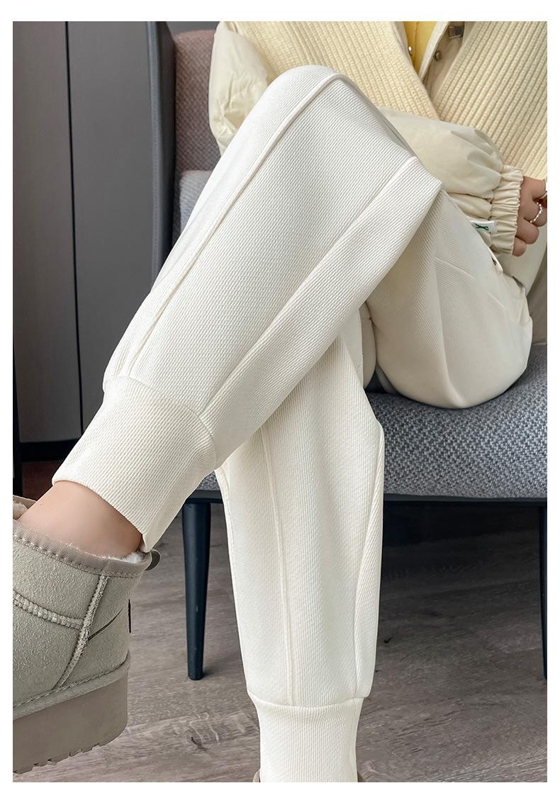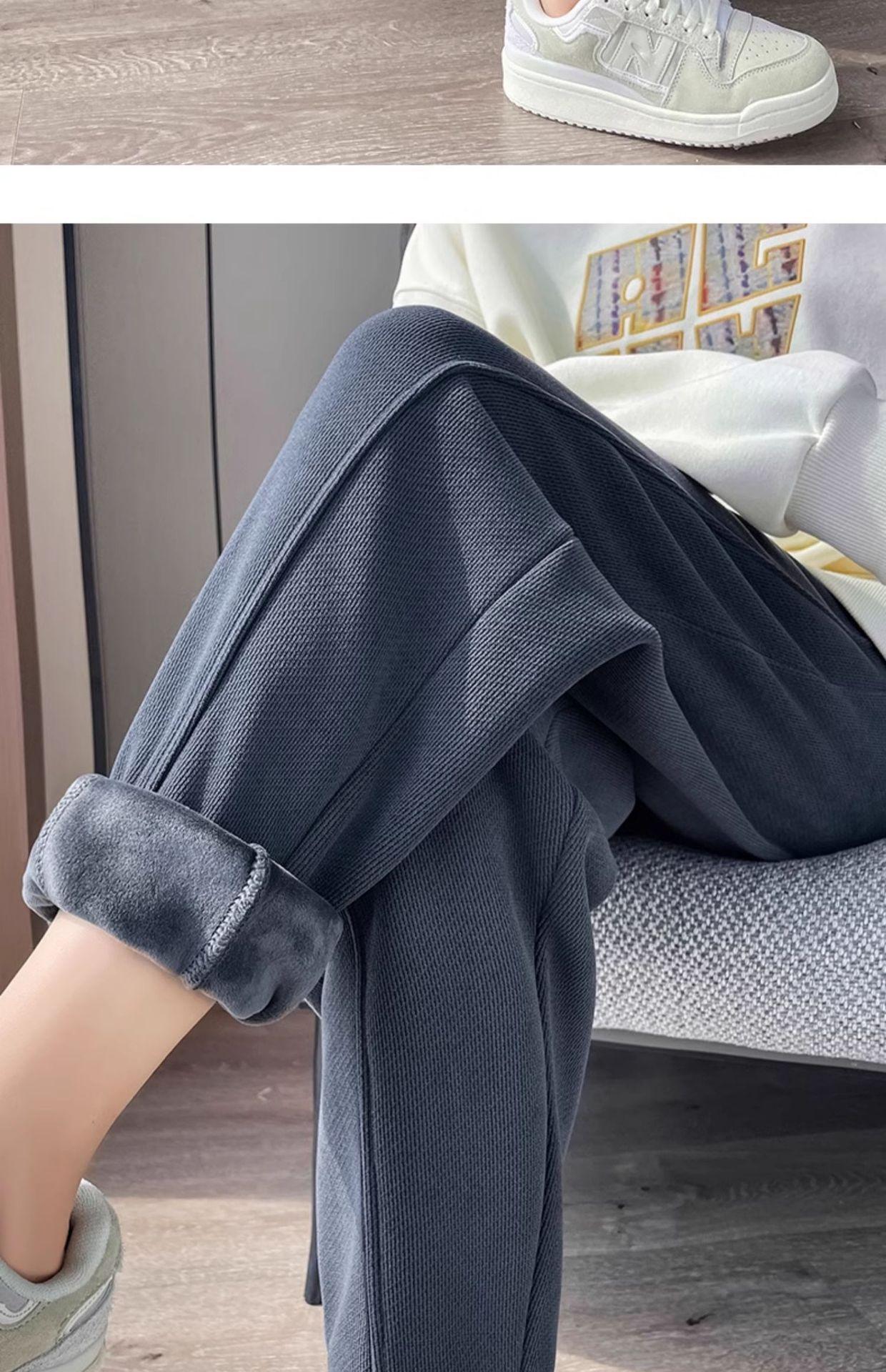 Pantalones deportivos de talla grande con forro polar para mujer, otoño/invierno 2024, nuevos, de cintura alta, combinables con todo, para chica gordita, cálidos, gruesos y ajustados.
