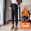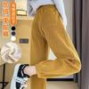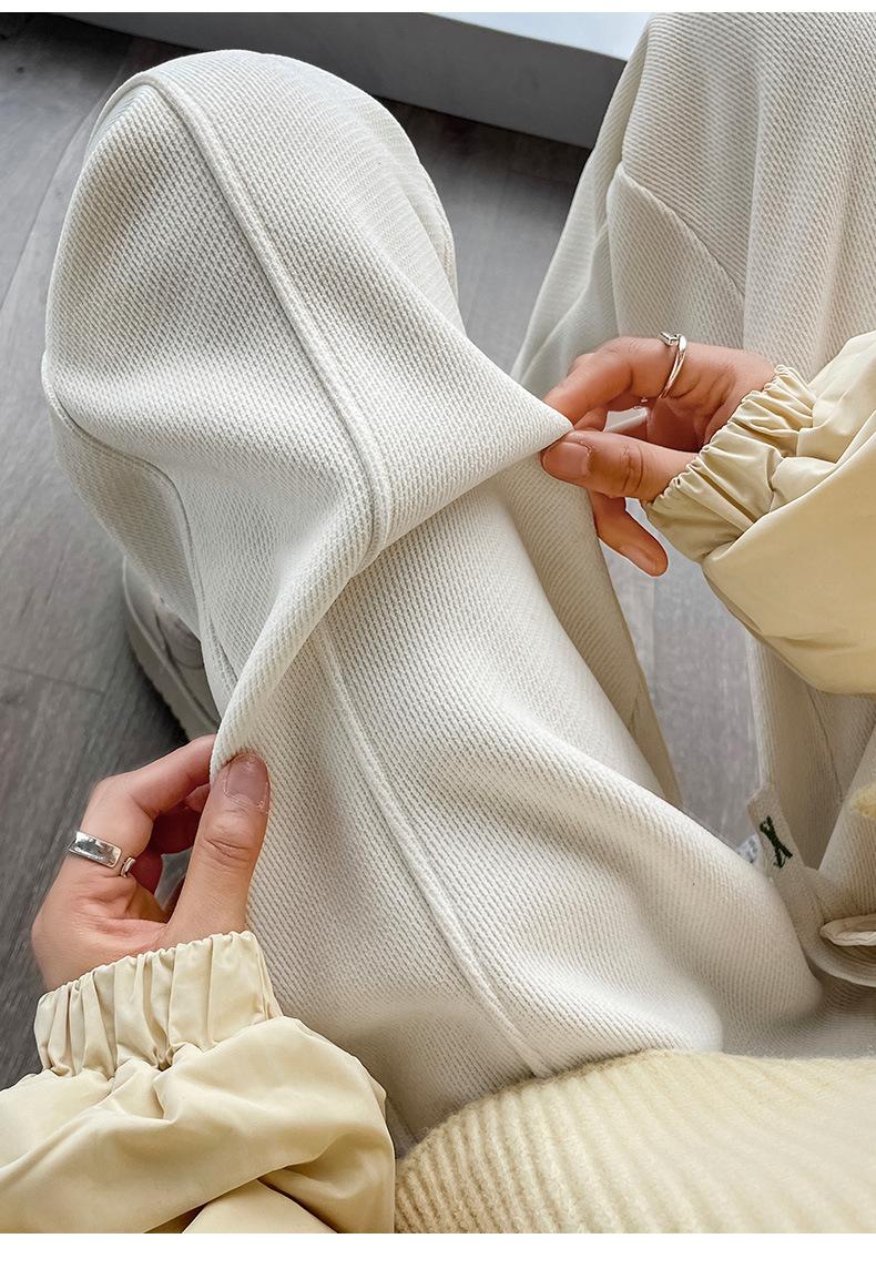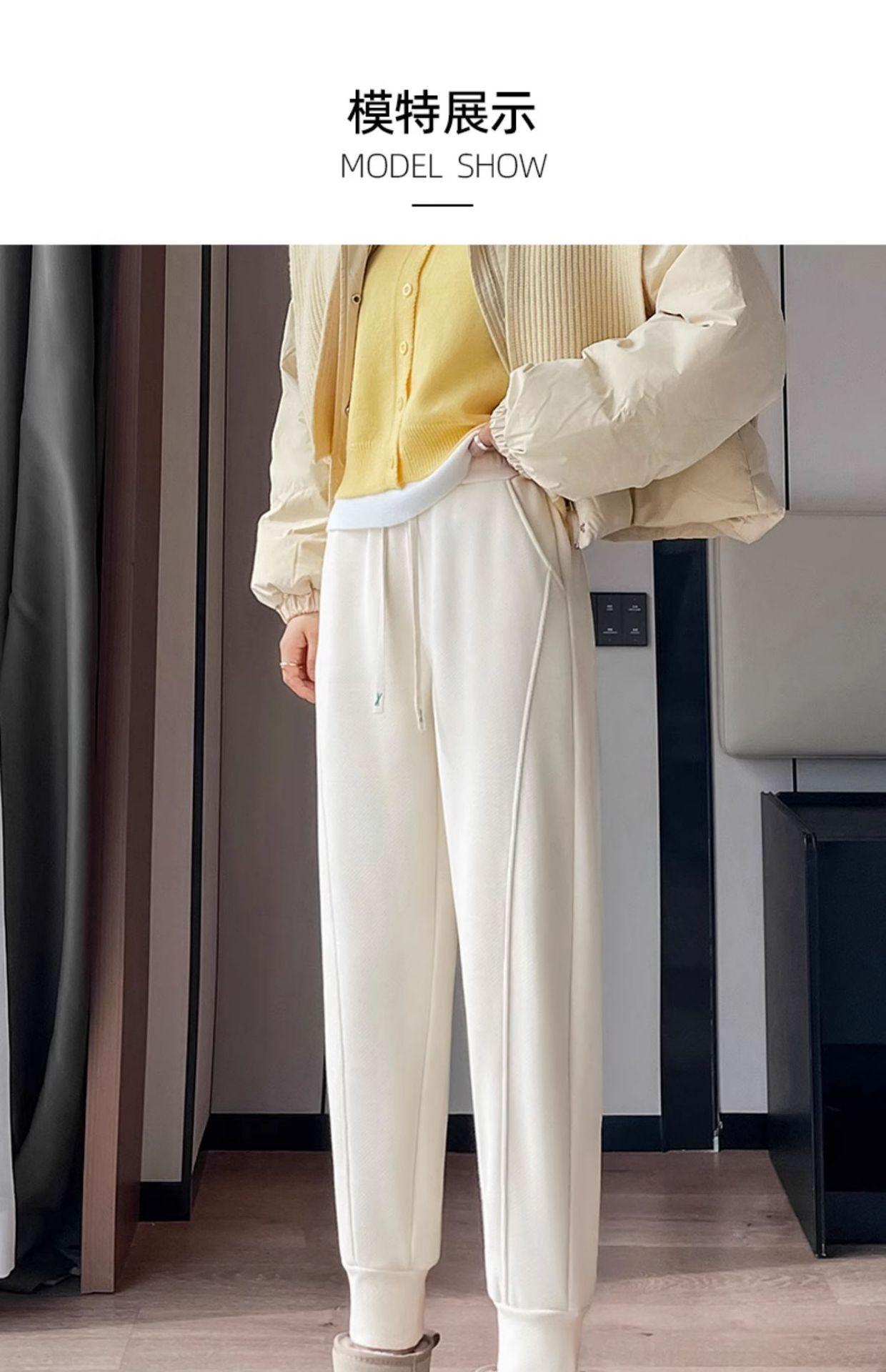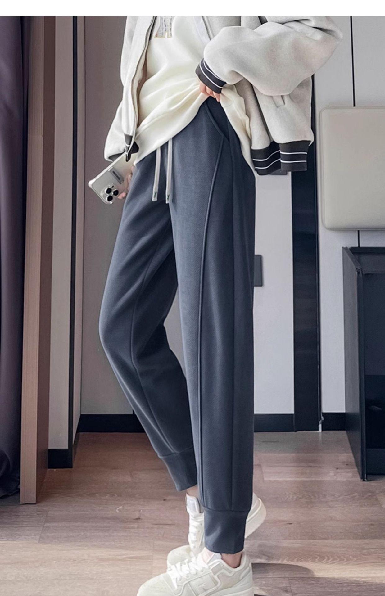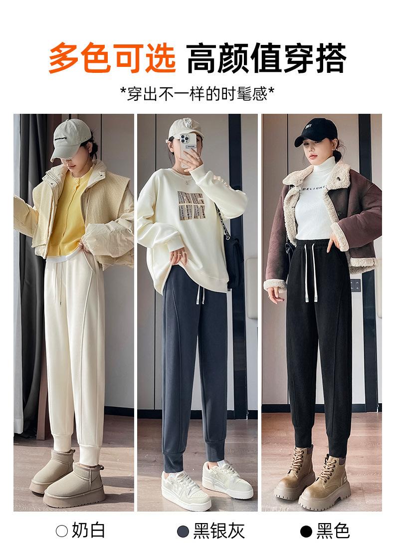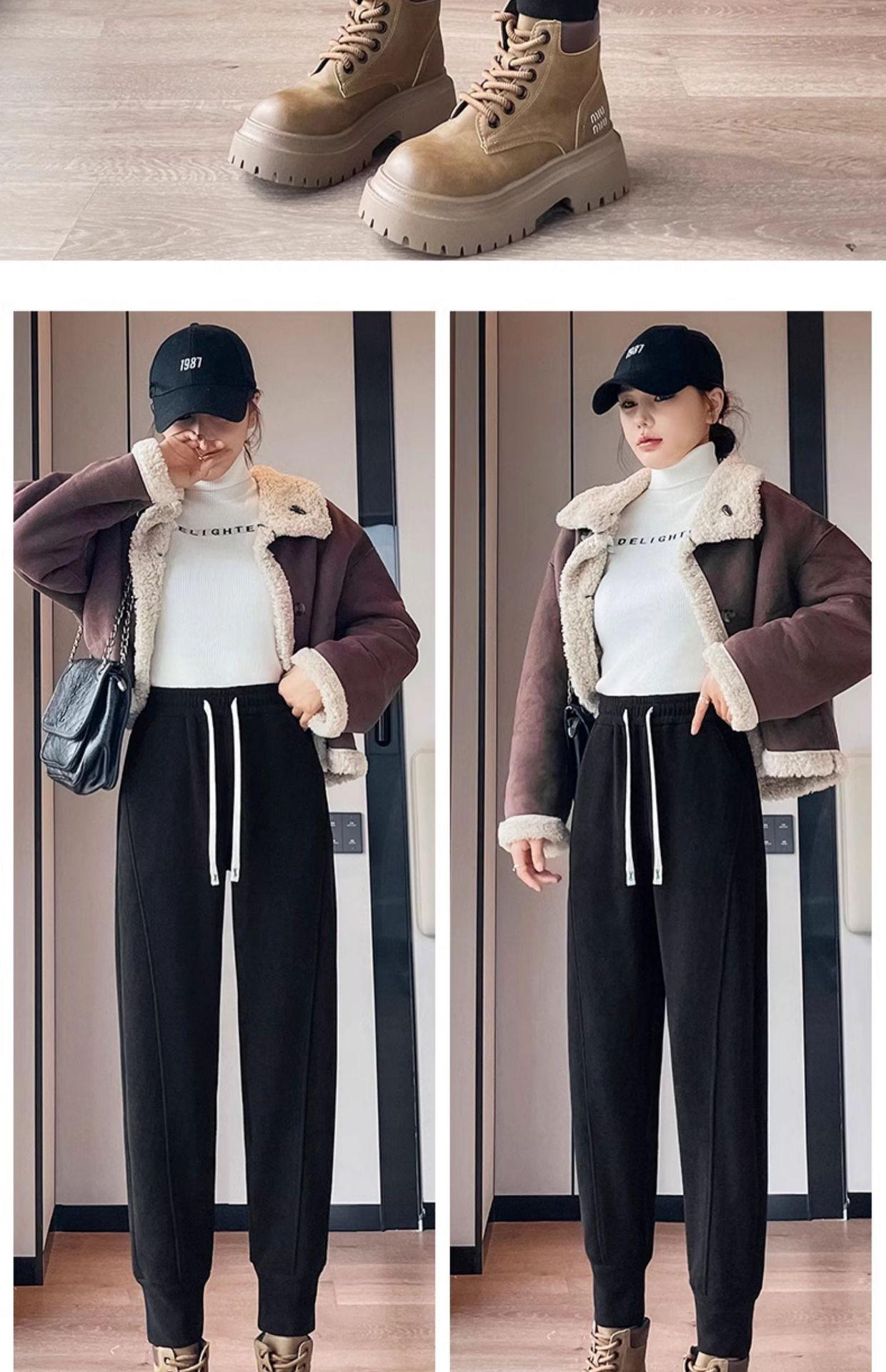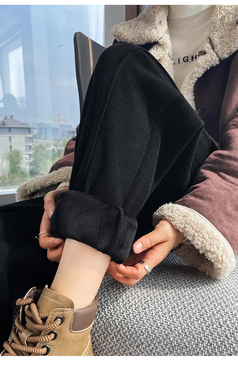 Pantalones deportivos de talla grande con forro polar para mujer, otoño/invierno 2024, nuevos, de cintura alta, combinables con todo, para chica gordita, cálidos, gruesos y ajustados.