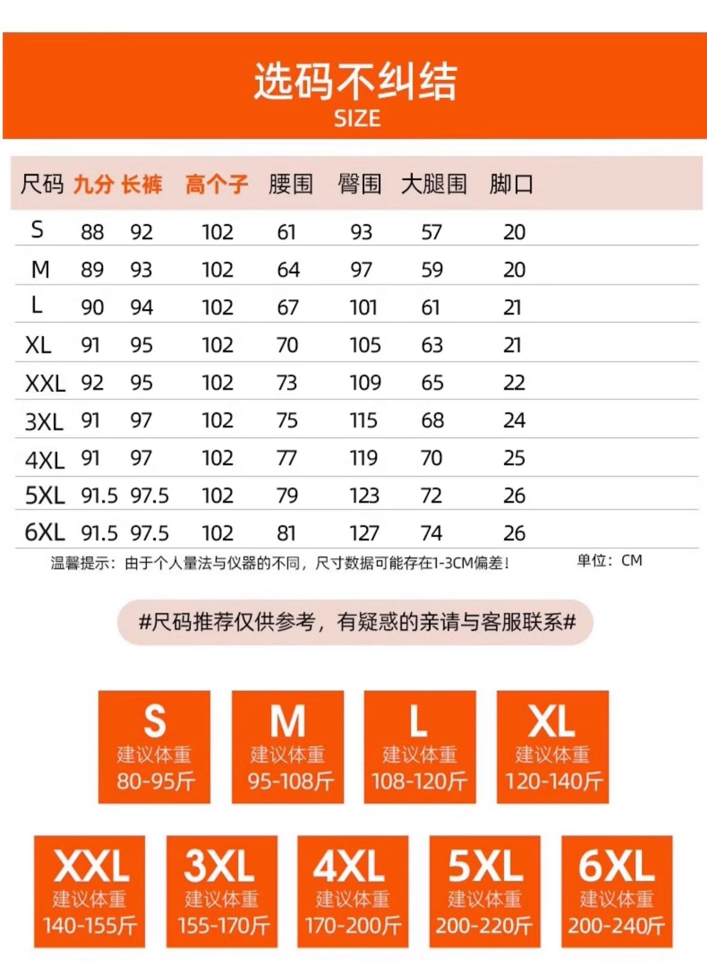 S, M, L, XL, XXL, 3XL, 4XL, 5XL, 6XL, L