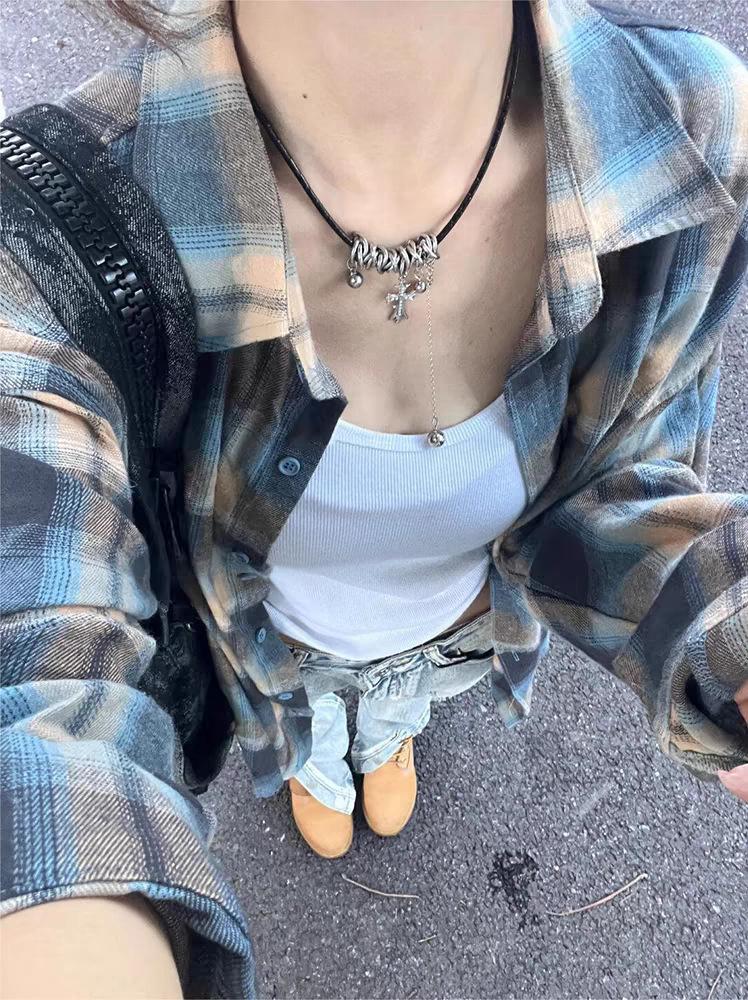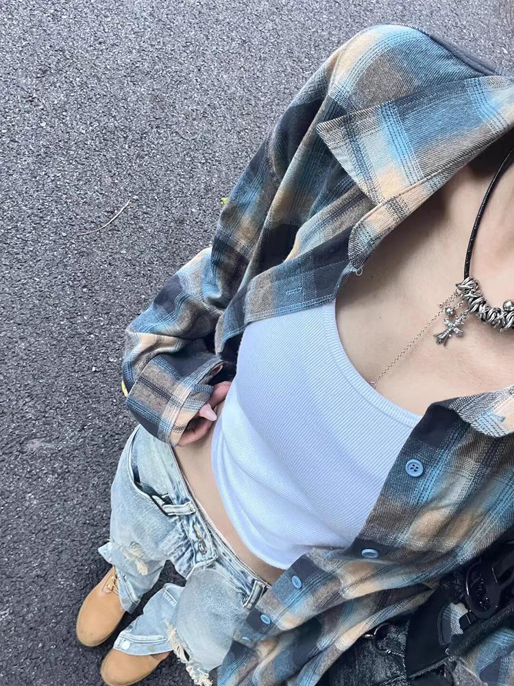 Cs006 orange blue, Cs000 plaid shirt, Cs001 pink small label, Cs003 black pink, Cs004 yellow plaid (tassel hem...