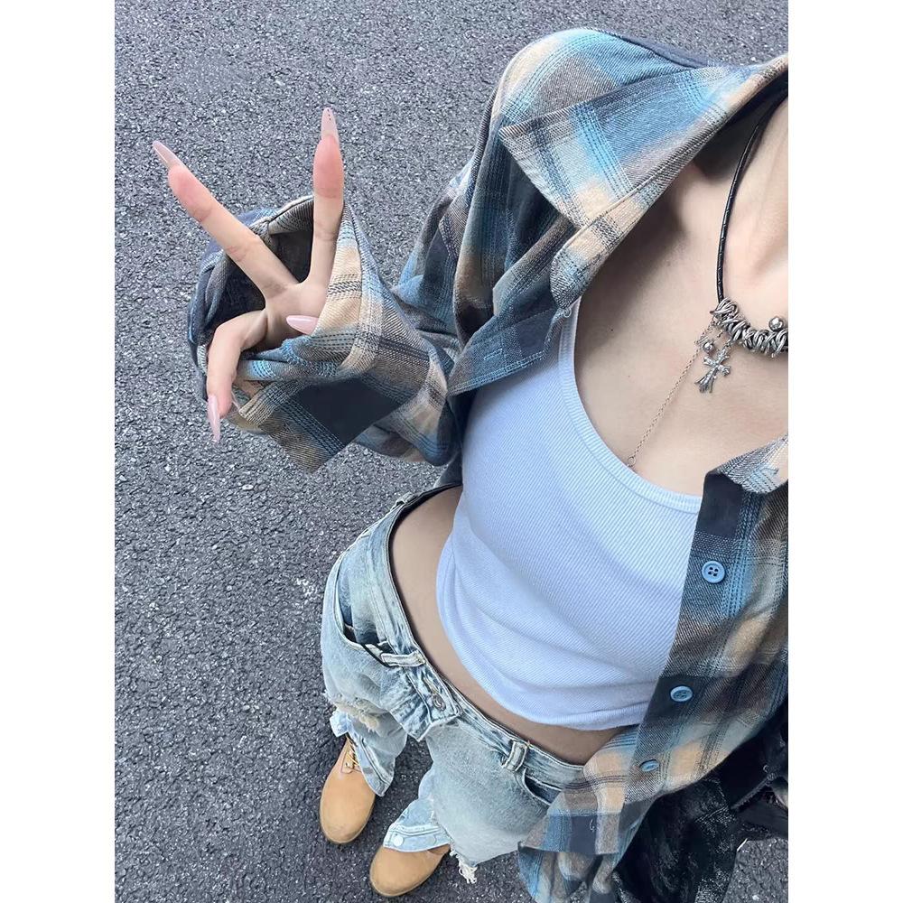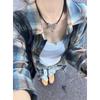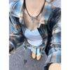 Camisa Retro de Manga Larga Estilo Hong Kong para Mujer en Primavera y Otoño, Top Versátil de Aspecto Holgado y Adelgazante, Diseño Nicho Camisa a Cuadros