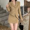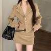 Brown jacket, Brown skirt, Brown jacket + coffee skirt