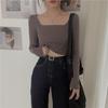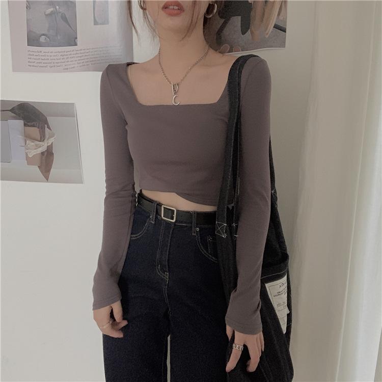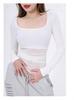 Camiseta Base Blanca para Mujer 2025 Primavera Temprana y Otoño Chic Nueva Camiseta Ajustada Cuello Cuadrado Clavícula Manga Larga