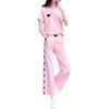 Traje deportivo de ocio para mujer, verano 2025, nueva moda coreana, estilo occidental holgado, antiedad, rosa, moda europea, conjunto de dos piezas