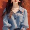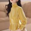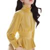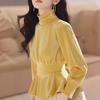 Camisa de terciopelo de cuello alto de color amarillo francés, ligera y madura, estilo extranjero, elegante, única y popular de este año para el invierno.