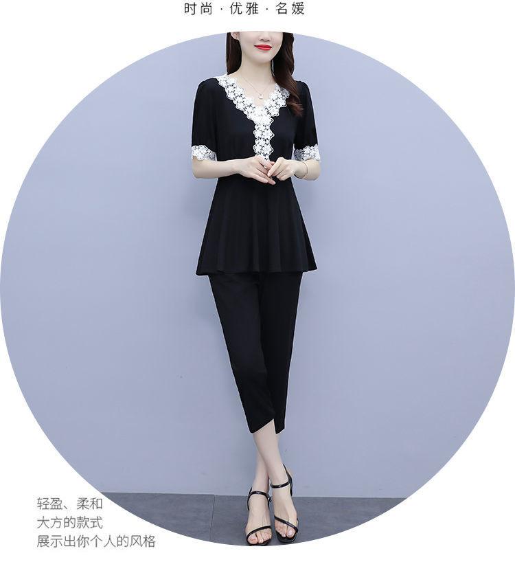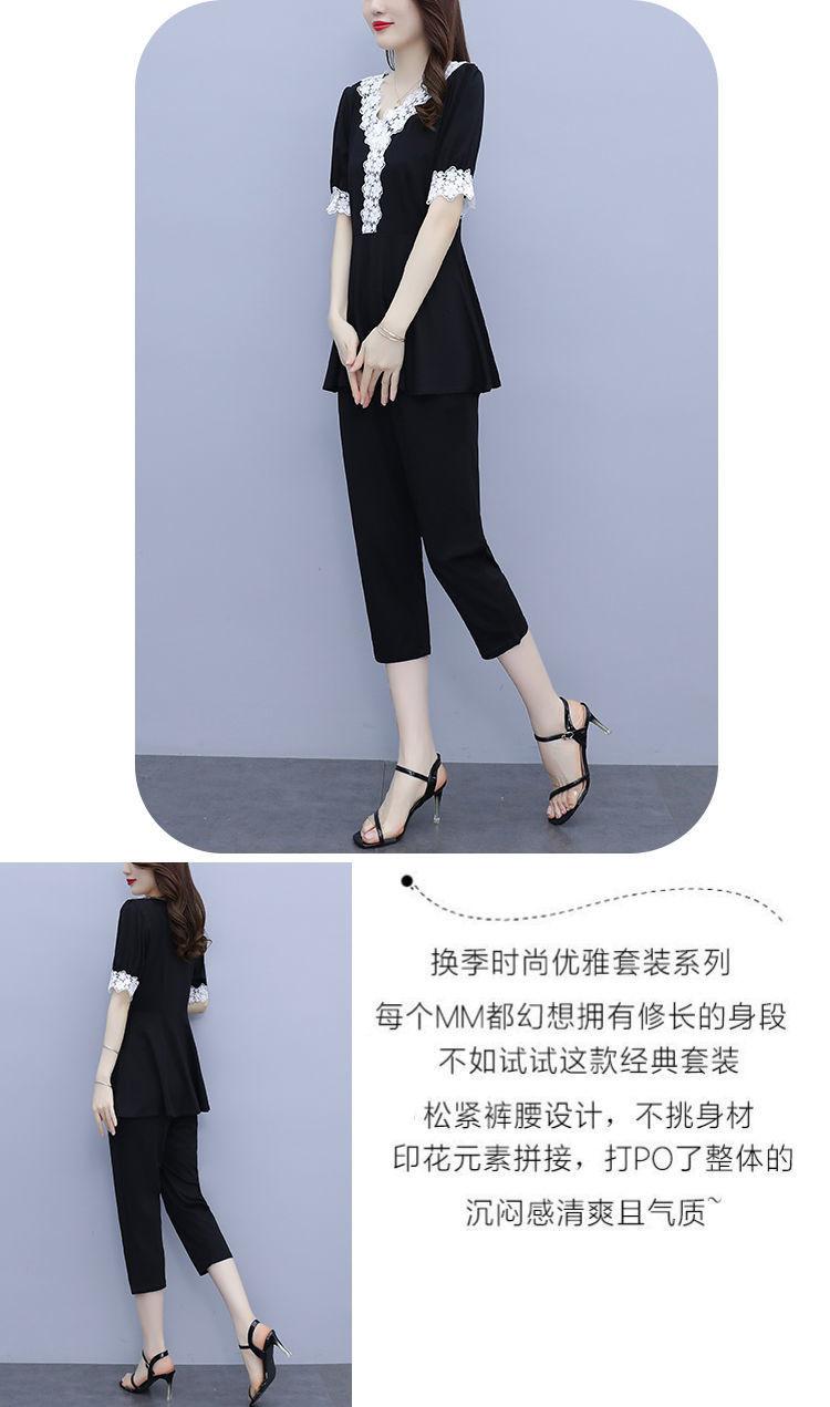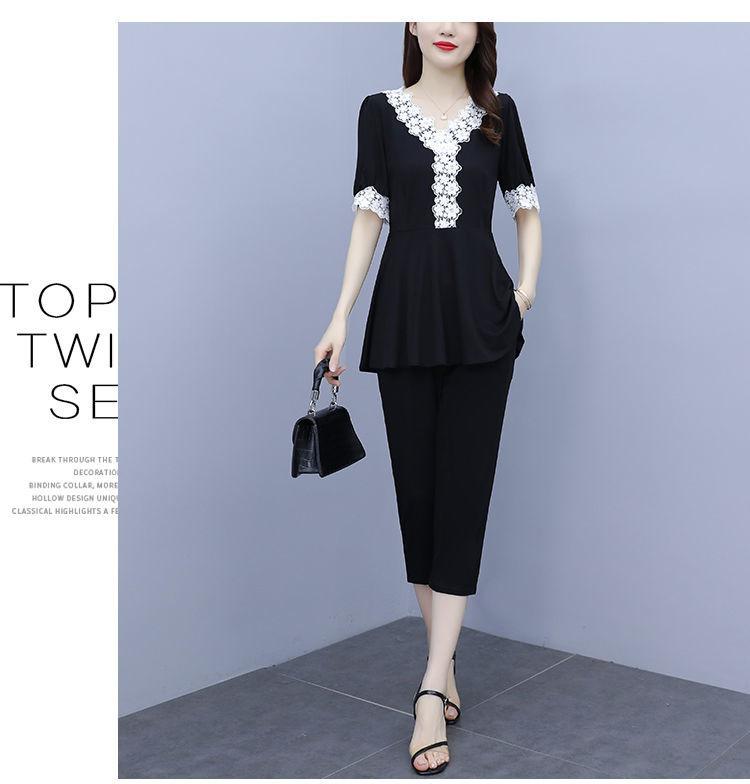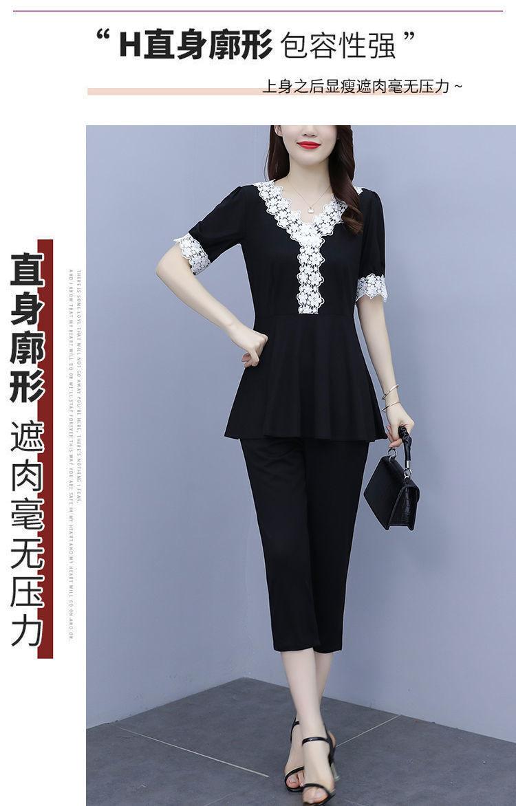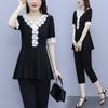 Traje de moda para mujer Verano Nuevo talla grande para mujer Suelto Reductor de edad Pantalones elegantes Conjunto casual de dos piezas para chicas rellenitas