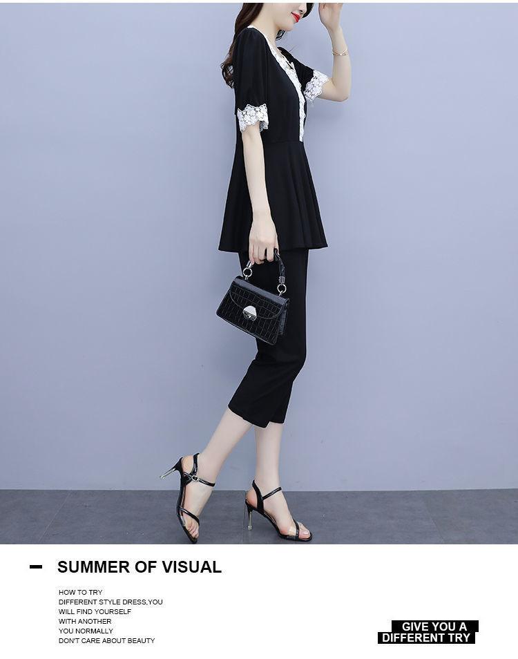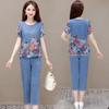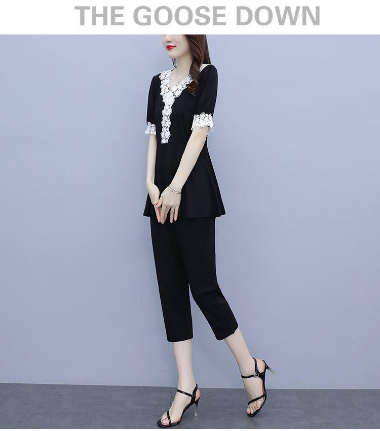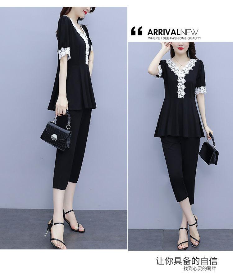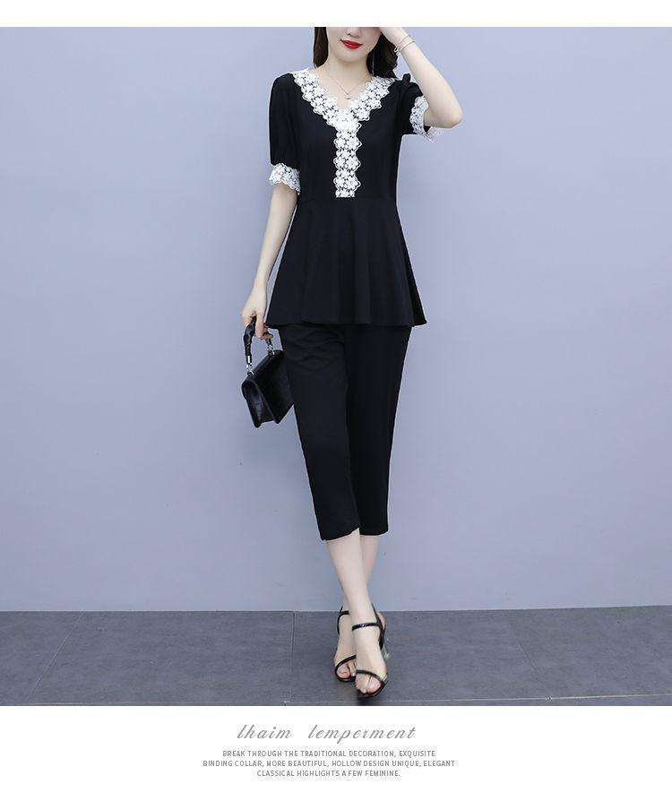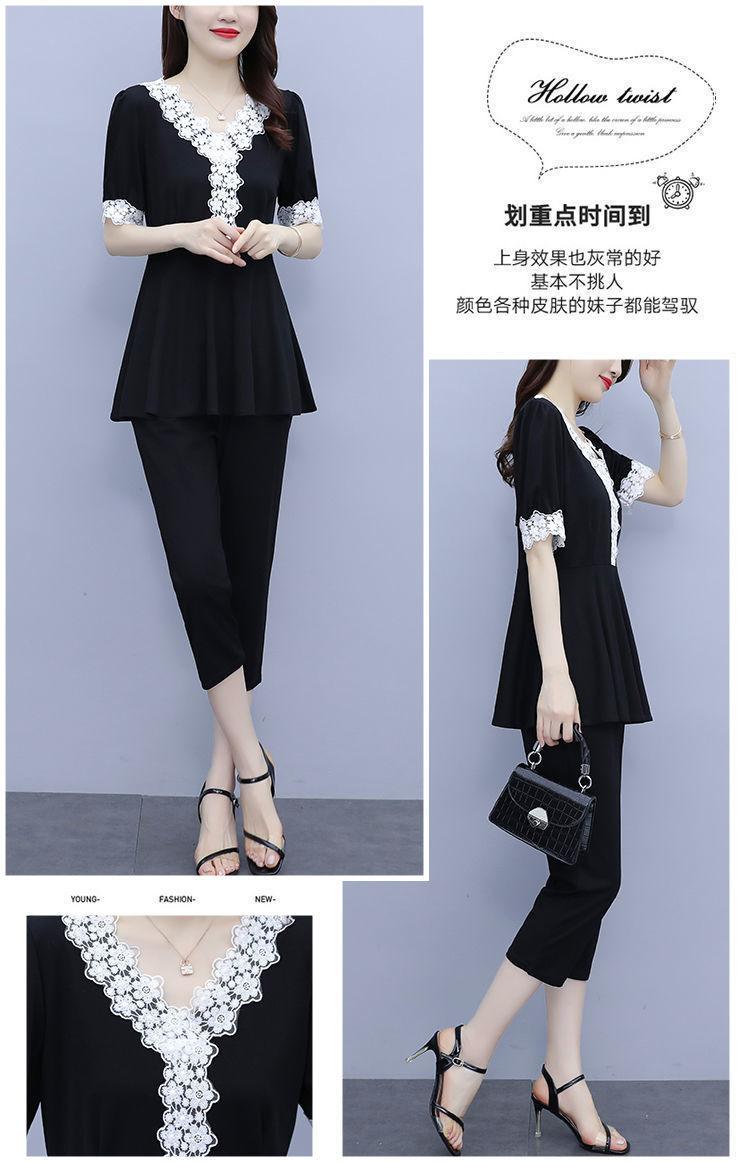 Traje de moda para mujer Verano Nuevo talla grande para mujer Suelto Reductor de edad Pantalones elegantes Conjunto casual de dos piezas para chicas rellenitas