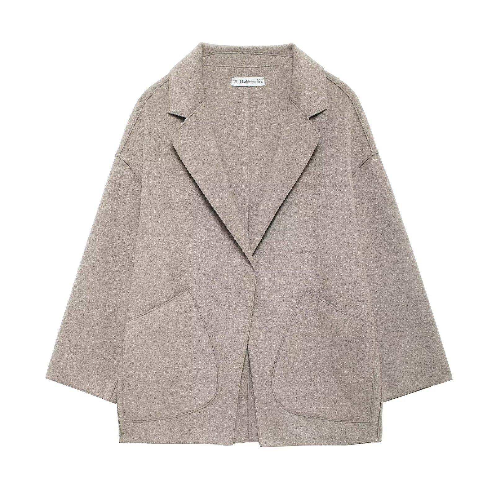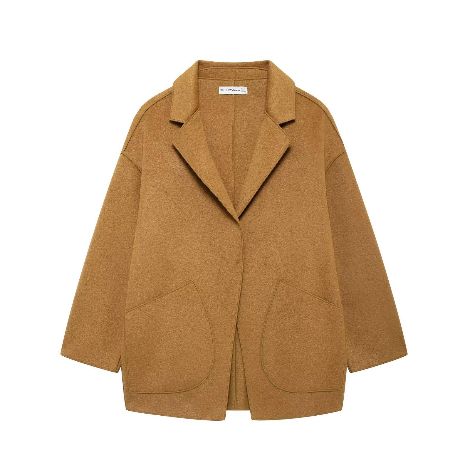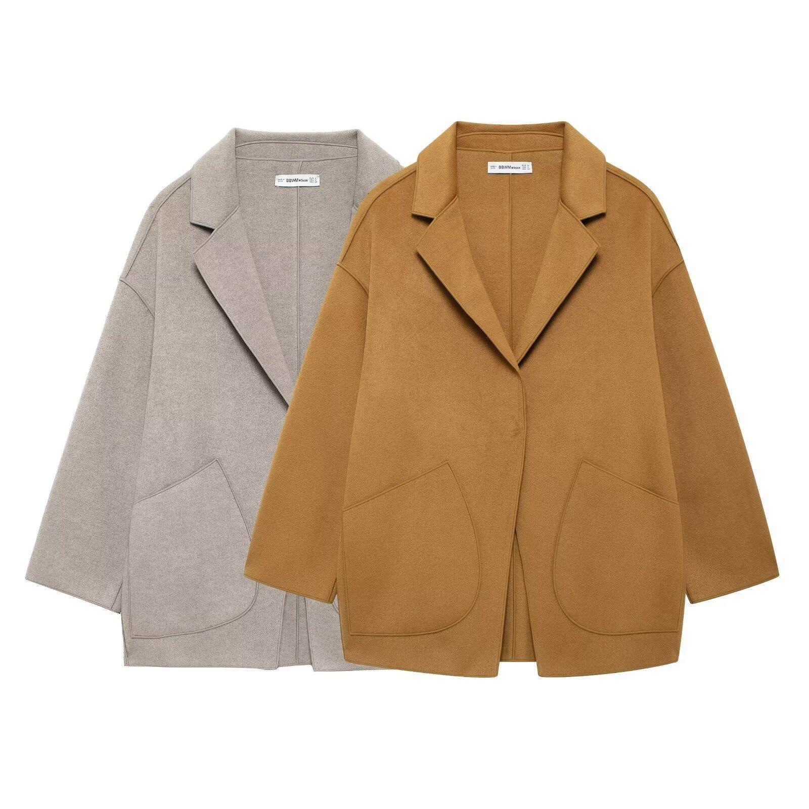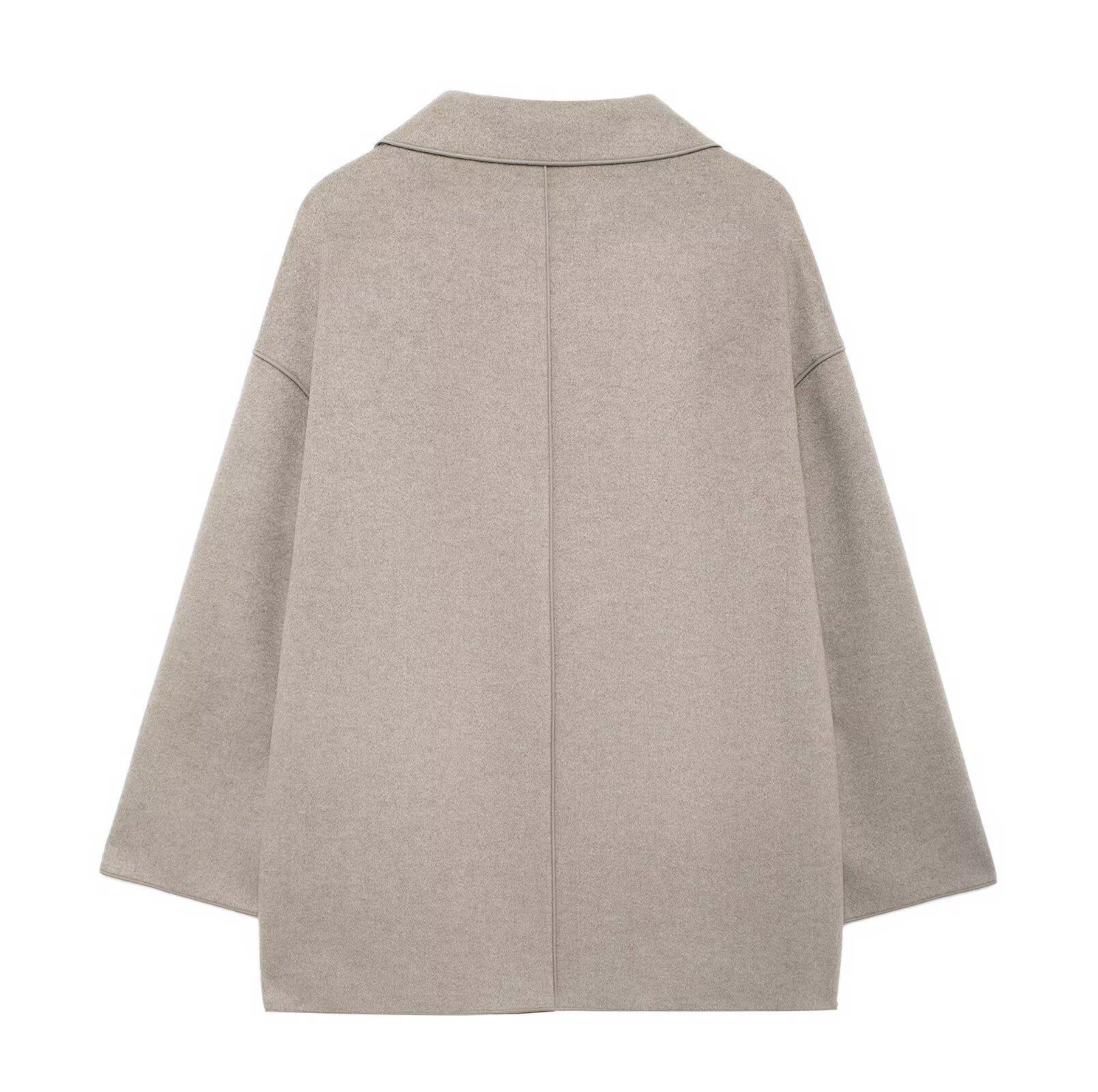 Lote de ropa de mujer de comercio exterior 24 otoño e invierno estilo europeo y americano solapa manga larga botonadura sencilla elegante holgado chaqueta de lana abrigo