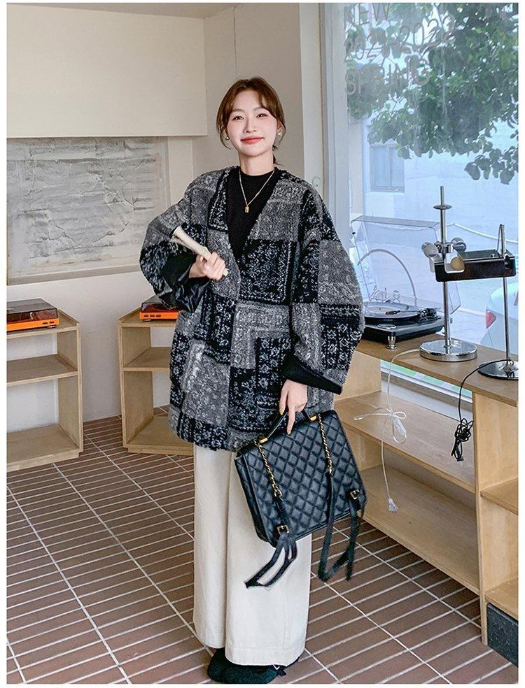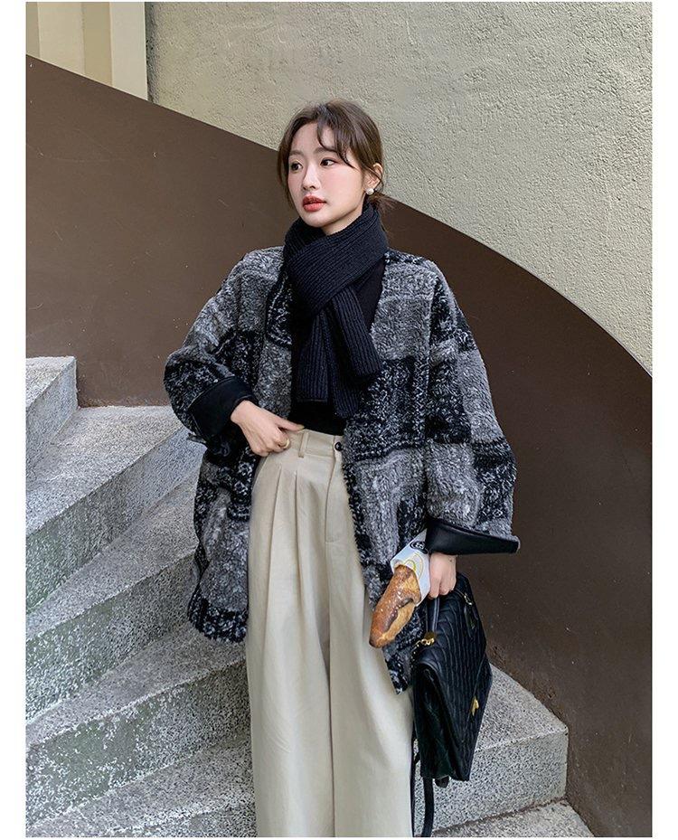Invierno 2024 Nueva Moda Ajustada Estilo Coreano Ropa Largo Medio Suelta Chaqueta Mao Mao de Lujo Ligero para Mujer Pequeña a la Moda