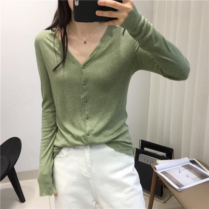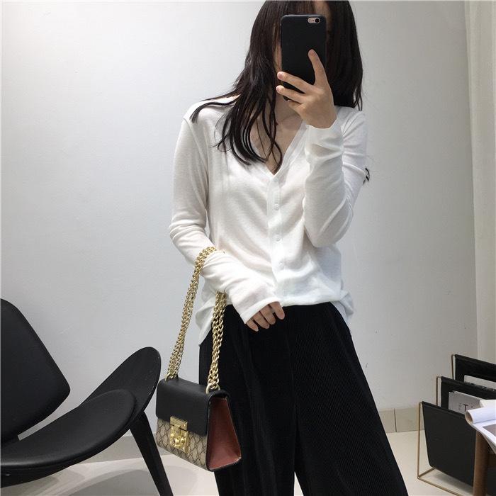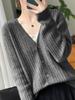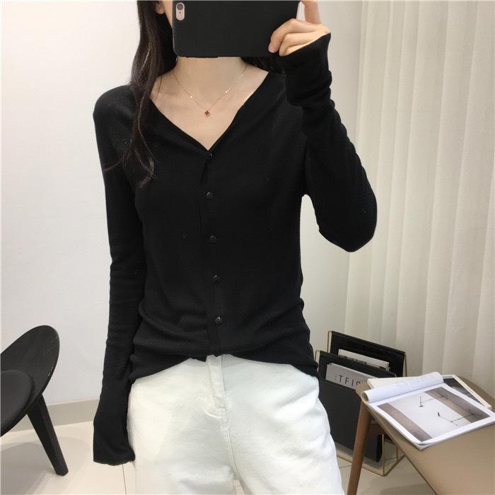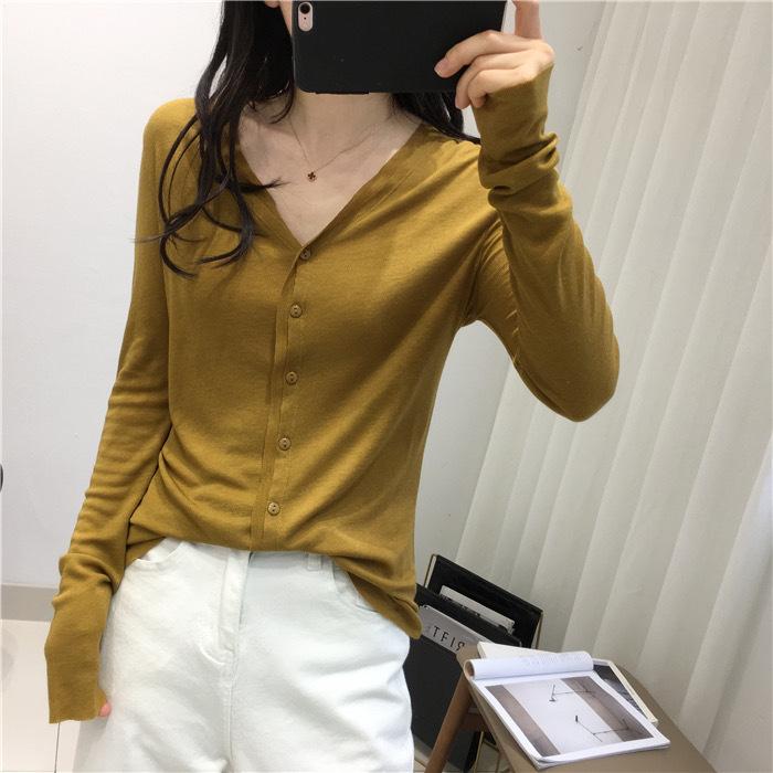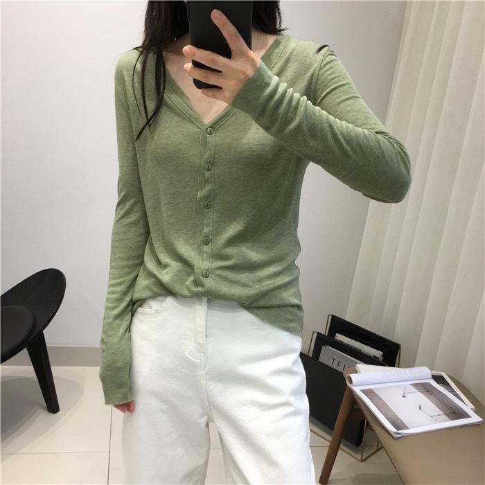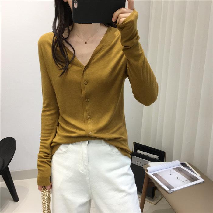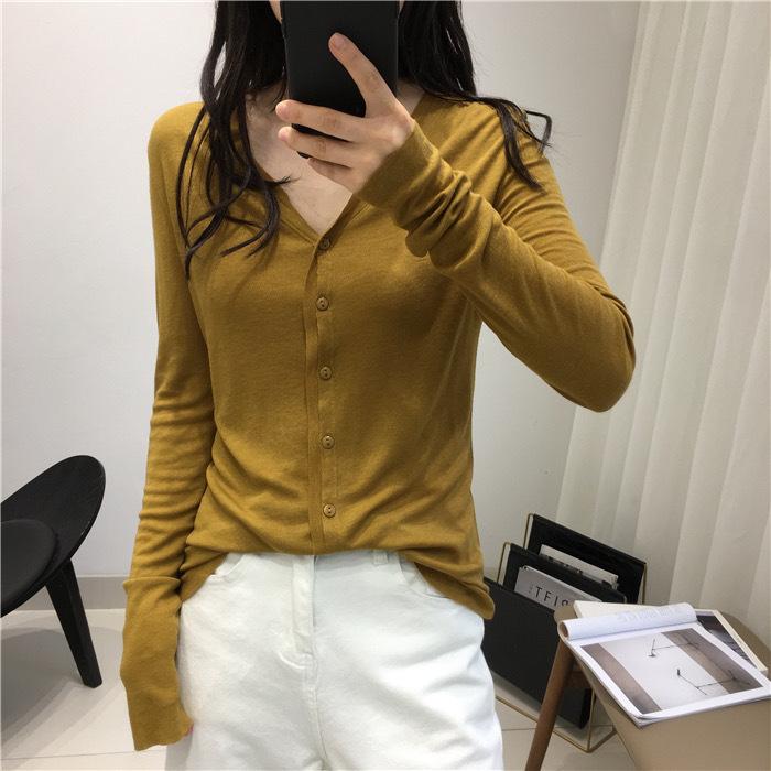 Cárdigan Versátil de Lana Fina para Mujer para Primavera y Otoño, Suéter Base de Cuello en V de Corte Slim, Top de Manga Larga, Diseño Nicho