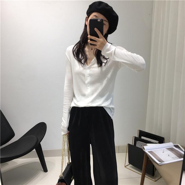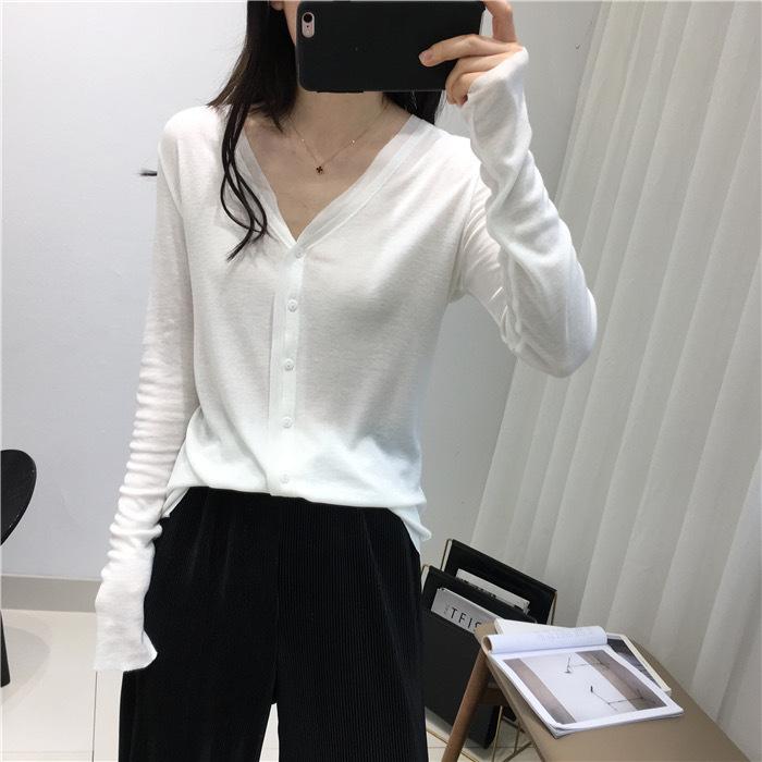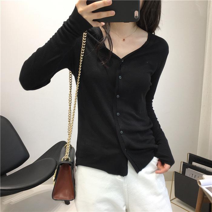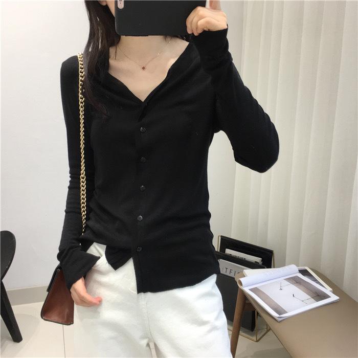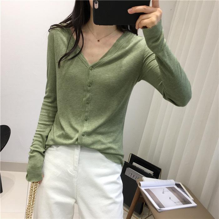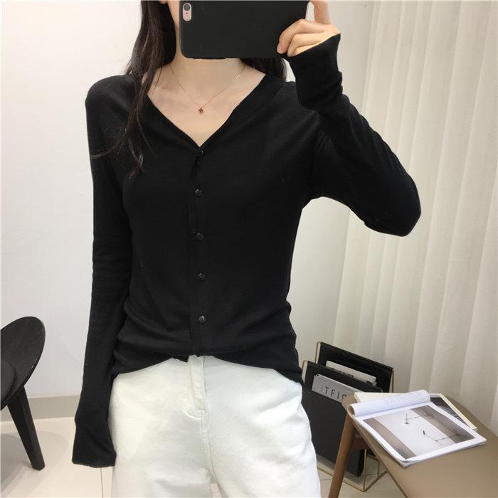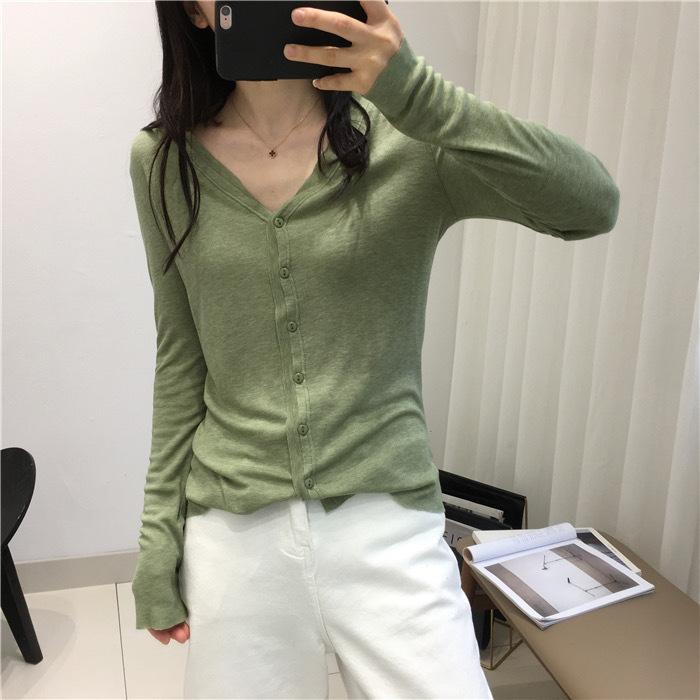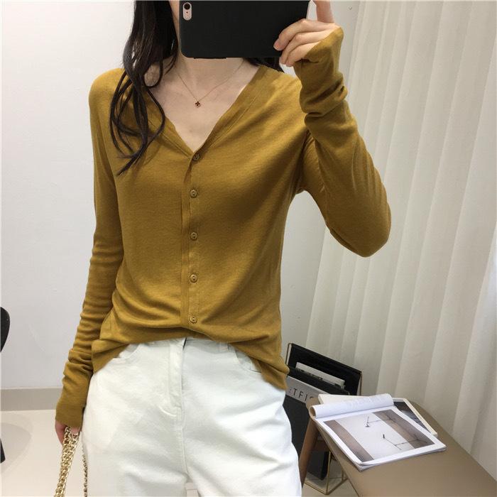 Cárdigan Versátil de Lana Fina para Mujer para Primavera y Otoño, Suéter Base de Cuello en V de Corte Slim, Top de Manga Larga, Diseño Nicho