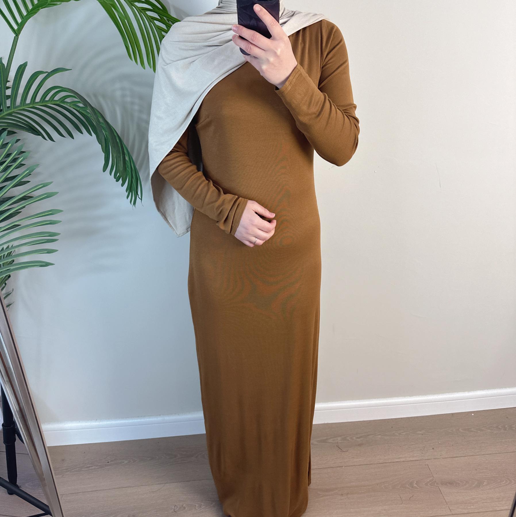 Loriya2025 AliExpress Amazon Medio Oriente Turquía Dubái vestido de algodón modal de color sólido LR933Vestido de algodón jersey