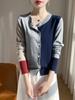 Primavera 2025 Nuevo Top de Cuello Redondo en Contraste de Fina Imitación Lana para Mujer, Holgado, Moda Combinable, Chaqueta Cárdigan Tejida
