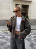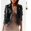 2024 otoño e invierno nuevo europeo y americano transfronterizo moda callejera para mujer chamarra de manga larga con empalme de cuero PU 2155
