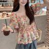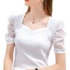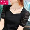 Playera Spot de Seda de Hielo para Mujer 2025 Nueva Camiseta de Verano de Manga Corta Estilo Palacio Francés Manga Abullonada Top Trendy