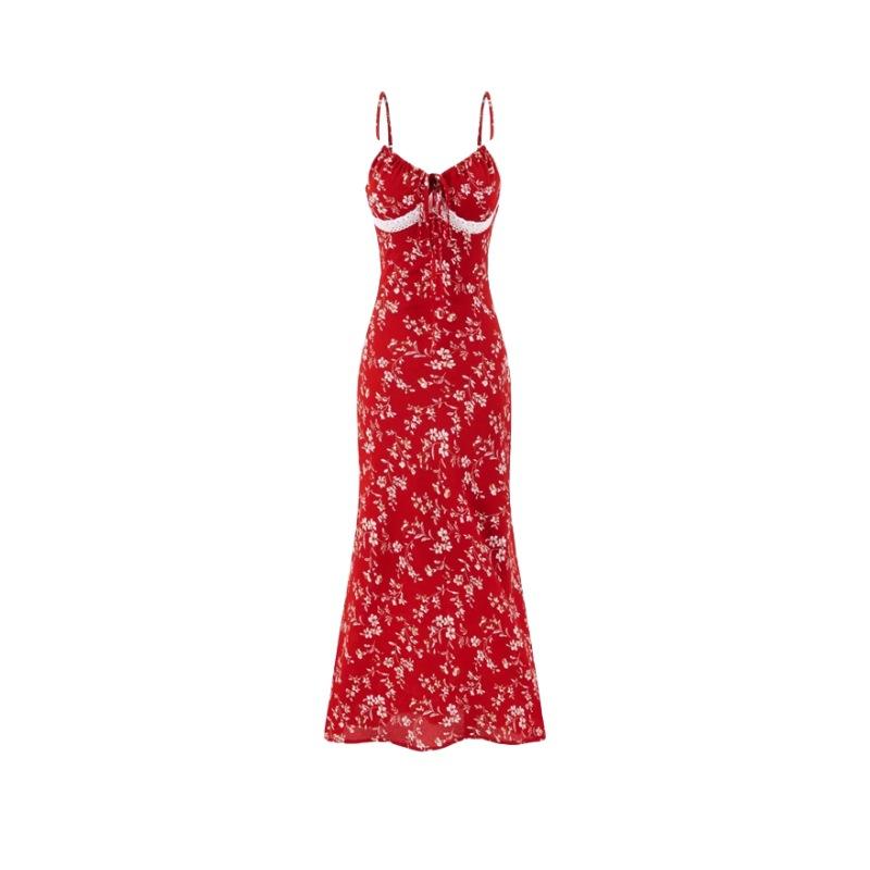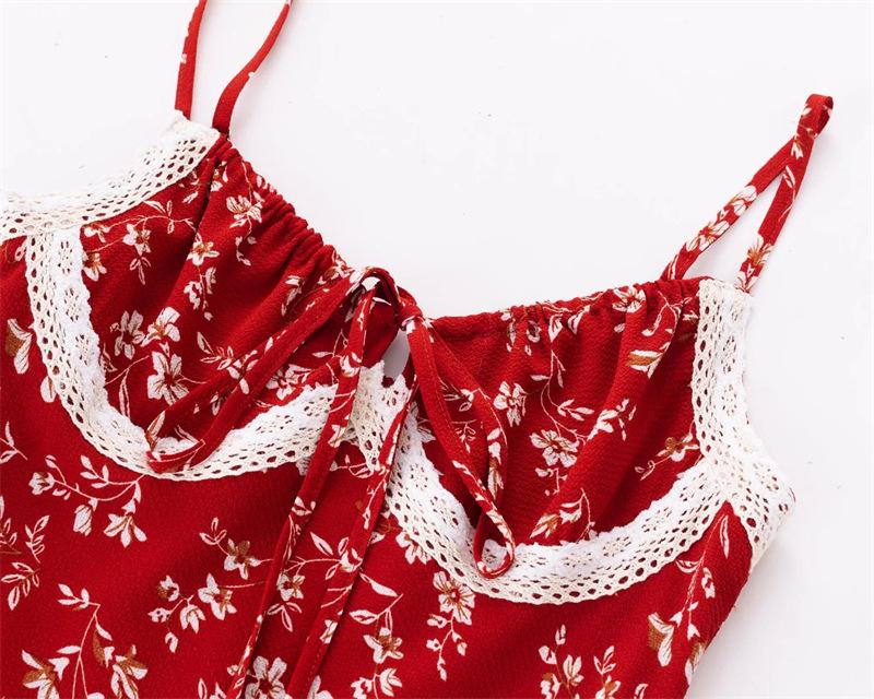 Vestido largo con tirantes y costuras de encaje retro francés para mujer, primavera y verano, ideal para vacaciones en la playa y viajes.