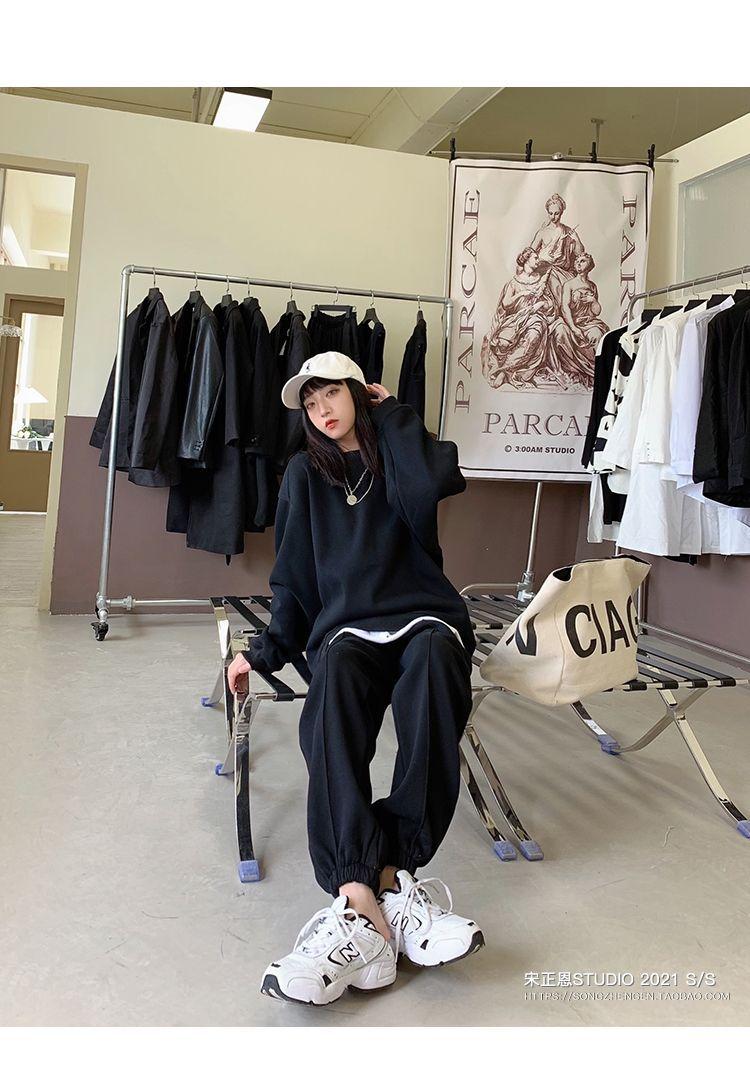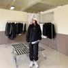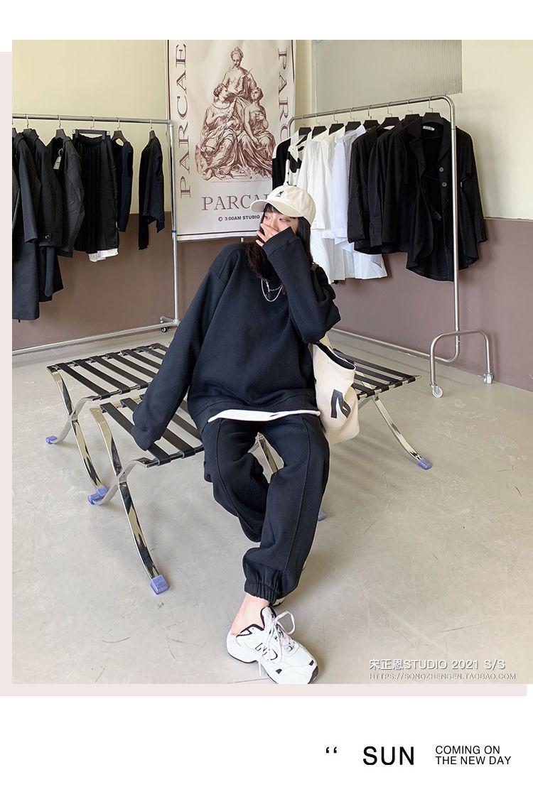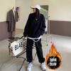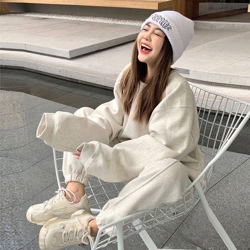 Traje deportivo informal de invierno grueso con forro polar para mujer, estilo europeo y americano, color sólido, suéter holgado antiedad de moda, traje de dos piezas