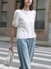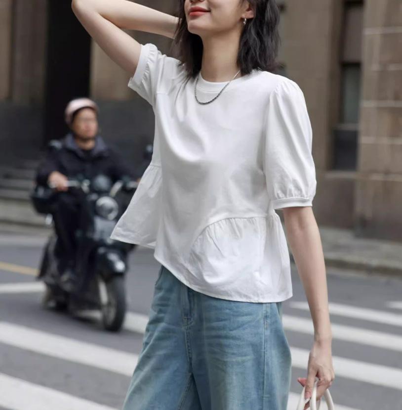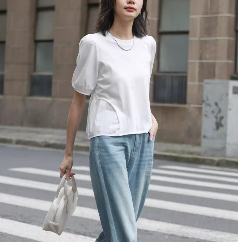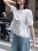 Playera Blanca Simple Holgada de Manga Corta Estilo Francés para Mujer 2025 Nuevo Verano Sentido del Diseño Nicho Top Camiseta Básica Trendy