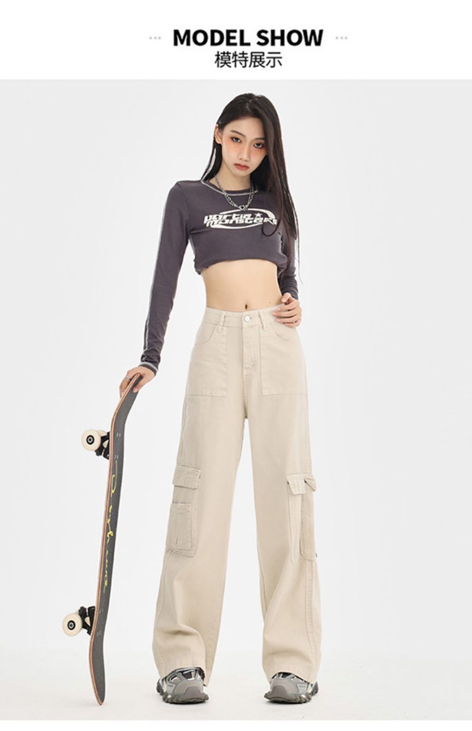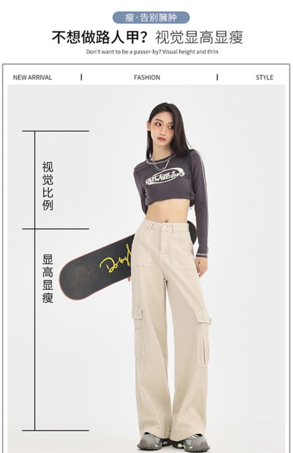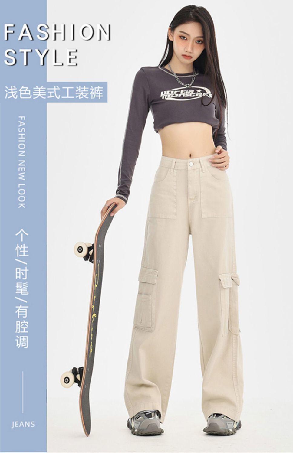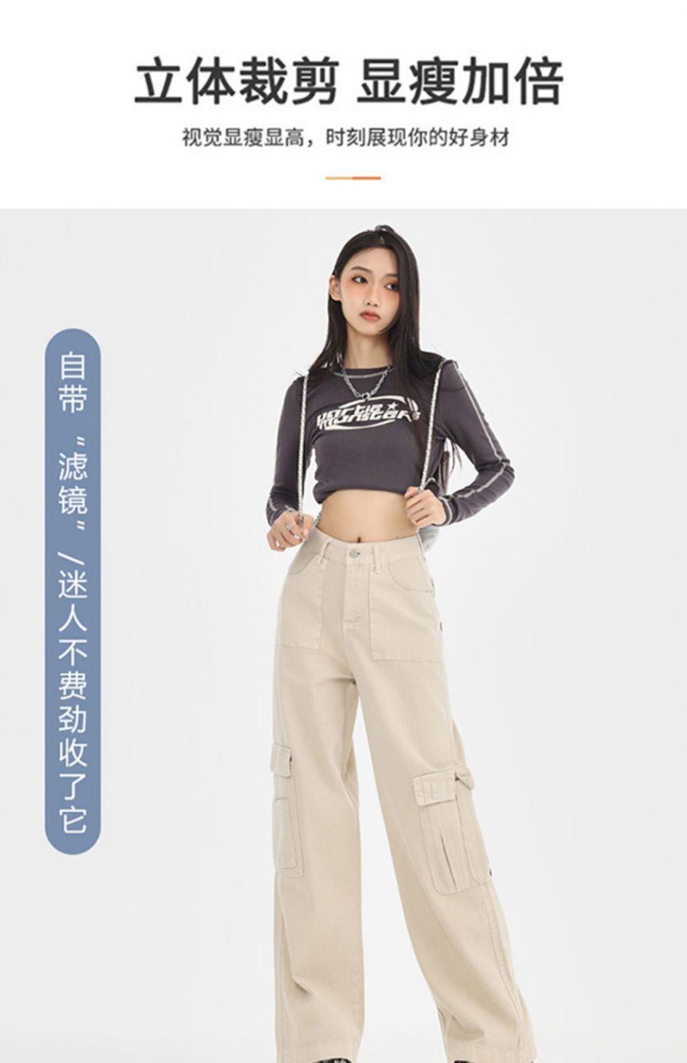 Vaqueros holgados de pierna ancha y cintura alta que cubren la cadera 2025 Chubby Sister talla grande color albaricoque Pierna larga Cubre Ropa de mujer