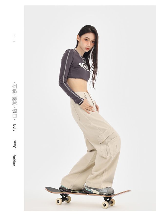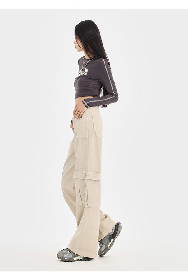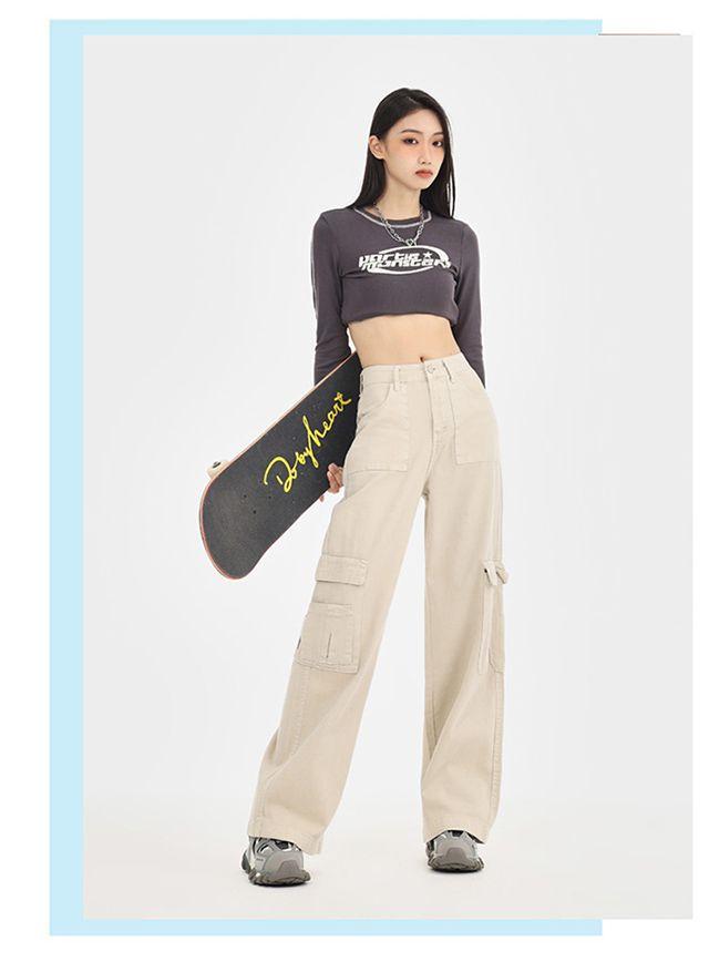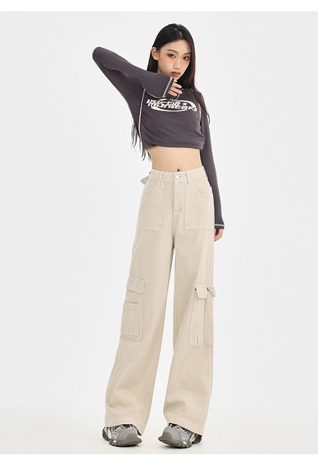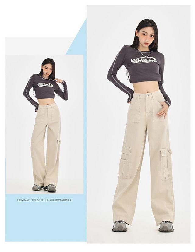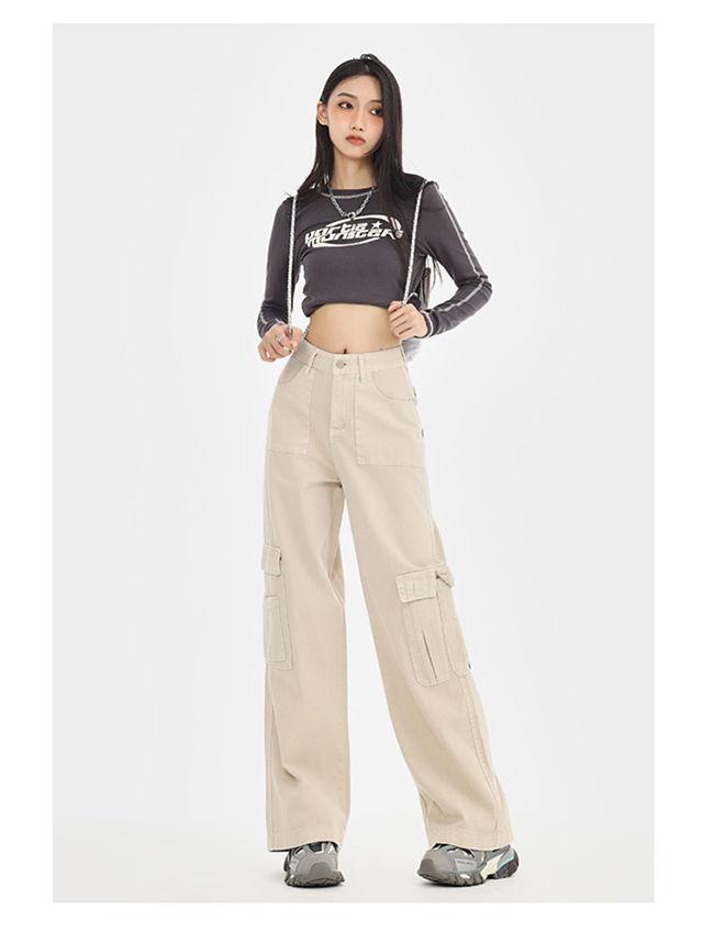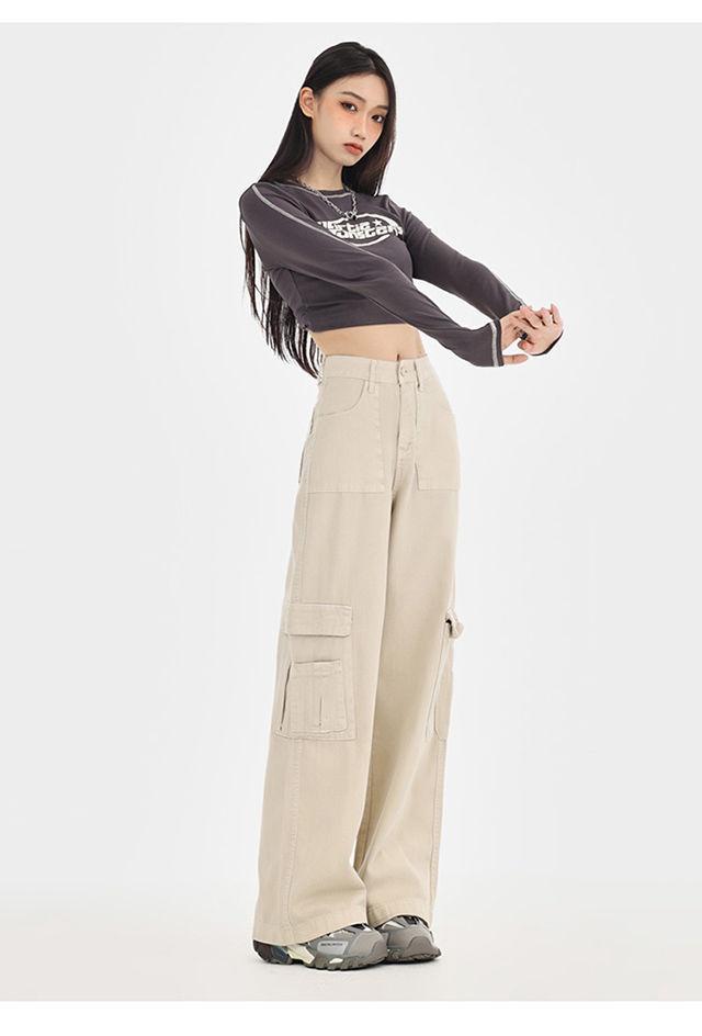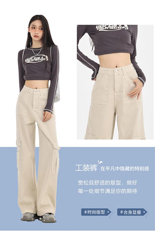 Vaqueros holgados de pierna ancha y cintura alta que cubren la cadera 2025 Chubby Sister talla grande color albaricoque Pierna larga Cubre Ropa de mujer