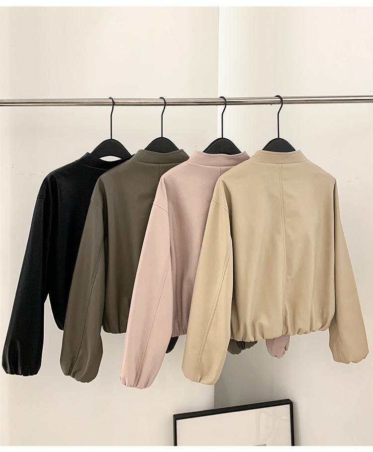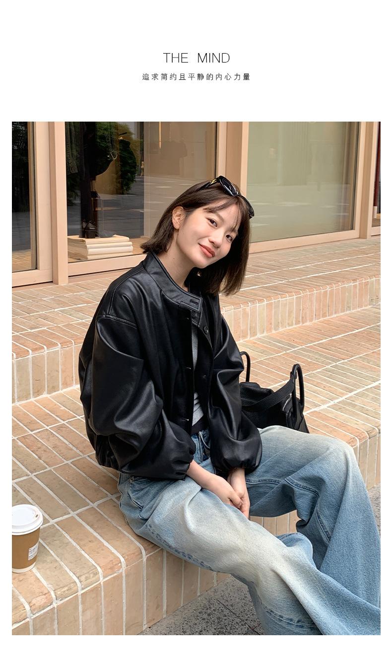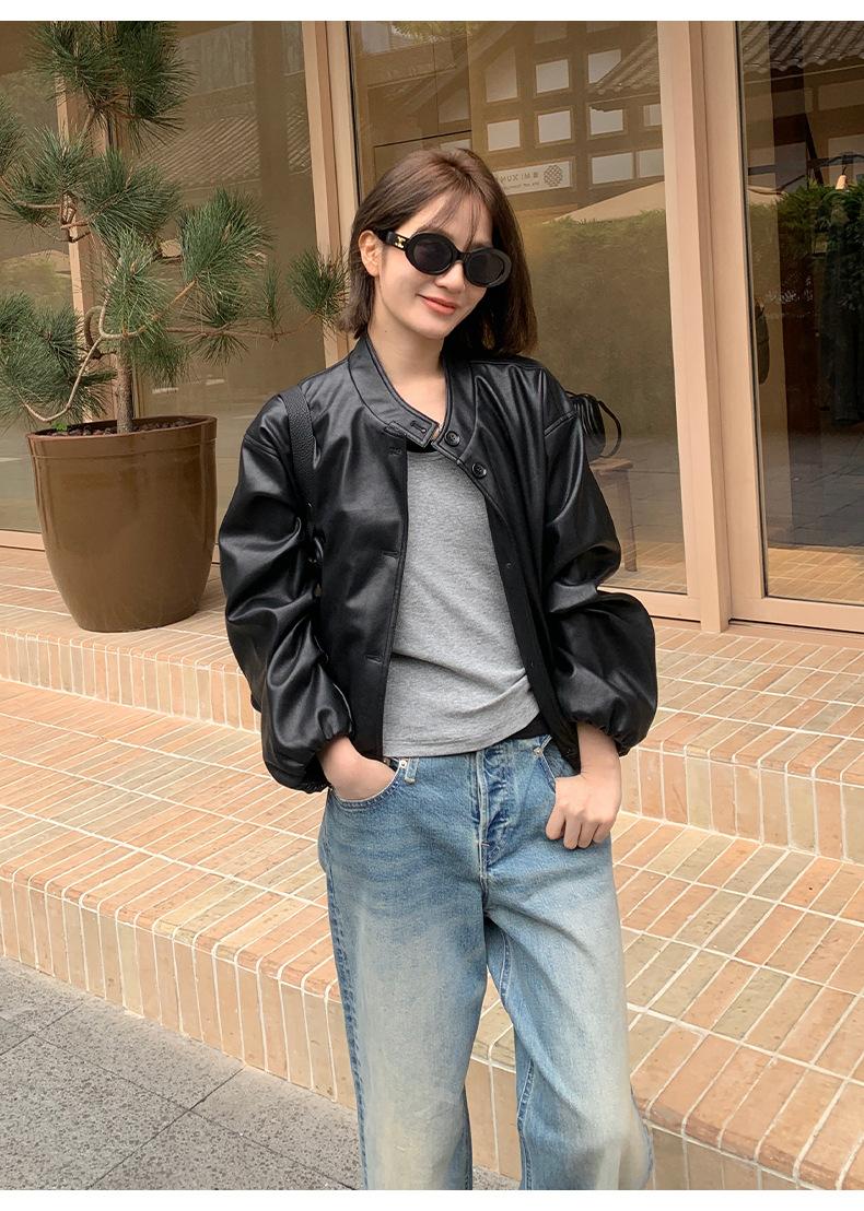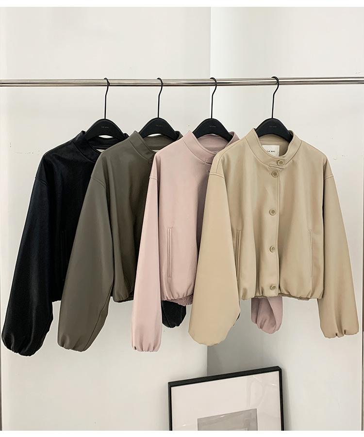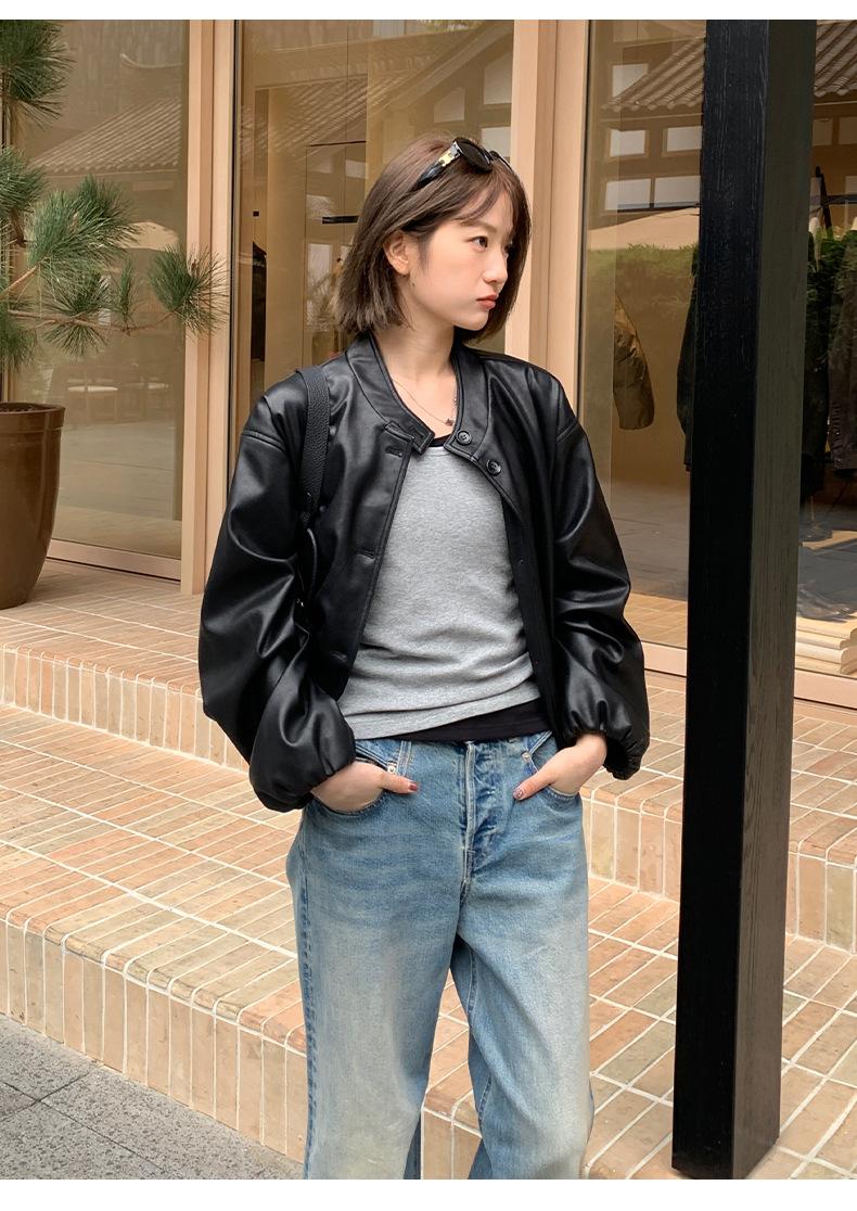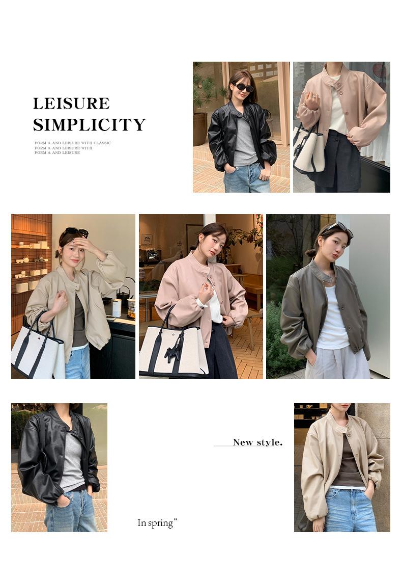 La Chaqueta de Cuero PU con Cuello Mao para Mujer 2025 Trece Líneas Otoño de Alta Calidad Chaqueta de Un Solo Botón T025