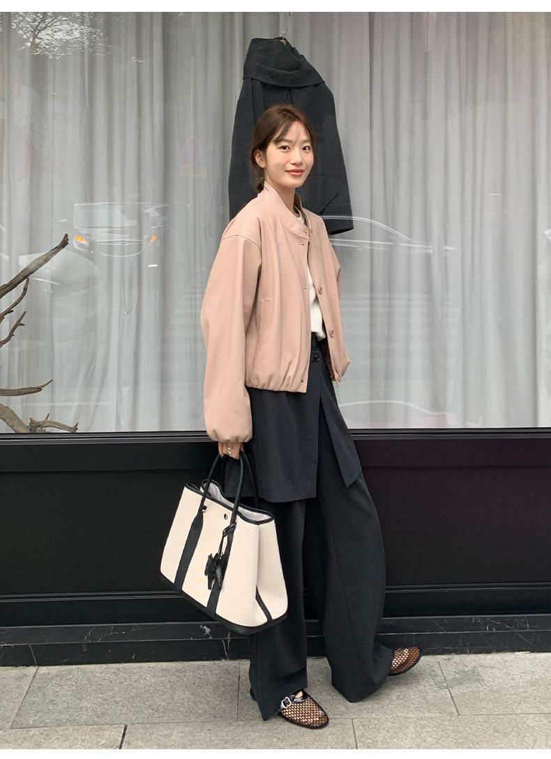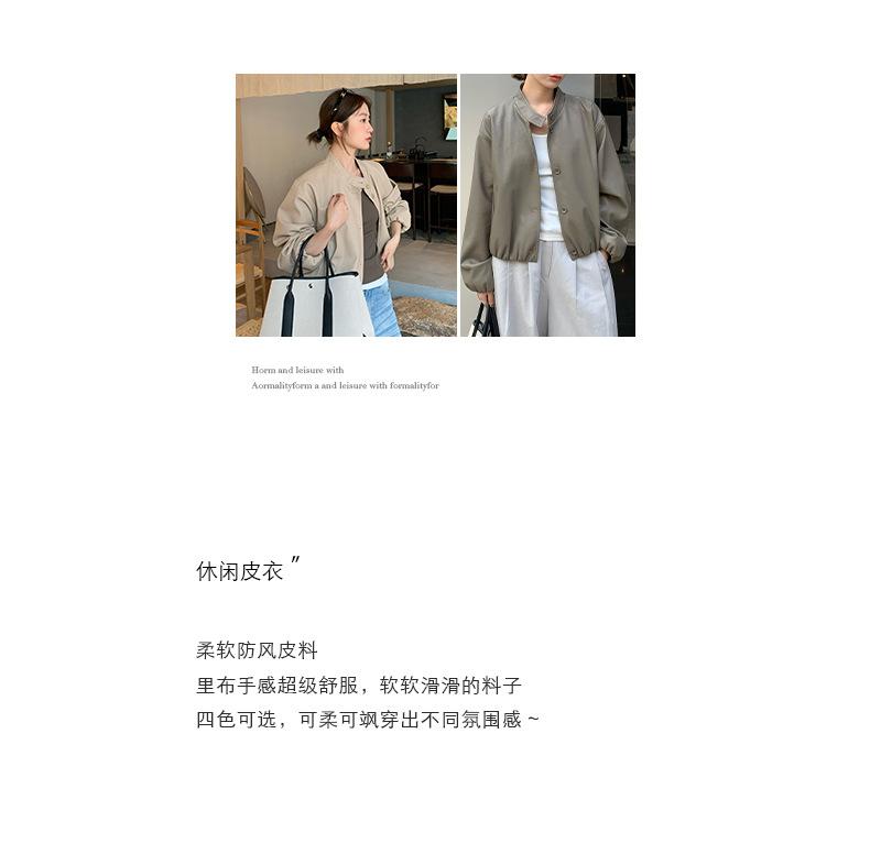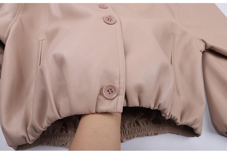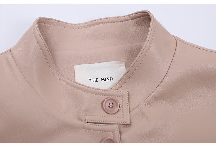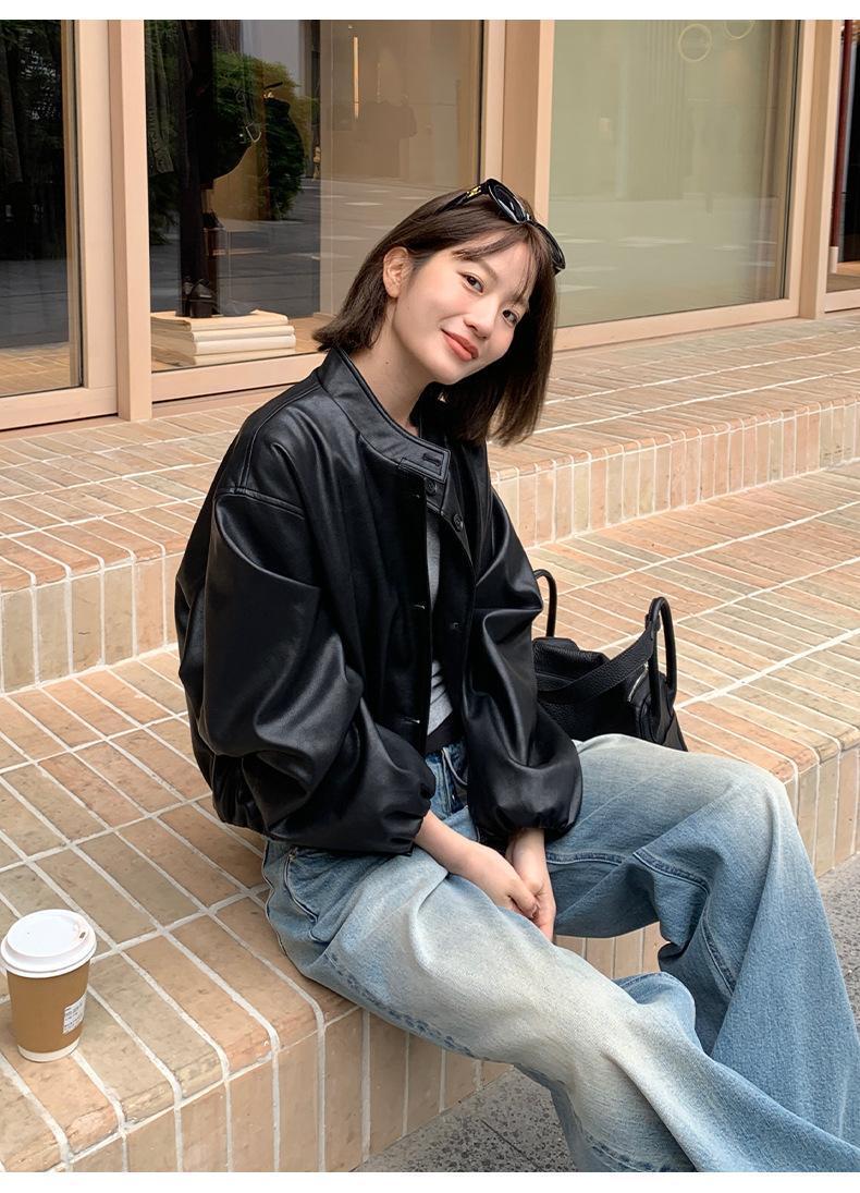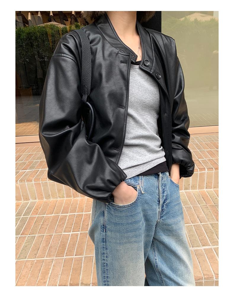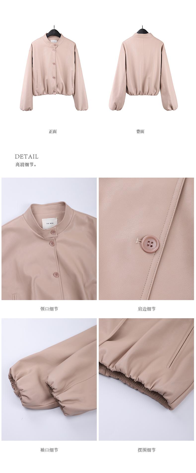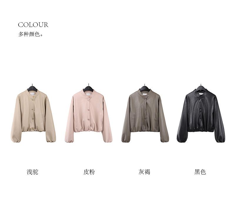 La Chaqueta de Cuero PU con Cuello Mao para Mujer 2025 Trece Líneas Otoño de Alta Calidad Chaqueta de Un Solo Botón T025