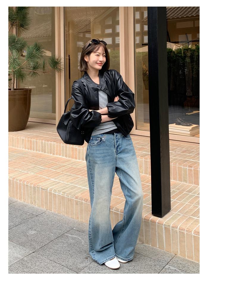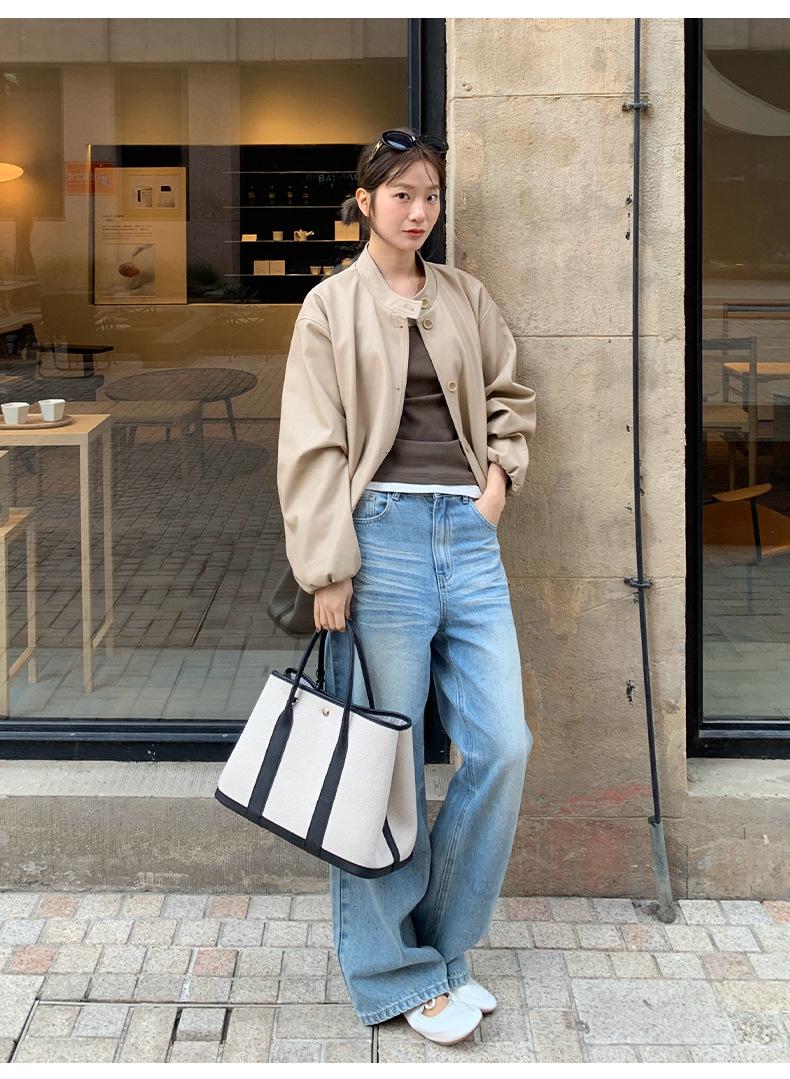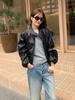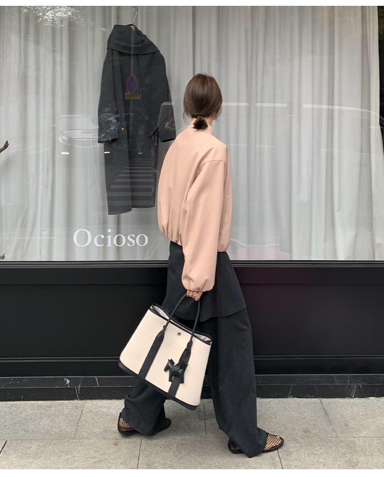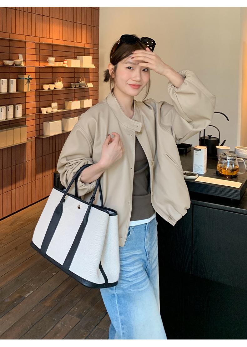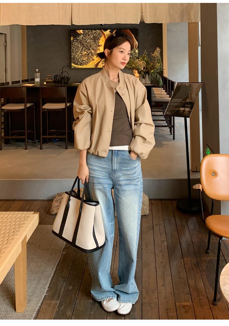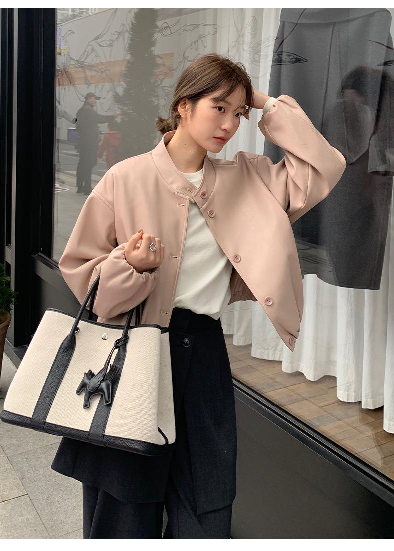 La Chaqueta de Cuero PU con Cuello Mao para Mujer 2025 Trece Líneas Otoño de Alta Calidad Chaqueta de Un Solo Botón T025