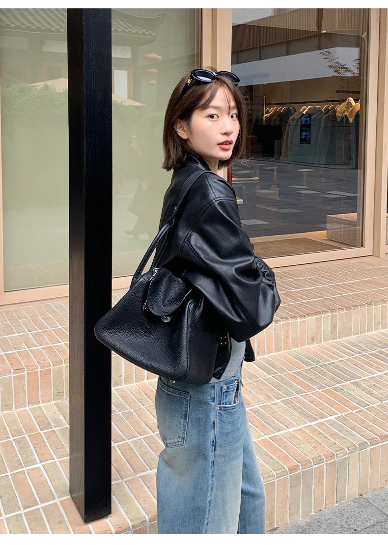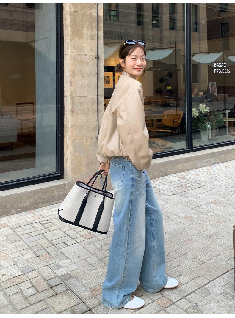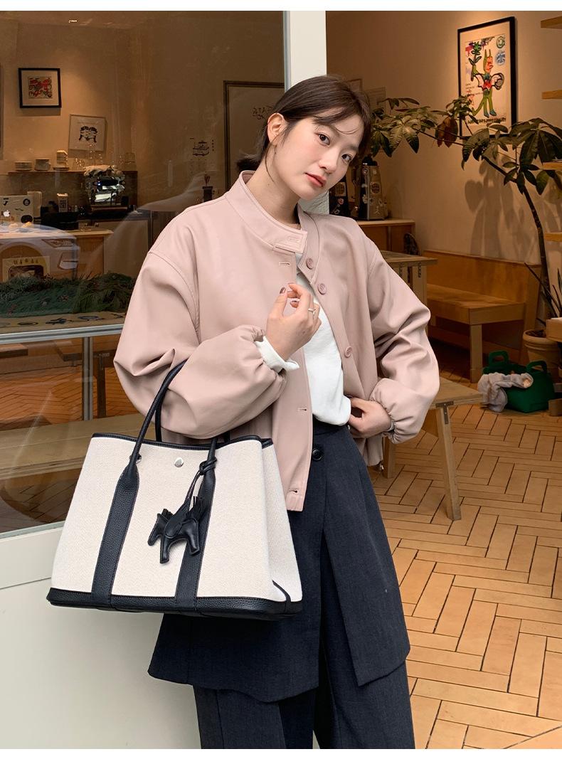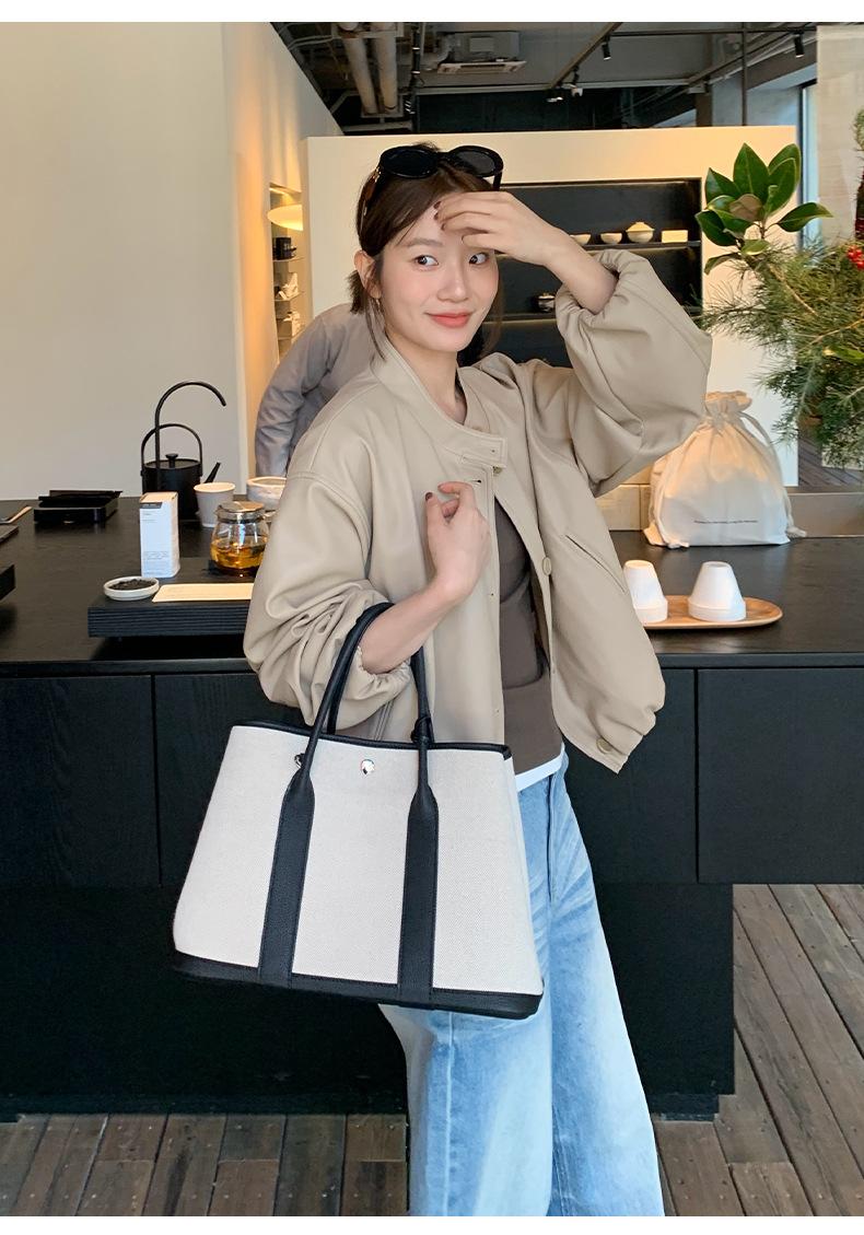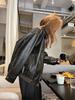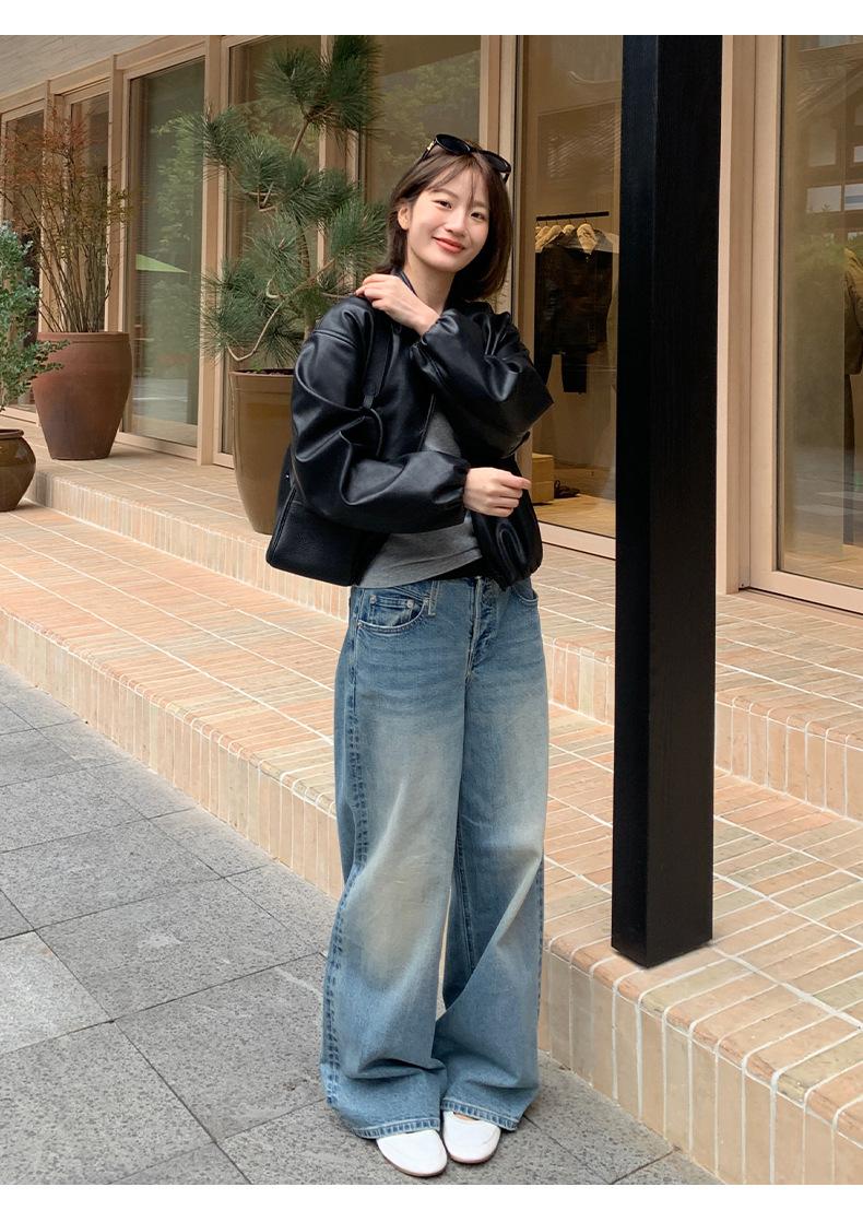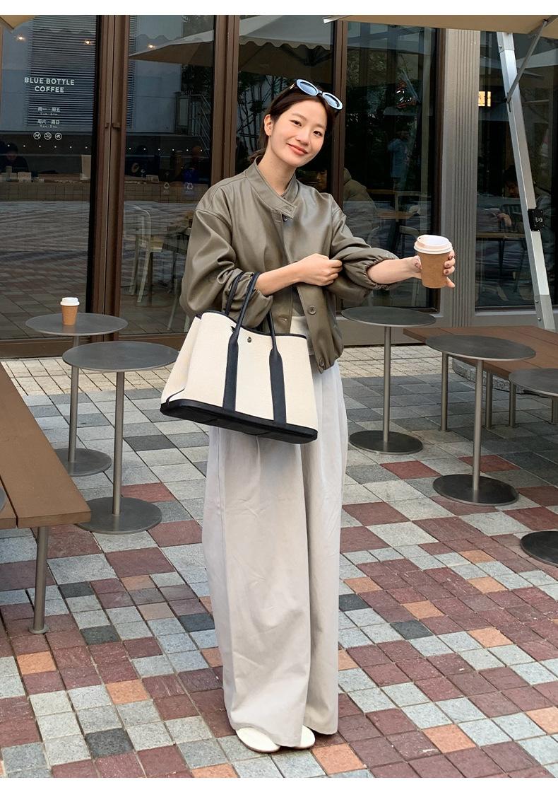 La Chaqueta de Cuero PU con Cuello Mao para Mujer 2025 Trece Líneas Otoño de Alta Calidad Chaqueta de Un Solo Botón T025