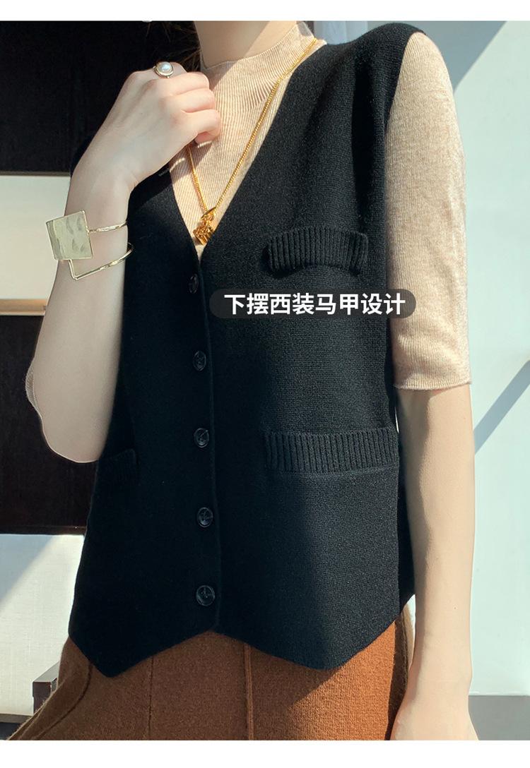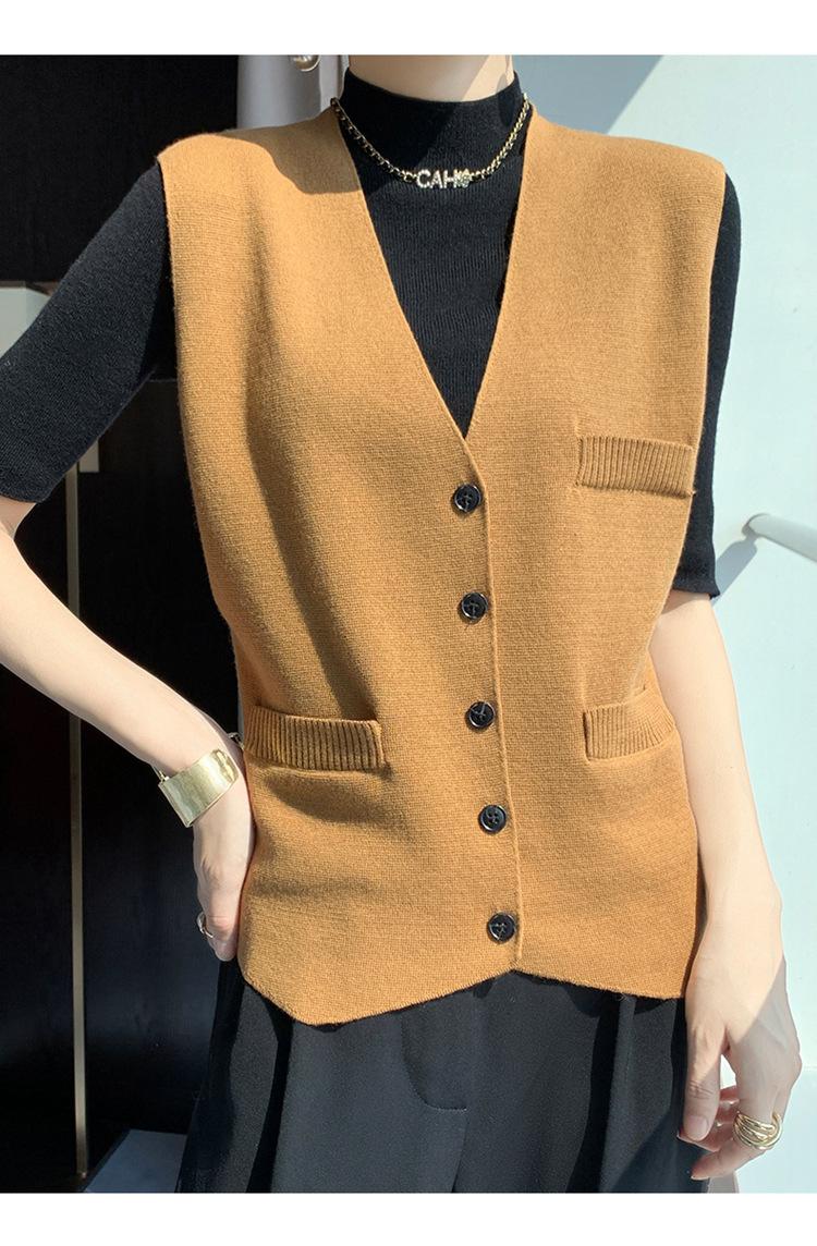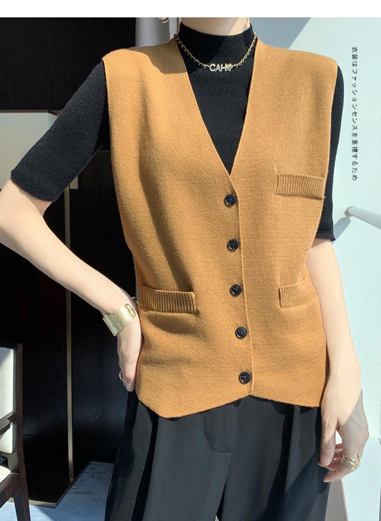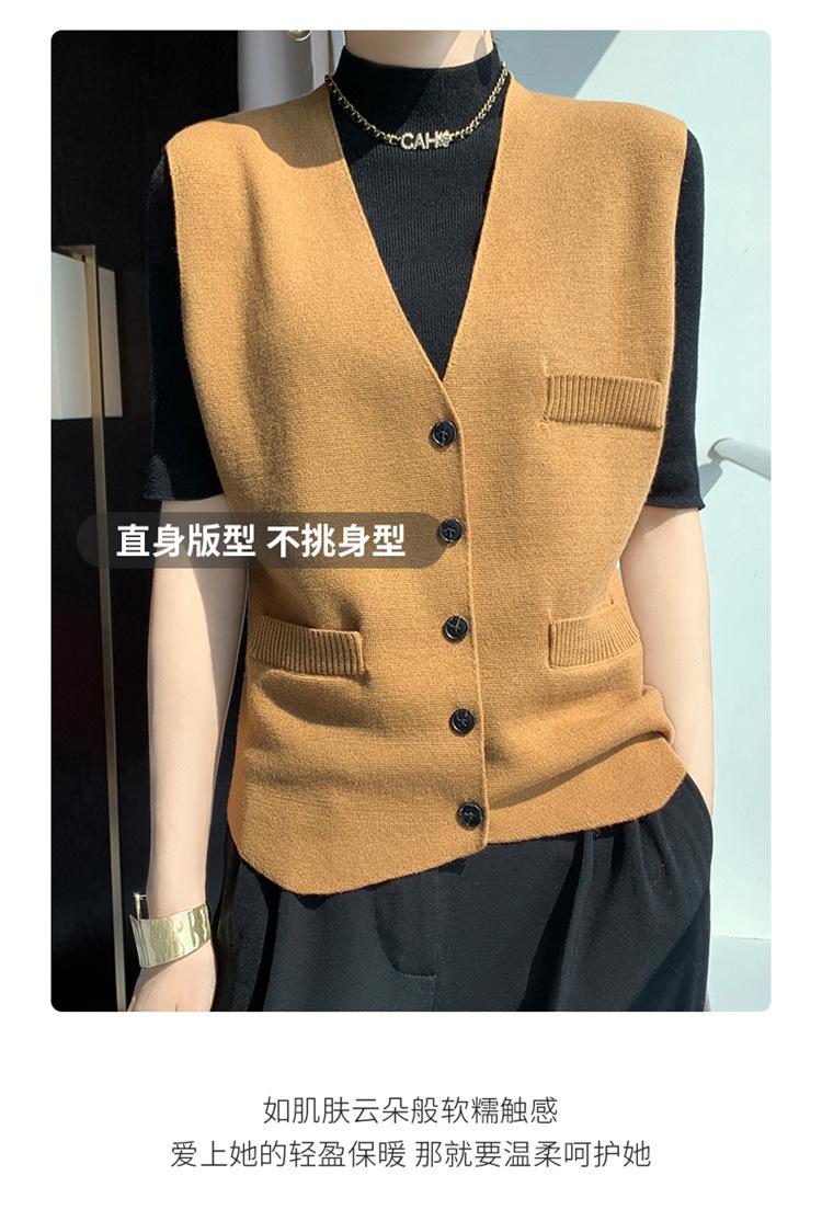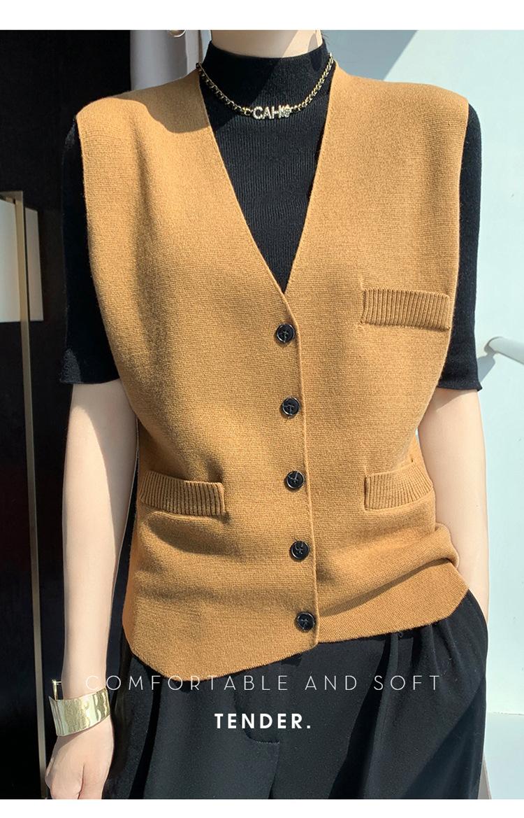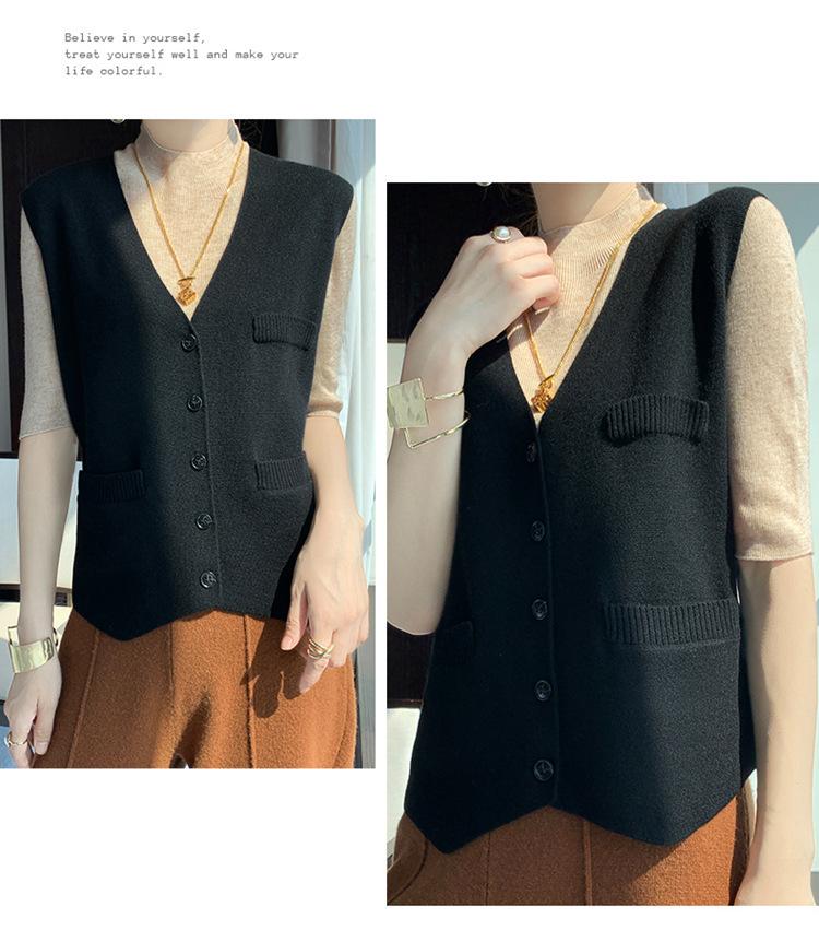 Chaleco de punto para mujer, cuello en V, otoño e invierno, recién llegado, chaleco de punto de lana con hebilla fina.
