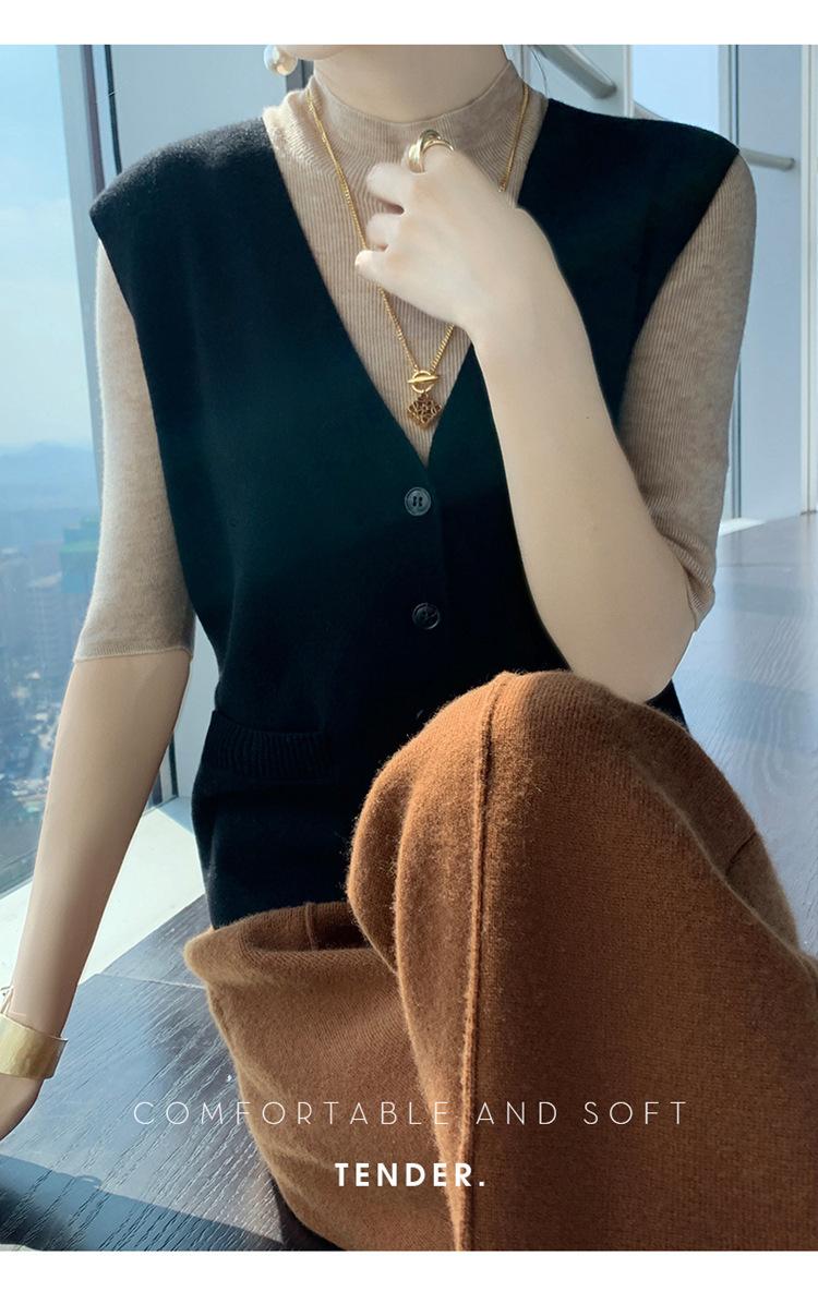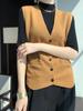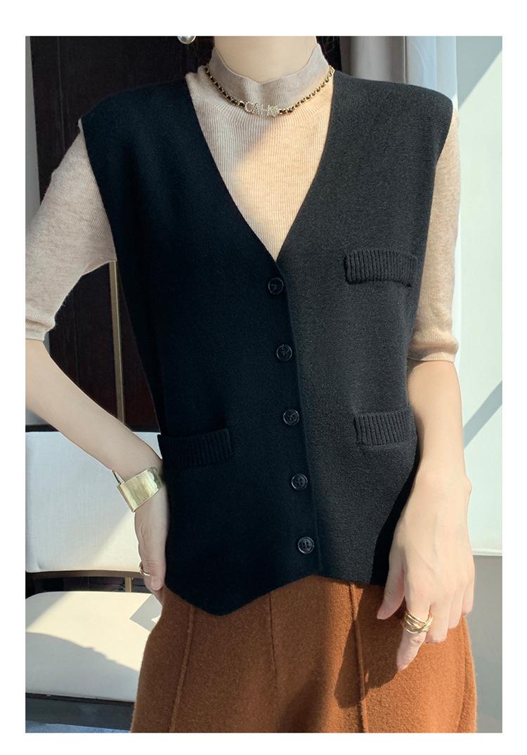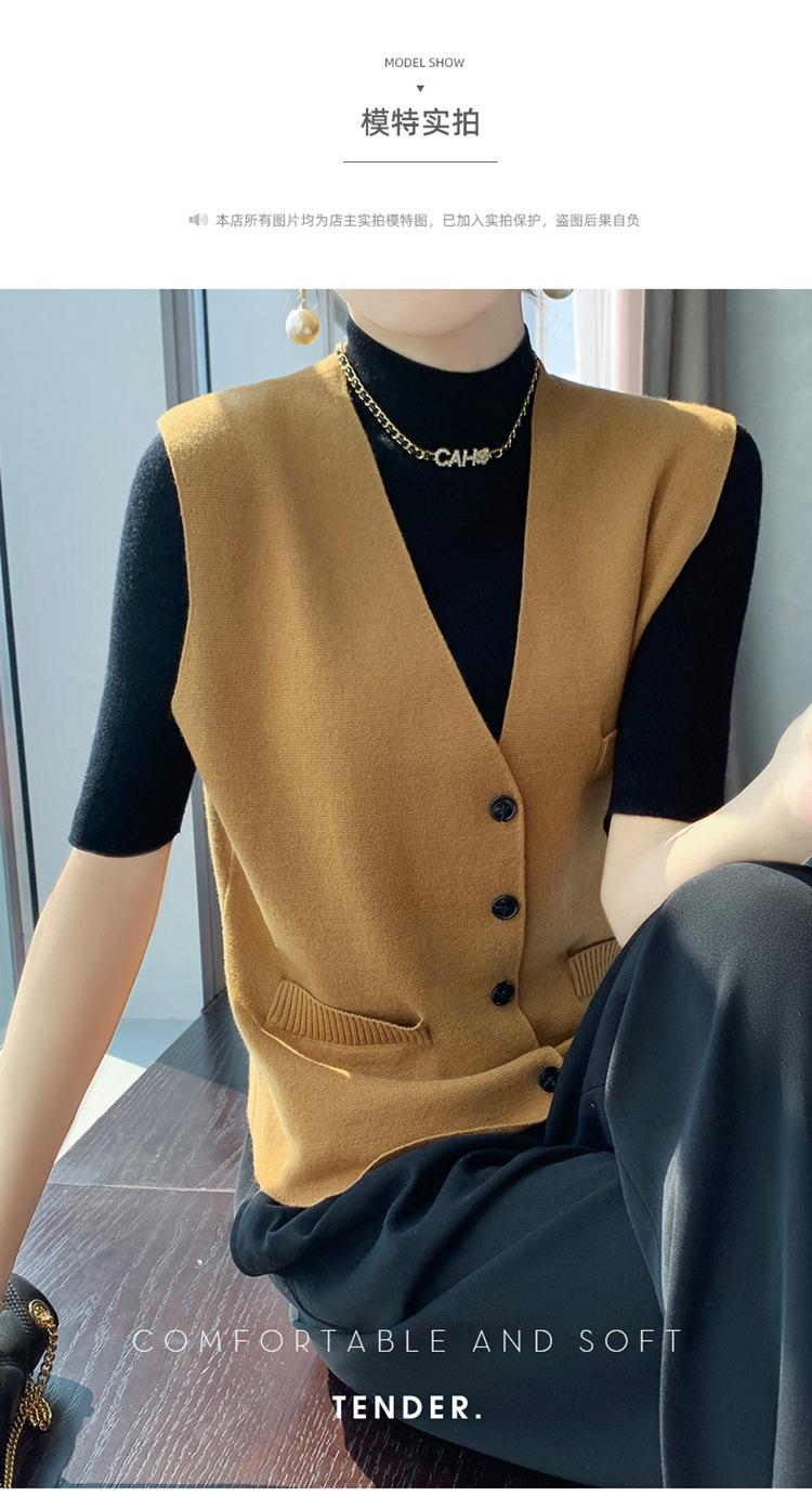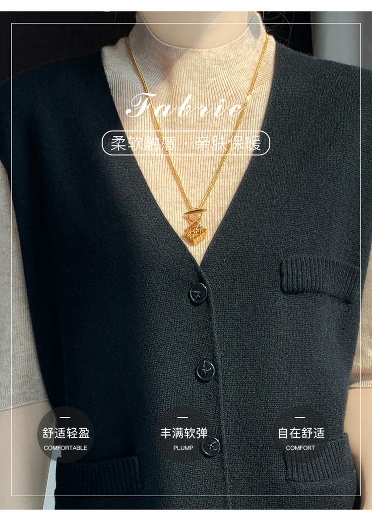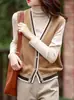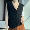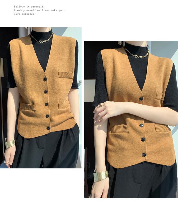 Chaleco de punto para mujer, cuello en V, otoño e invierno, recién llegado, chaleco de punto de lana con hebilla fina.