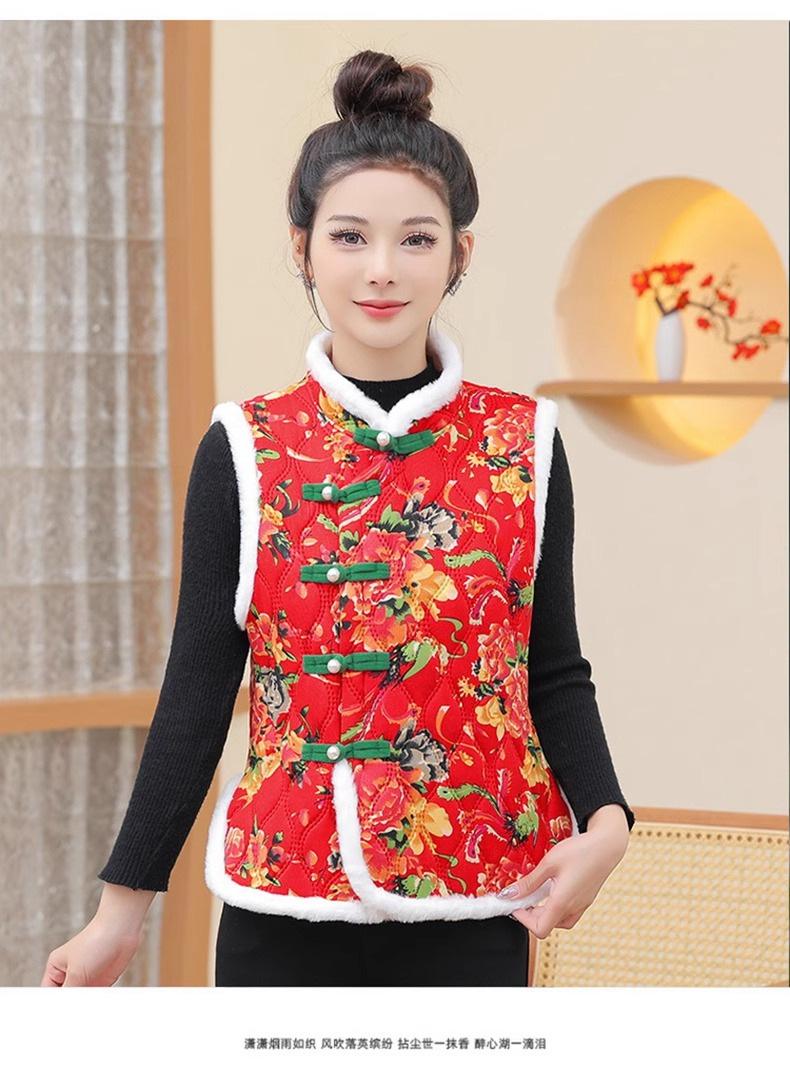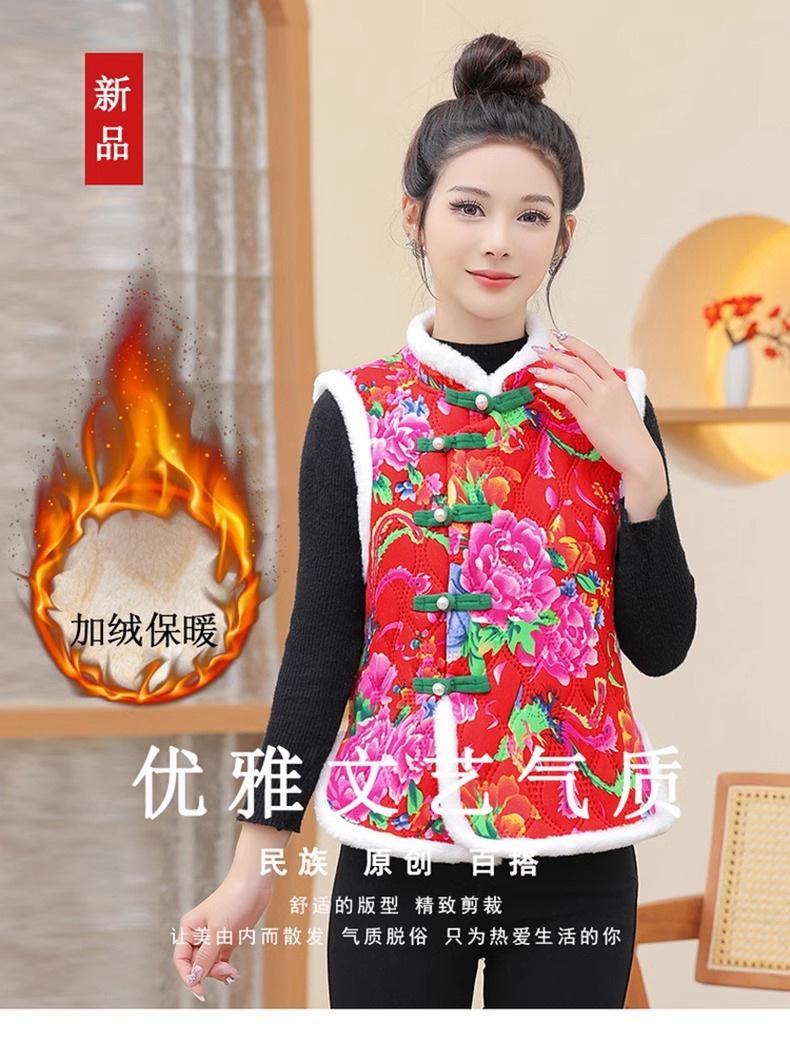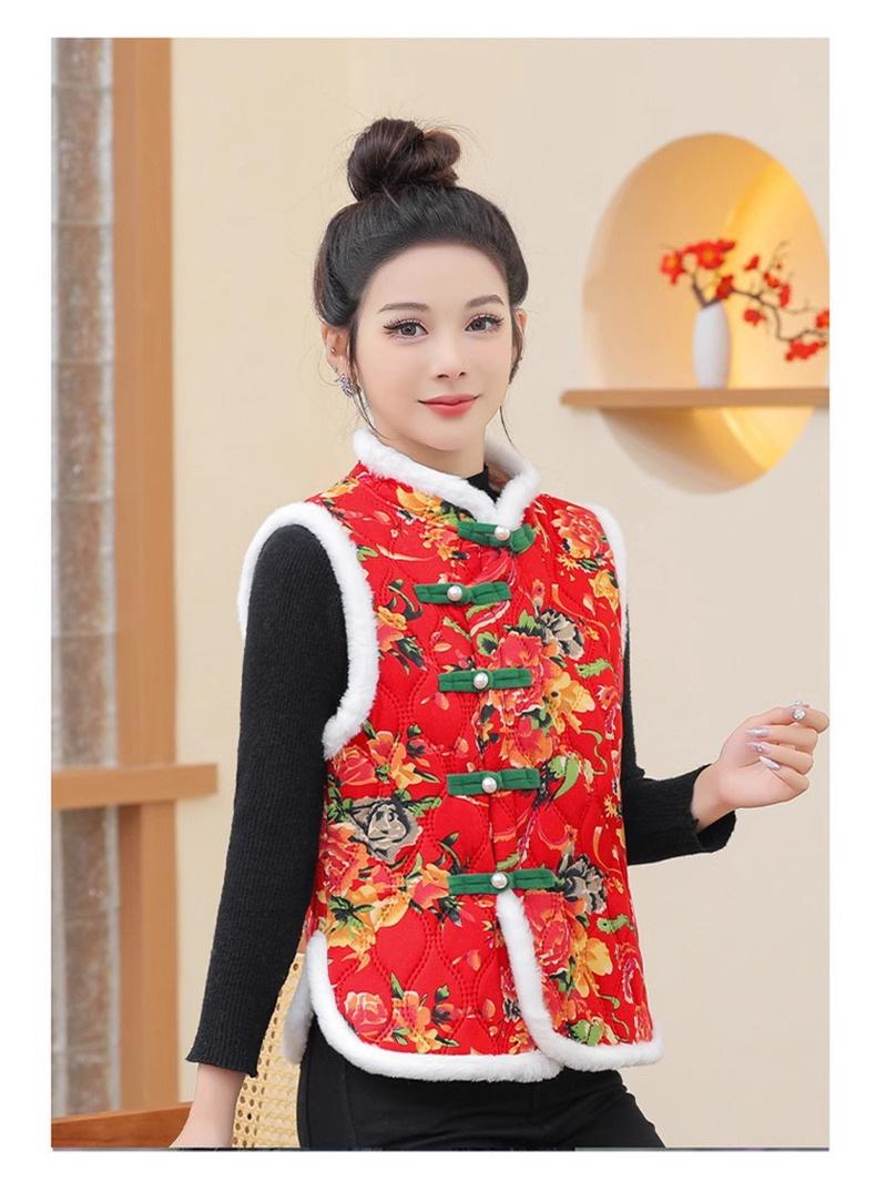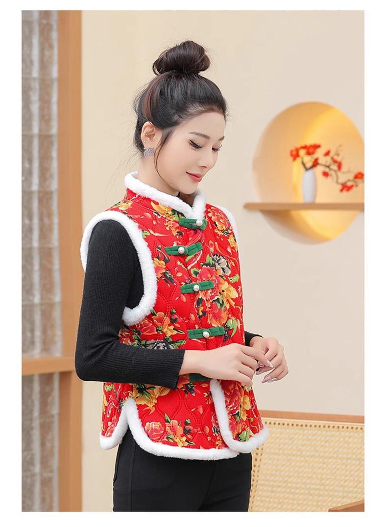 Otoño e Invierno Nuevo Chaleco de Algodón Acolchado para Mujer con Forro Polar Chaleco Cálido para Madre Chaleco Corto con Cuello en V Top Forro Ajustado