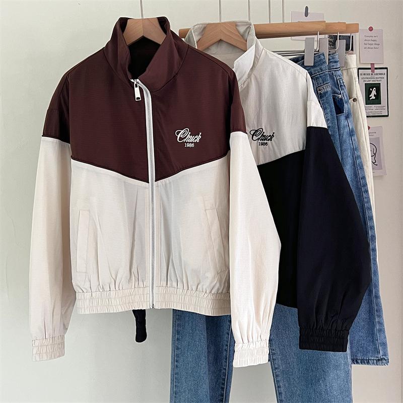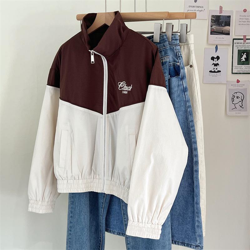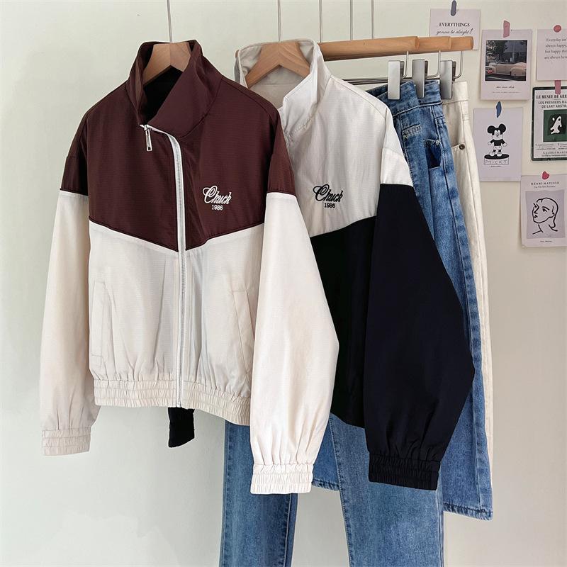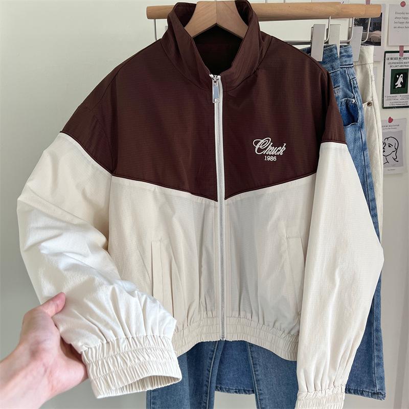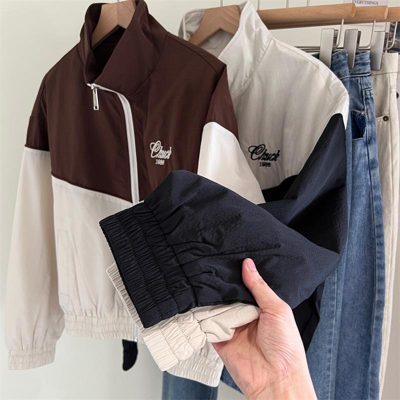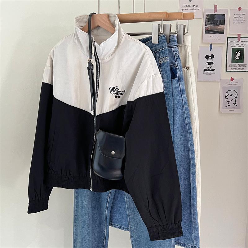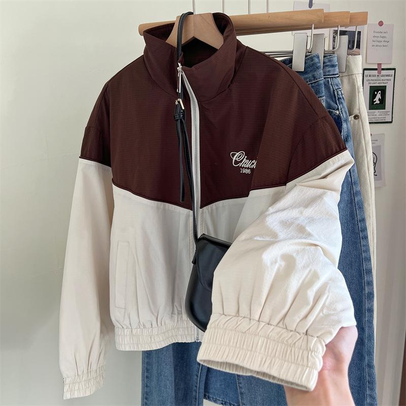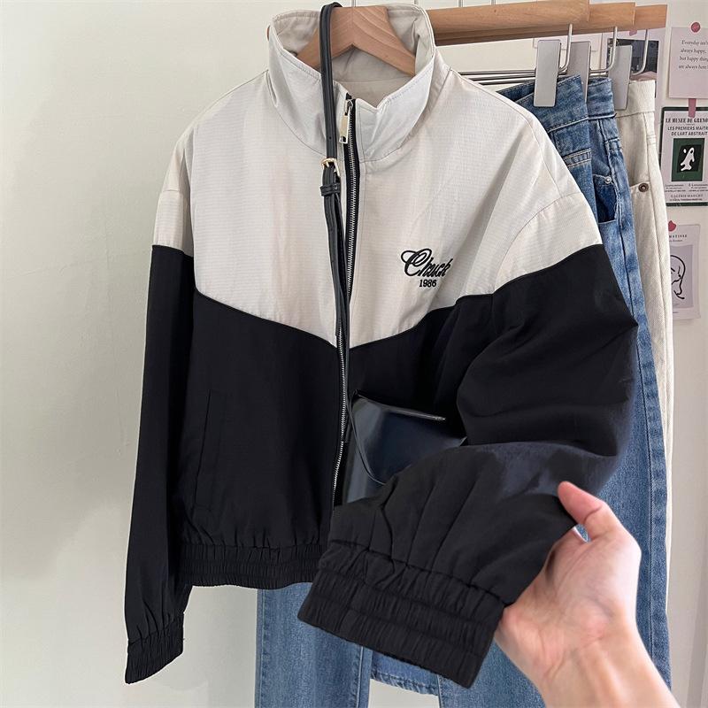 Chaqueta cortavientos bordada con costuras de color contrastante, diseño femenino, chaqueta de béisbol, chaqueta corta femenina 2024 primavera y otoño invierno, tops estilo coreano