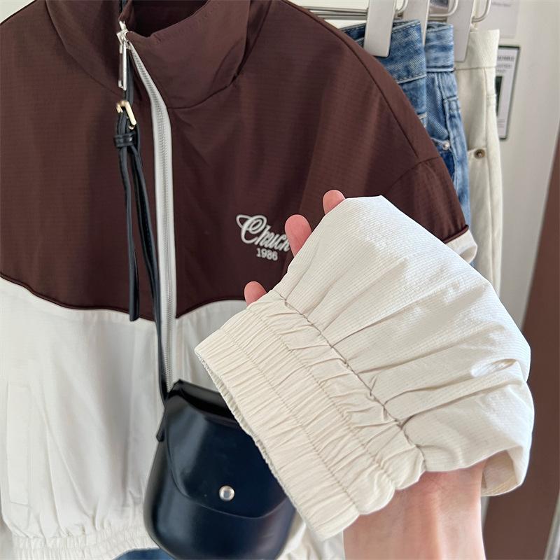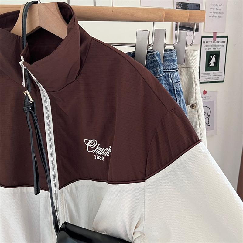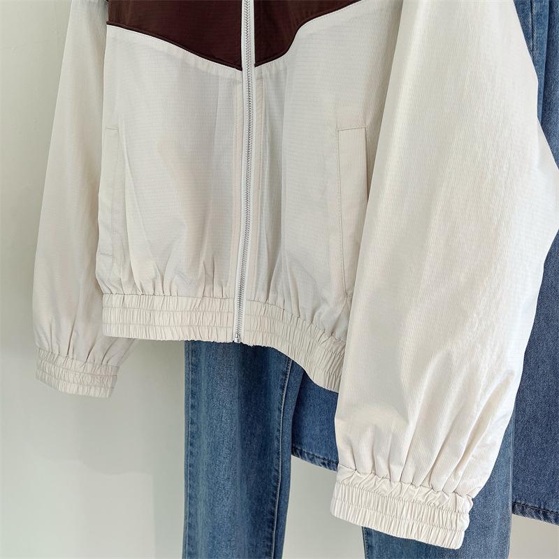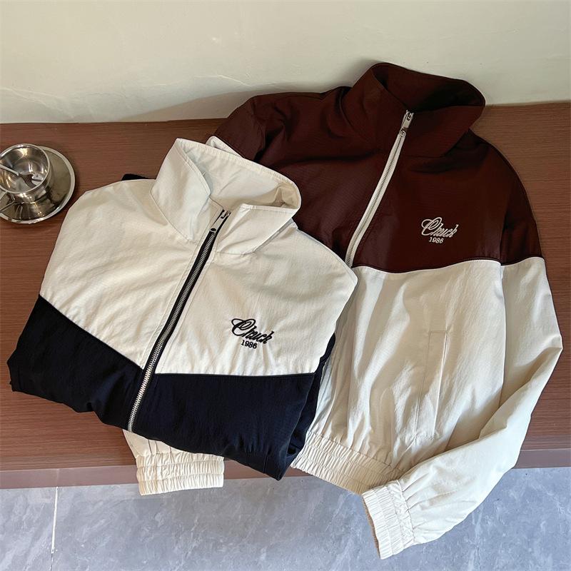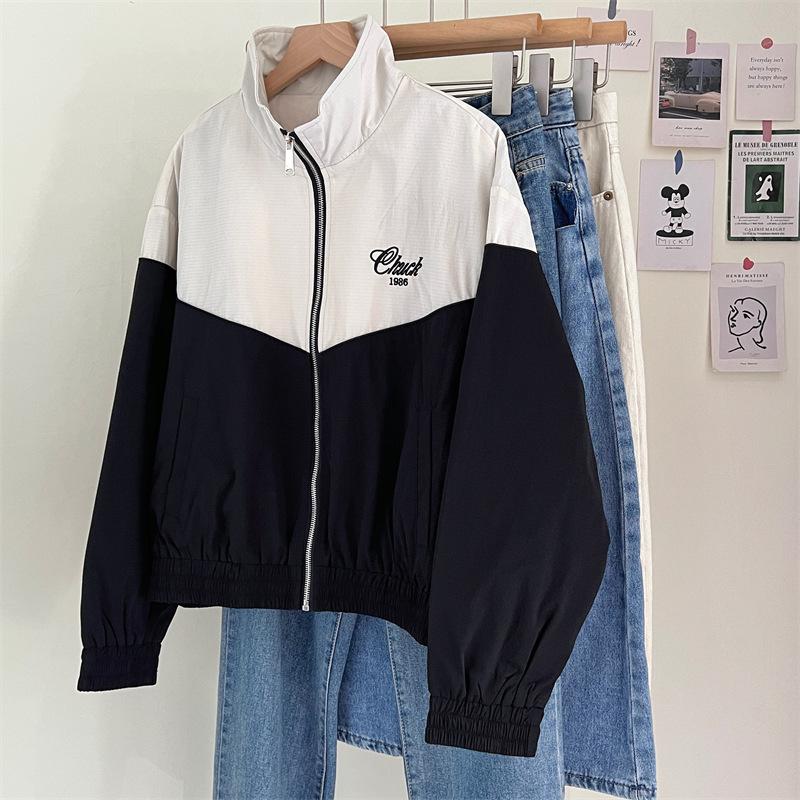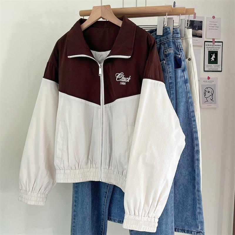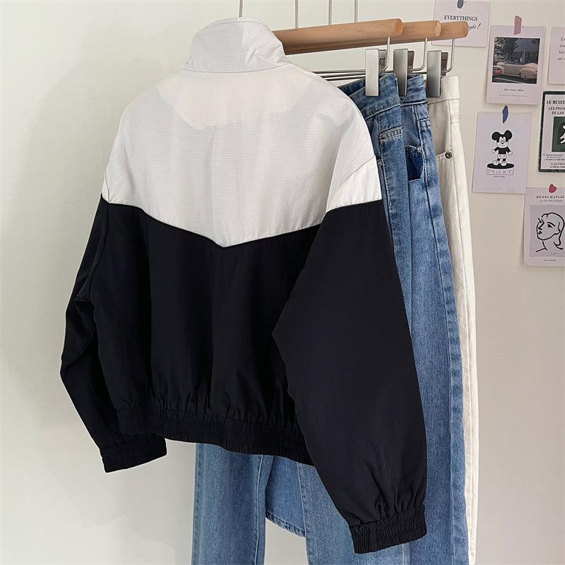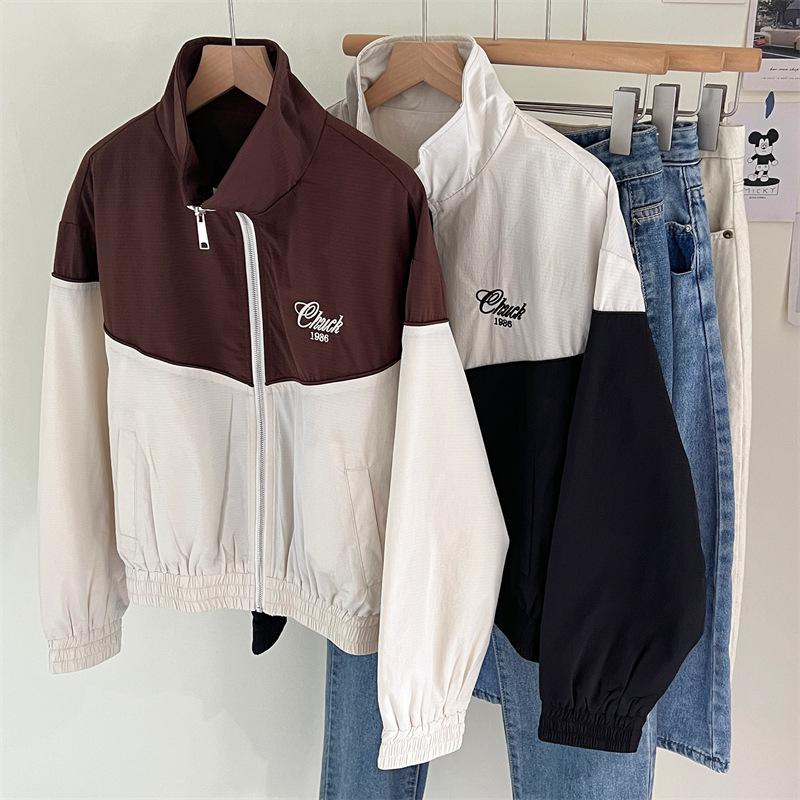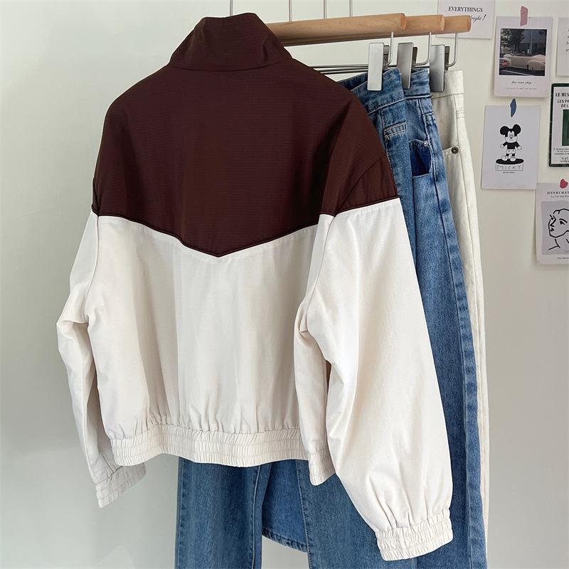 Chaqueta cortavientos bordada con costuras de color contrastante, diseño femenino, chaqueta de béisbol, chaqueta corta femenina 2024 primavera y otoño invierno, tops estilo coreano