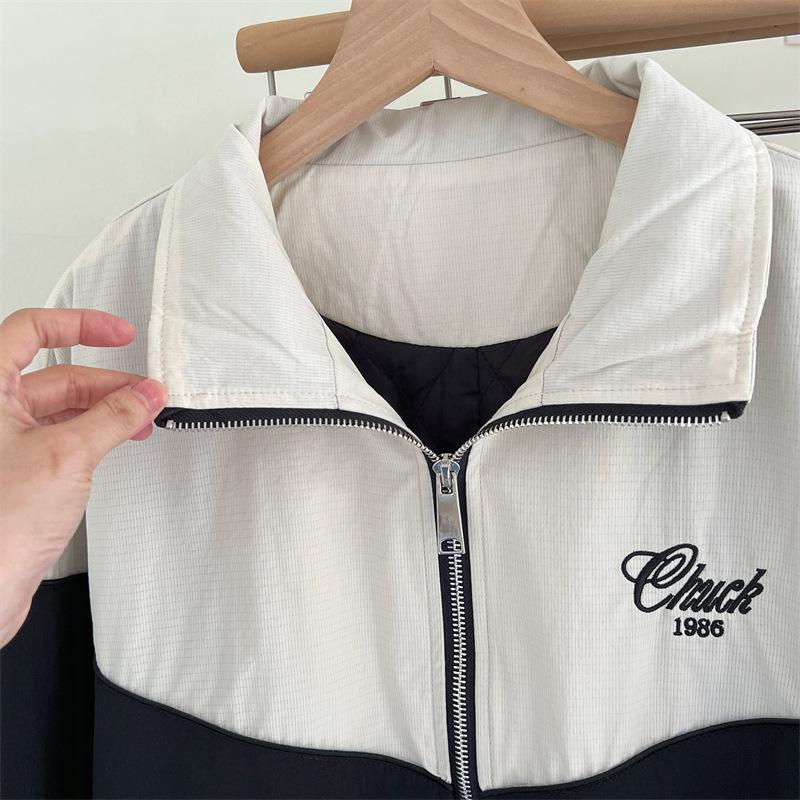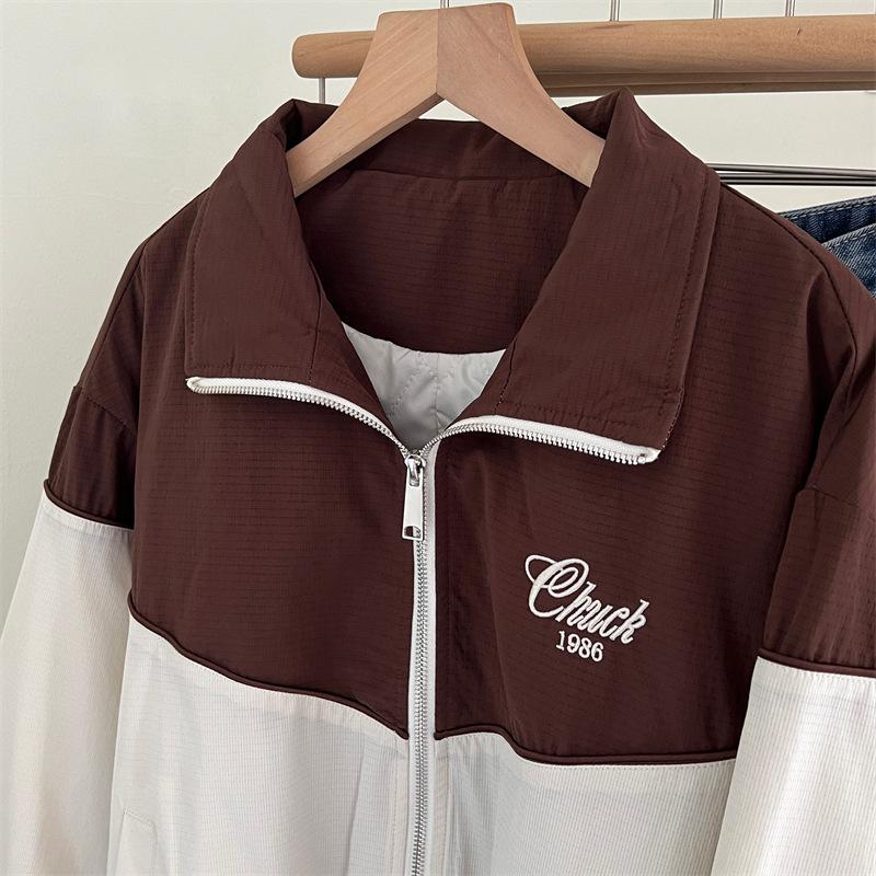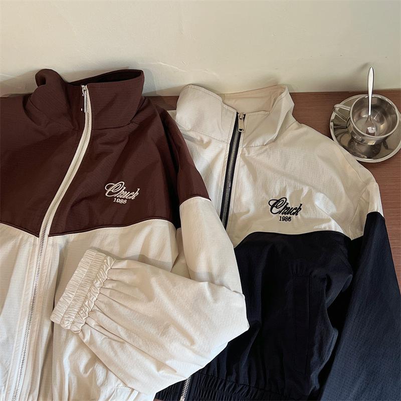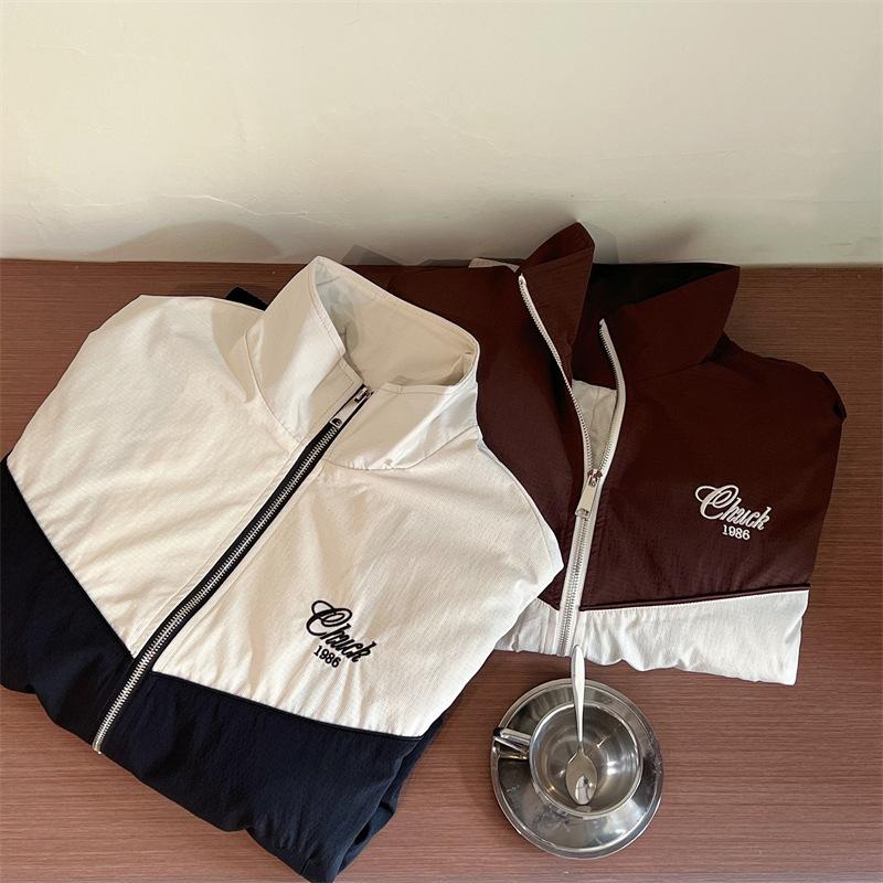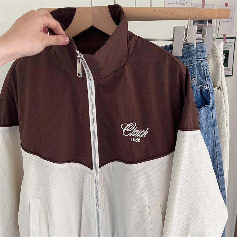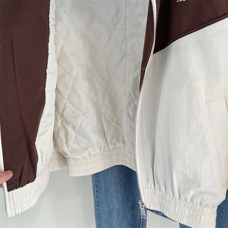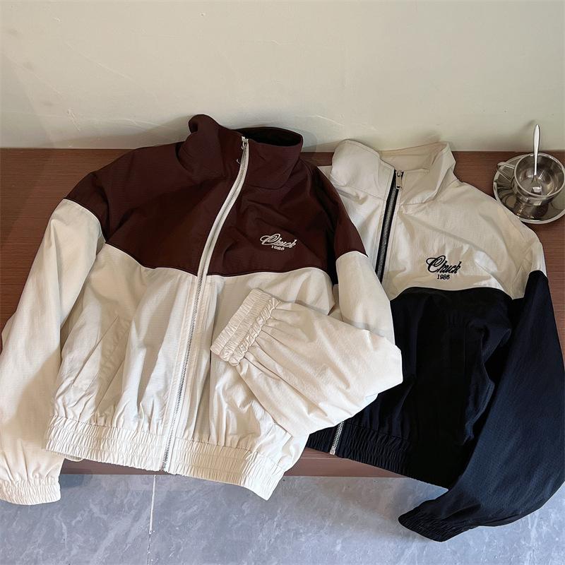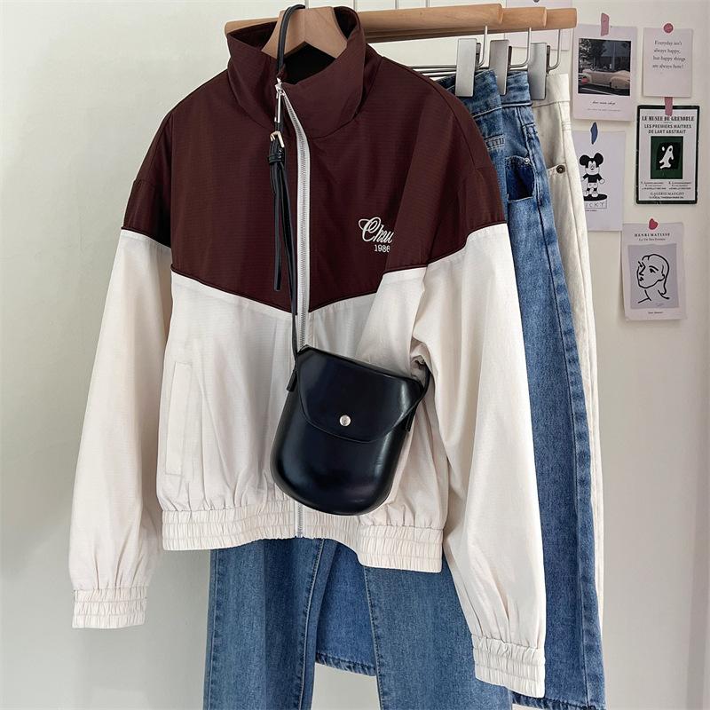 Chaqueta cortavientos bordada con costuras de color contrastante, diseño femenino, chaqueta de béisbol, chaqueta corta femenina 2024 primavera y otoño invierno, tops estilo coreano
