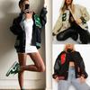 Abrigo corto de béisbol para mujer, estilo europeo y americano, con costuras de colores contrastantes, bordado, resistente al viento, para primavera, otoño e invierno.