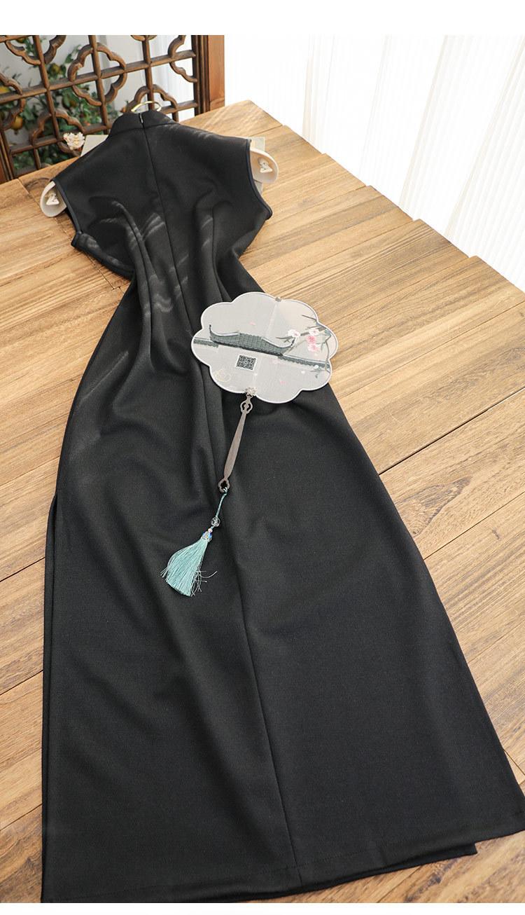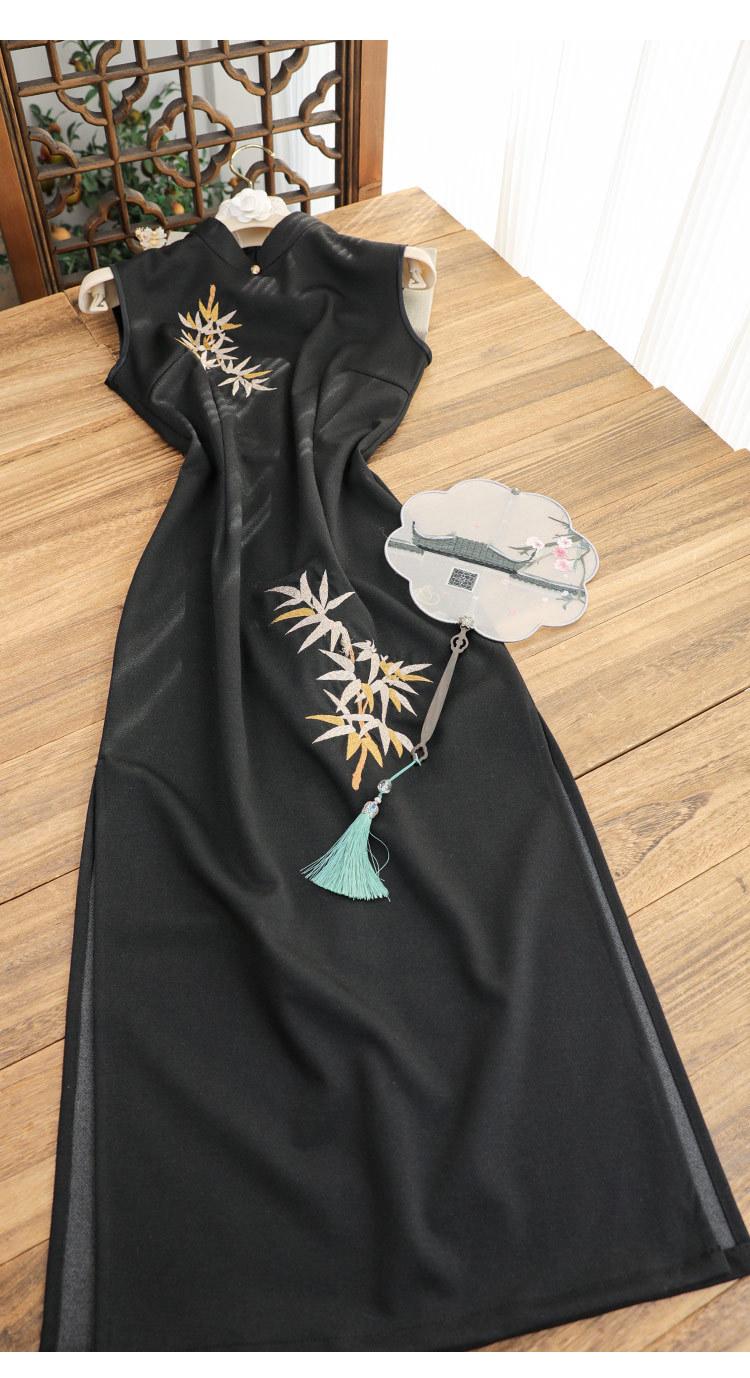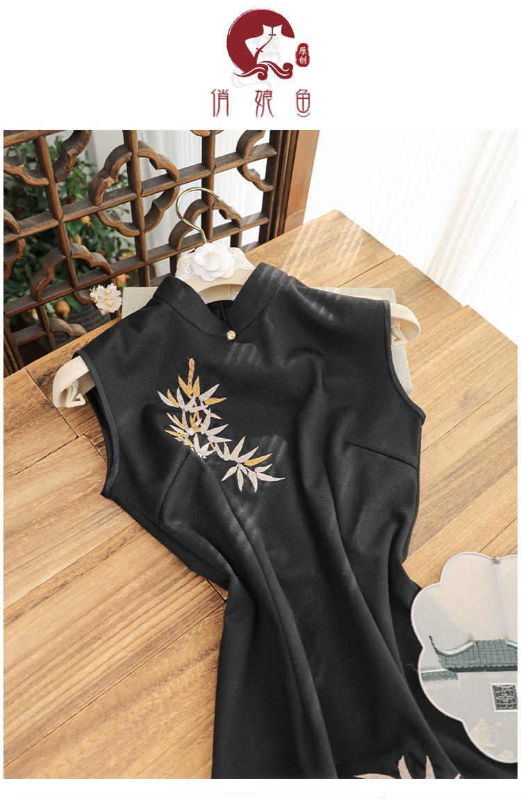 Qiao Niang Yu Cheongsam negro retro elegante nuevo estilo chino sin mangas 2025 primavera nuevo uso diario estilo joven